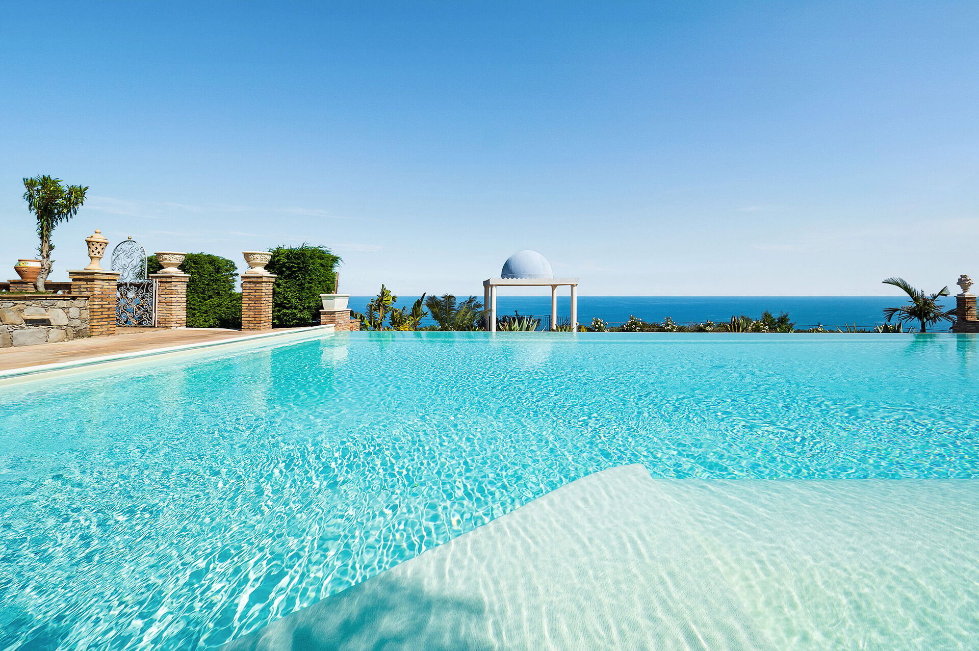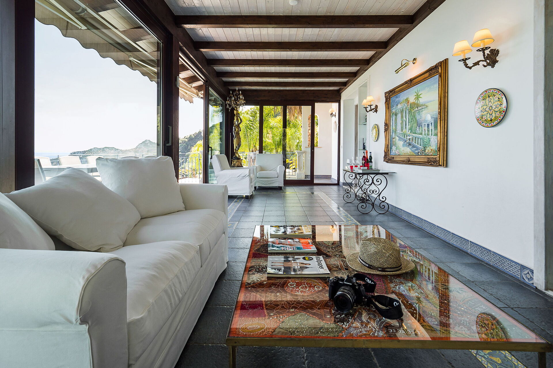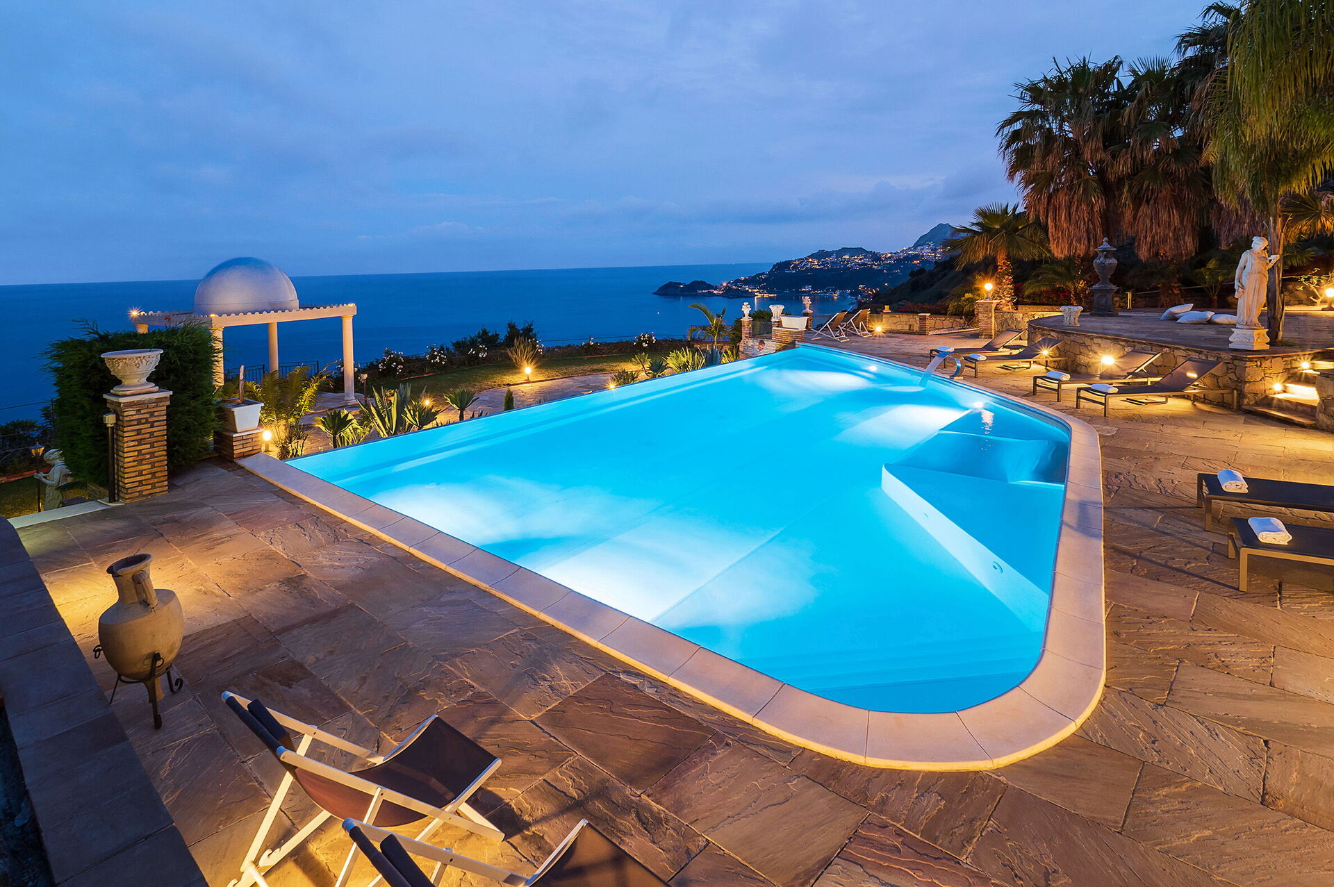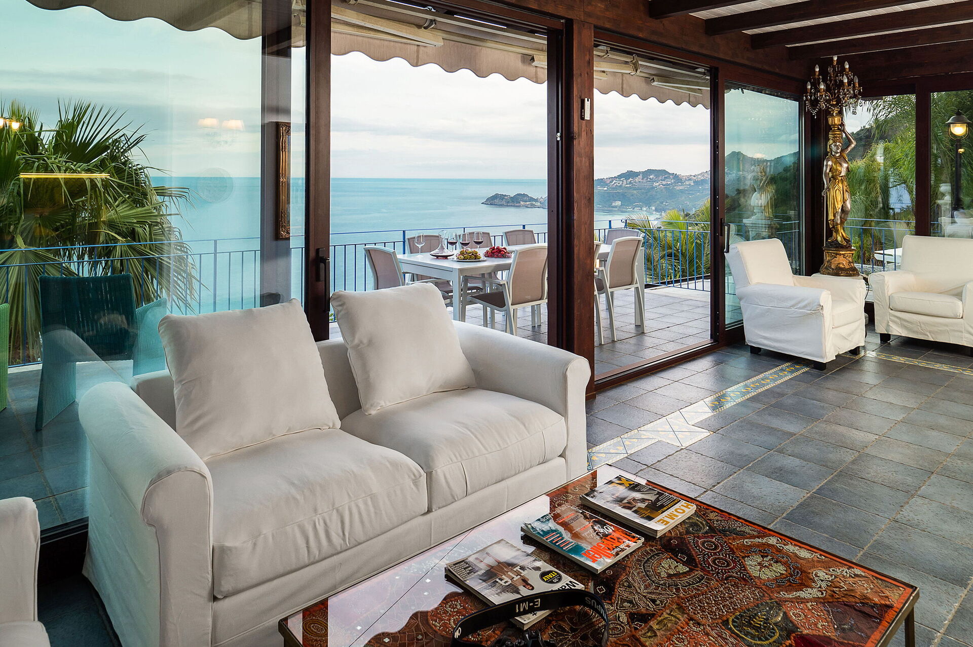 Prestigiosa e raffinata, questa esclusiva villa per vacanze gode di una scenografica posizione panoramica con vista mozzafiato sul mare e sulla baia di Taormina, che è possibile ammirare sia dalla piscina sfioro che dalle sue ampie terrazze.