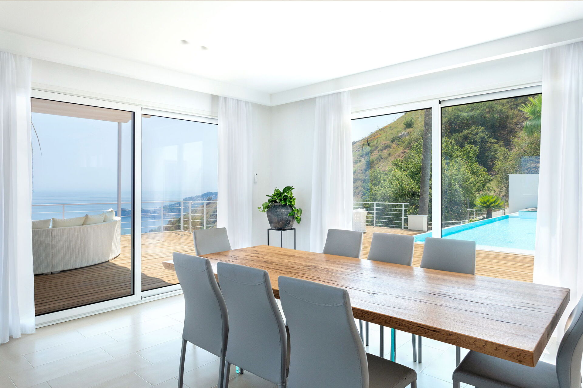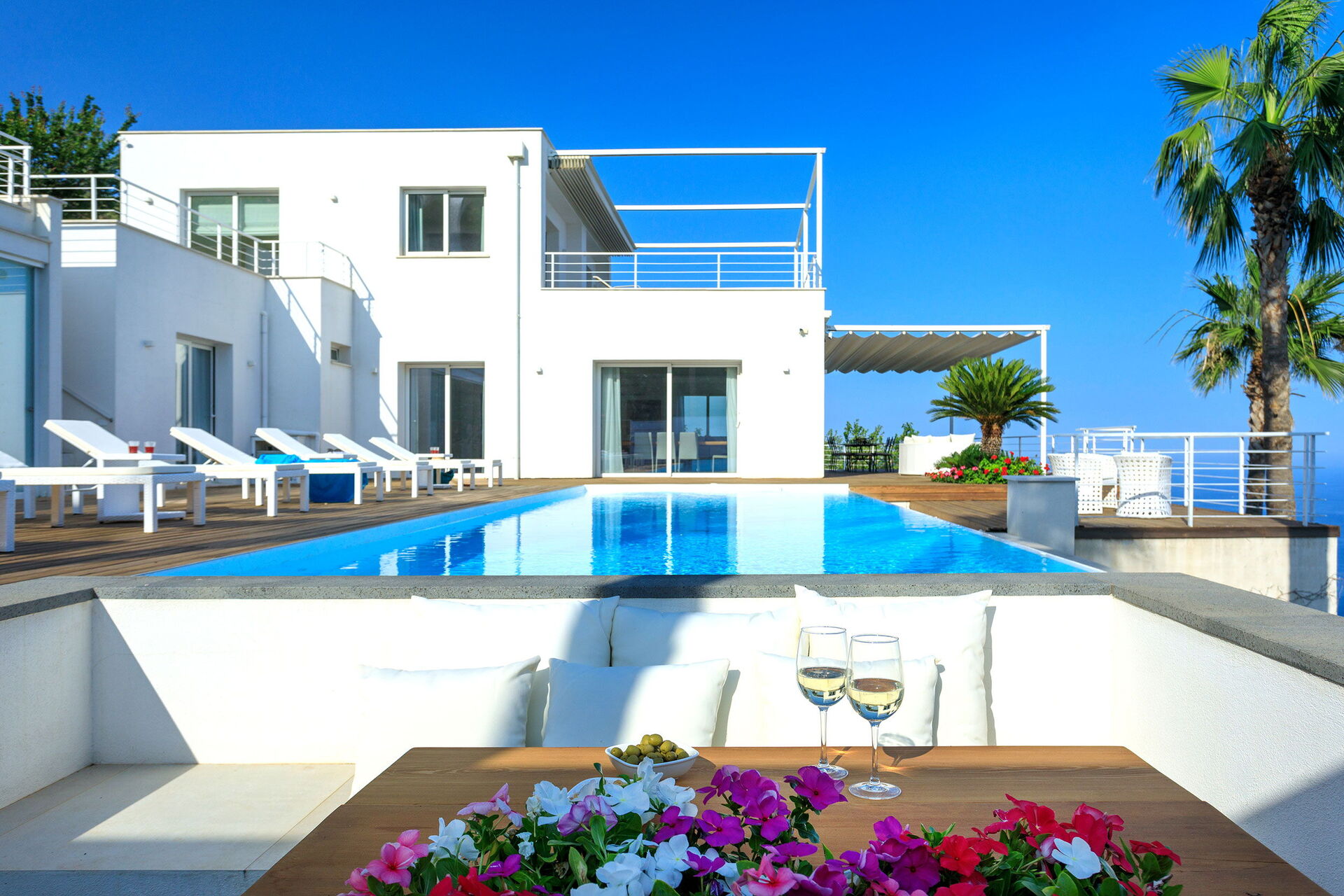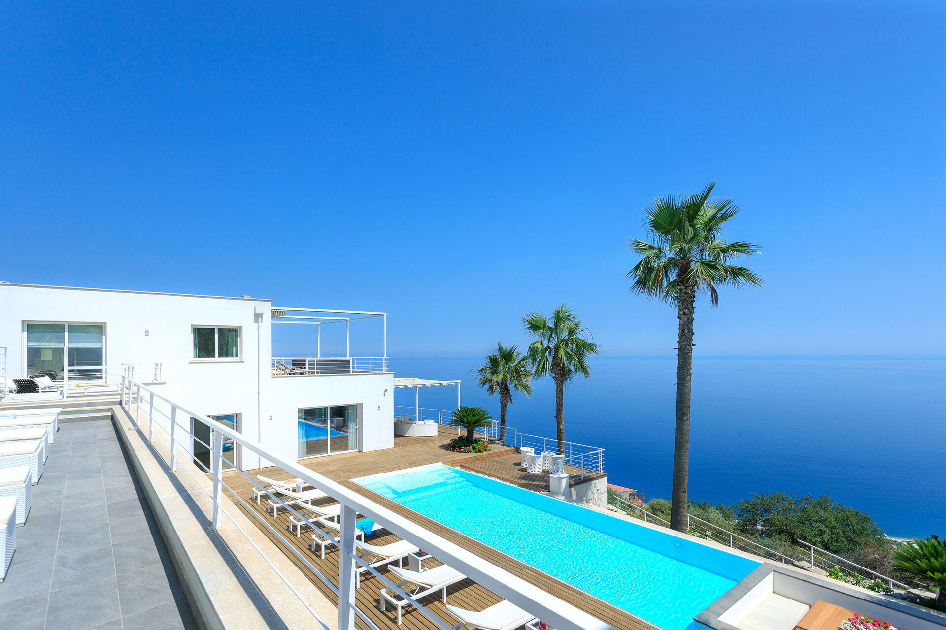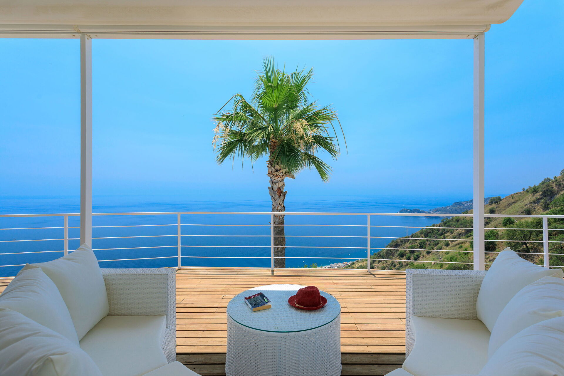 Moderna e luminosa, questa esclusiva villa per vacanze gode di una scenografica posizione panoramica con vista mozzafiato sul mare e sulla baia di Taormina, che è possibile ammirare sia dalla piscina a sfioro con zona idromassaggio che dalle sue ampie terrazze e dal giardino.