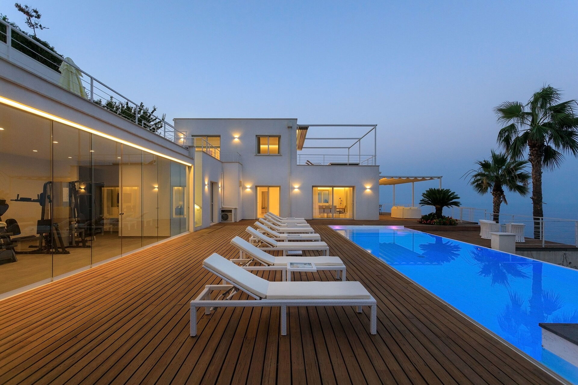 Villa Elysium si sviluppa su due livelli e dispone di accoglienti ambienti interni arredati con gusto e progettati per rispondere alle esigenze del vivere contemporaneo.
