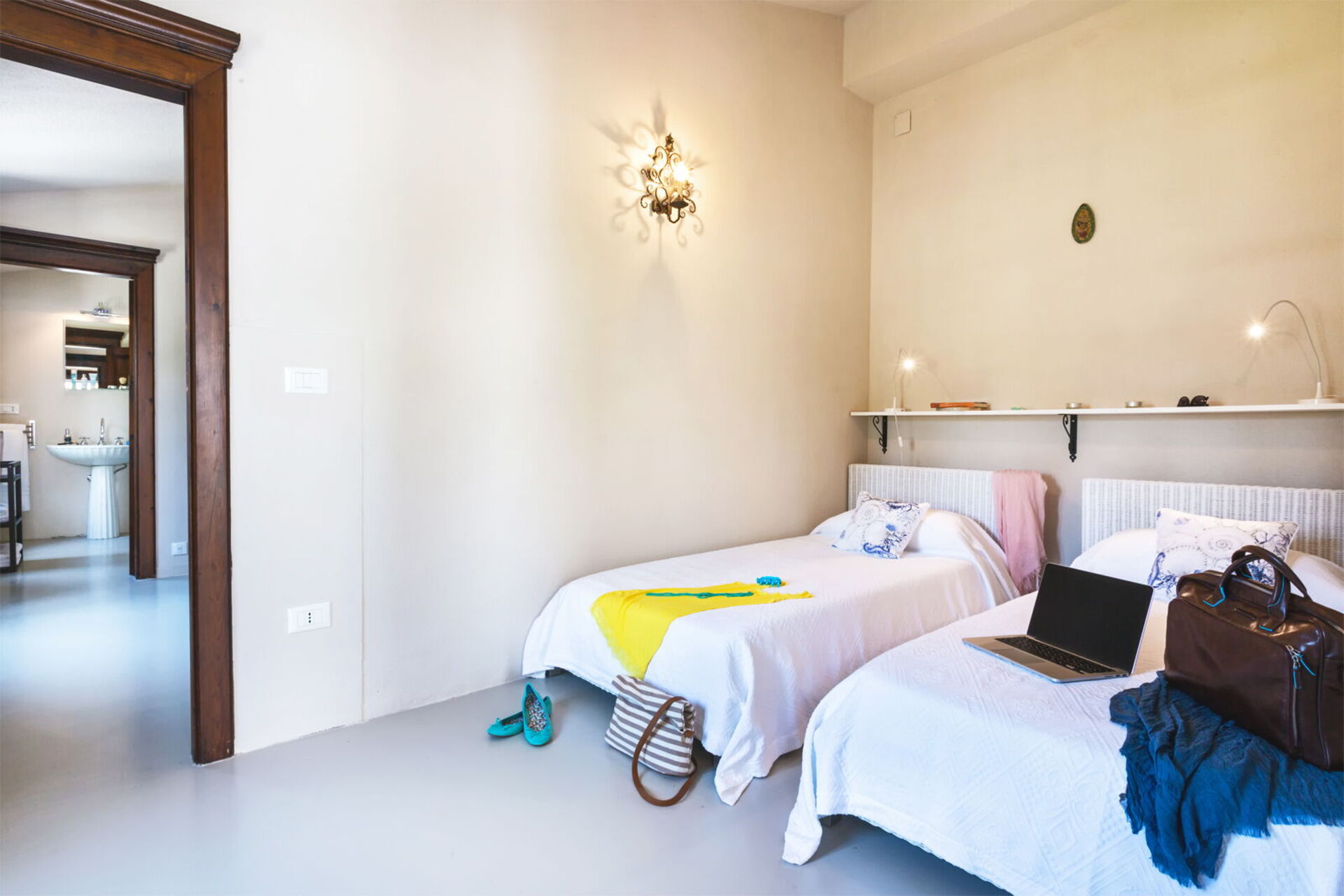 Primo piano: (accessibile solo dall’esterno e non collegata internamente): camera di passaggio con 2 letti singoli, camera matrimoniale (aria condizionata) e bagno privato con doccia.