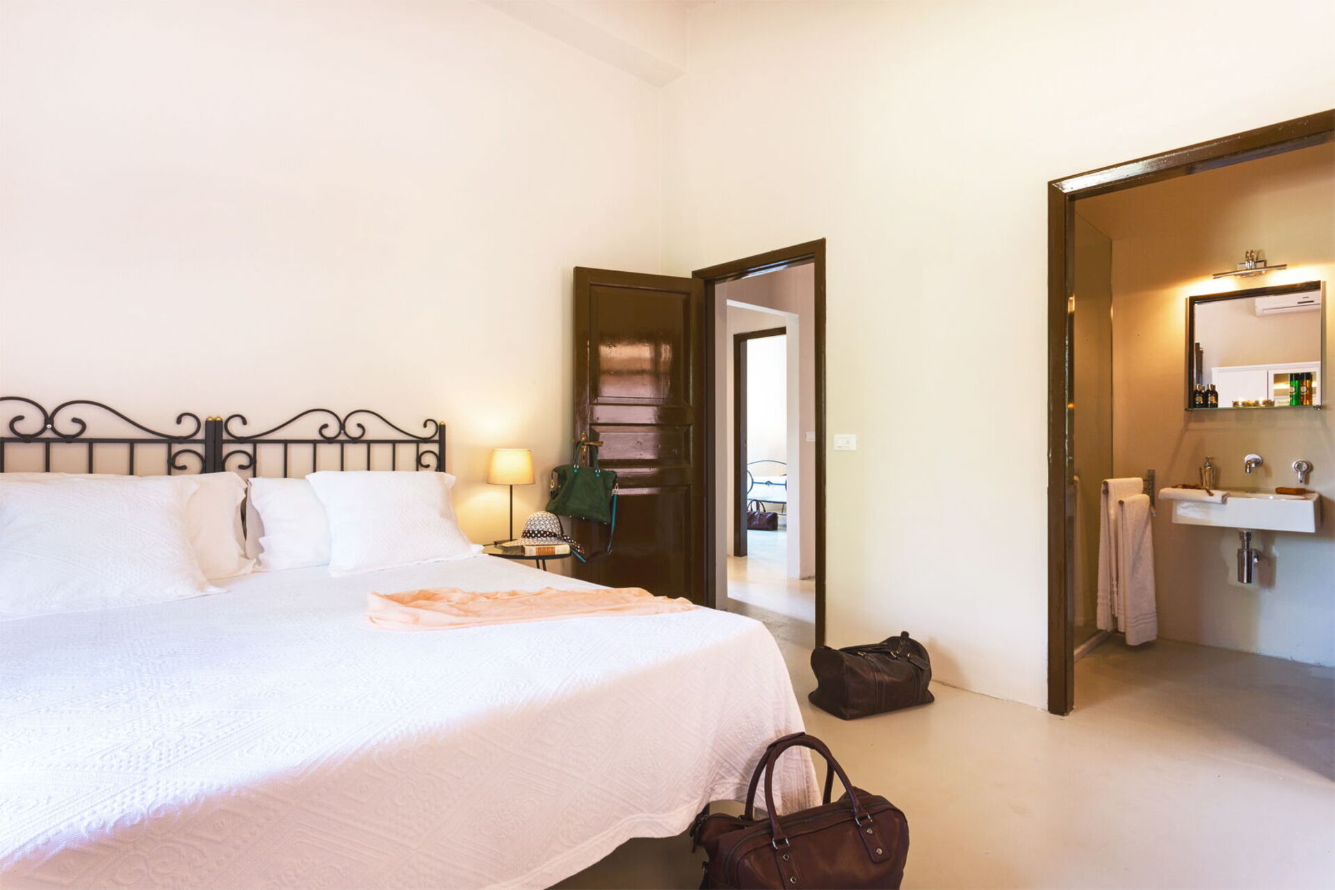 Piano primo: 2 camere matrimoniali (aria condizionata) ognuna con bagno privato con doccia.