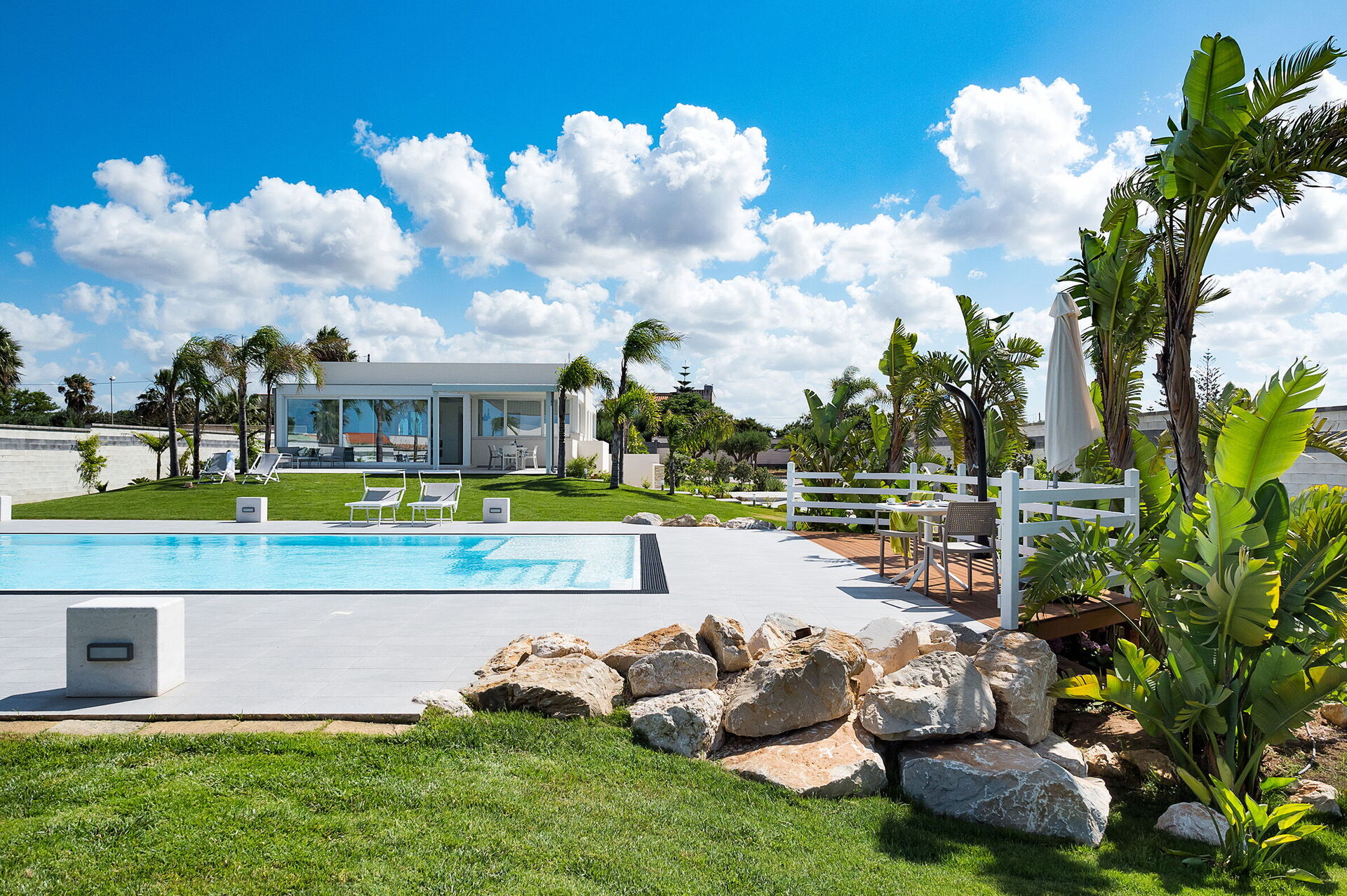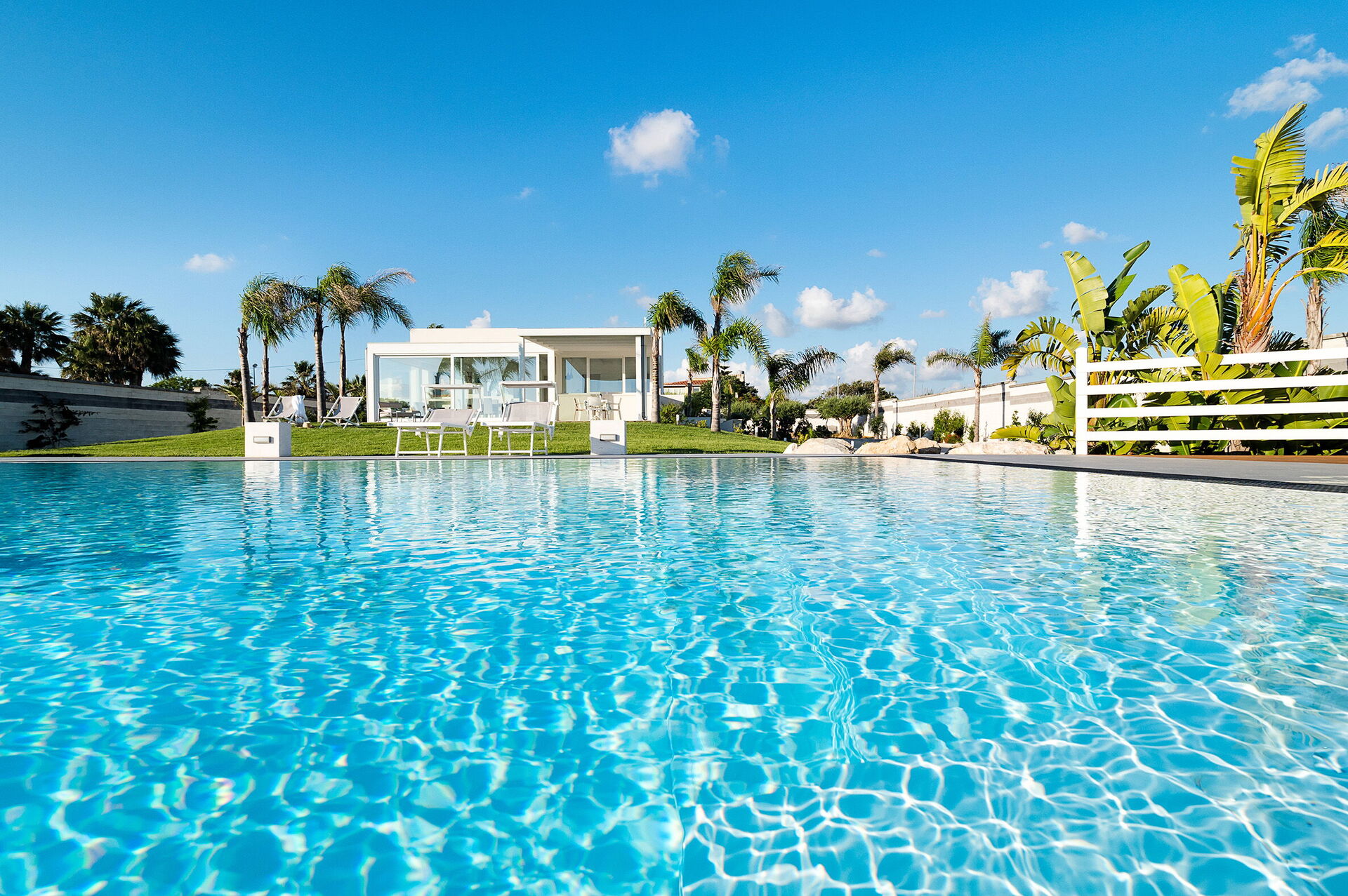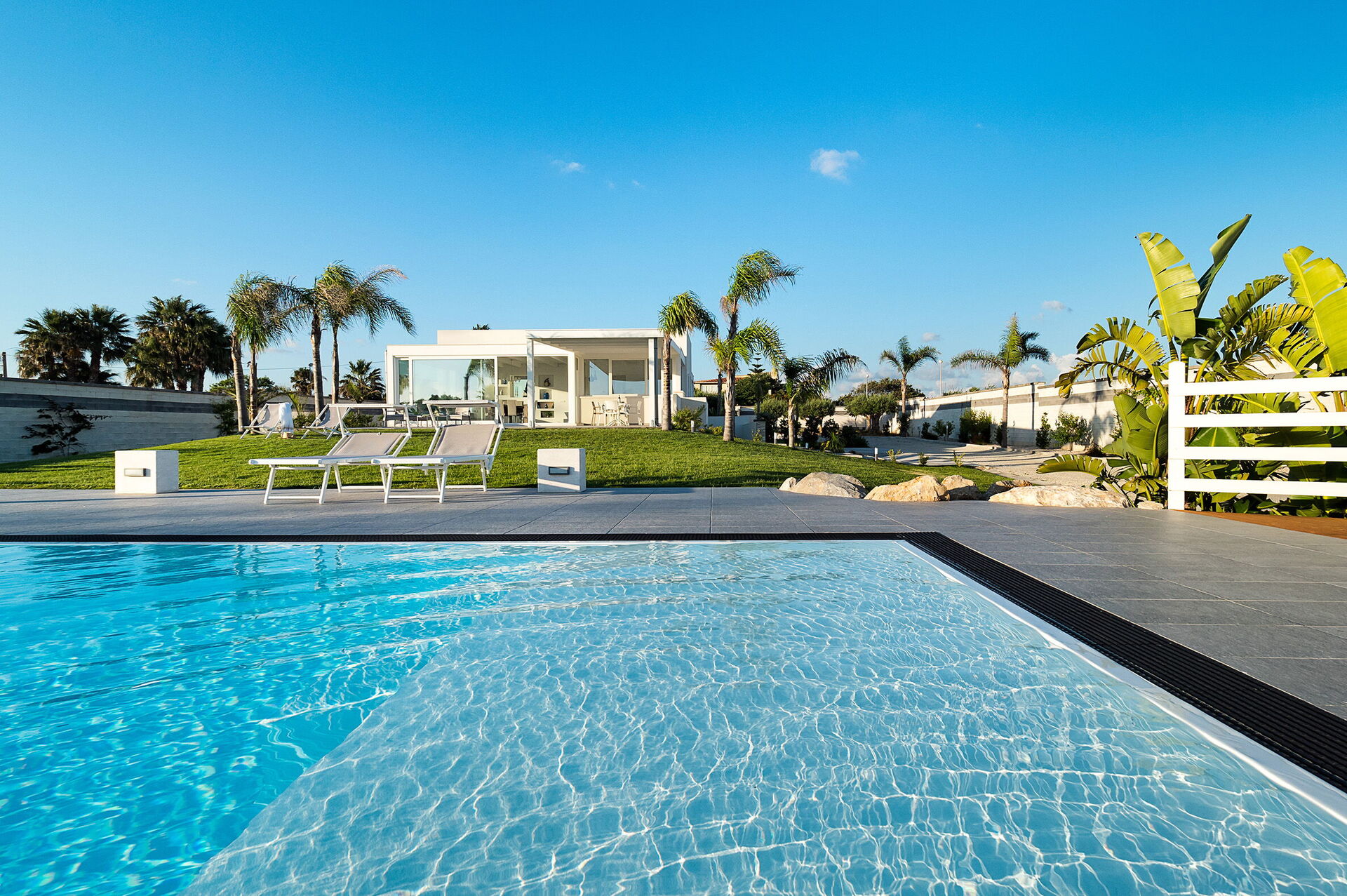 Diantha è una moderna villa con piscina in comune per vacanze in Sicilia.