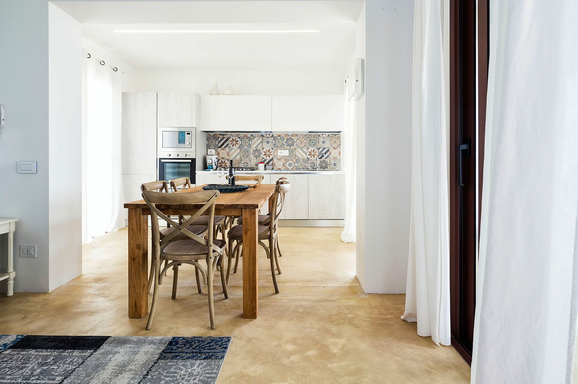 Di recente costruzione, la villa offre luminosi ed accoglienti ambienti interni arredati con gusto e funzionalità. La villa in affitto può ospitare fino a 8 persone in 4 camere da letto e interni dotati di ogni comfort.