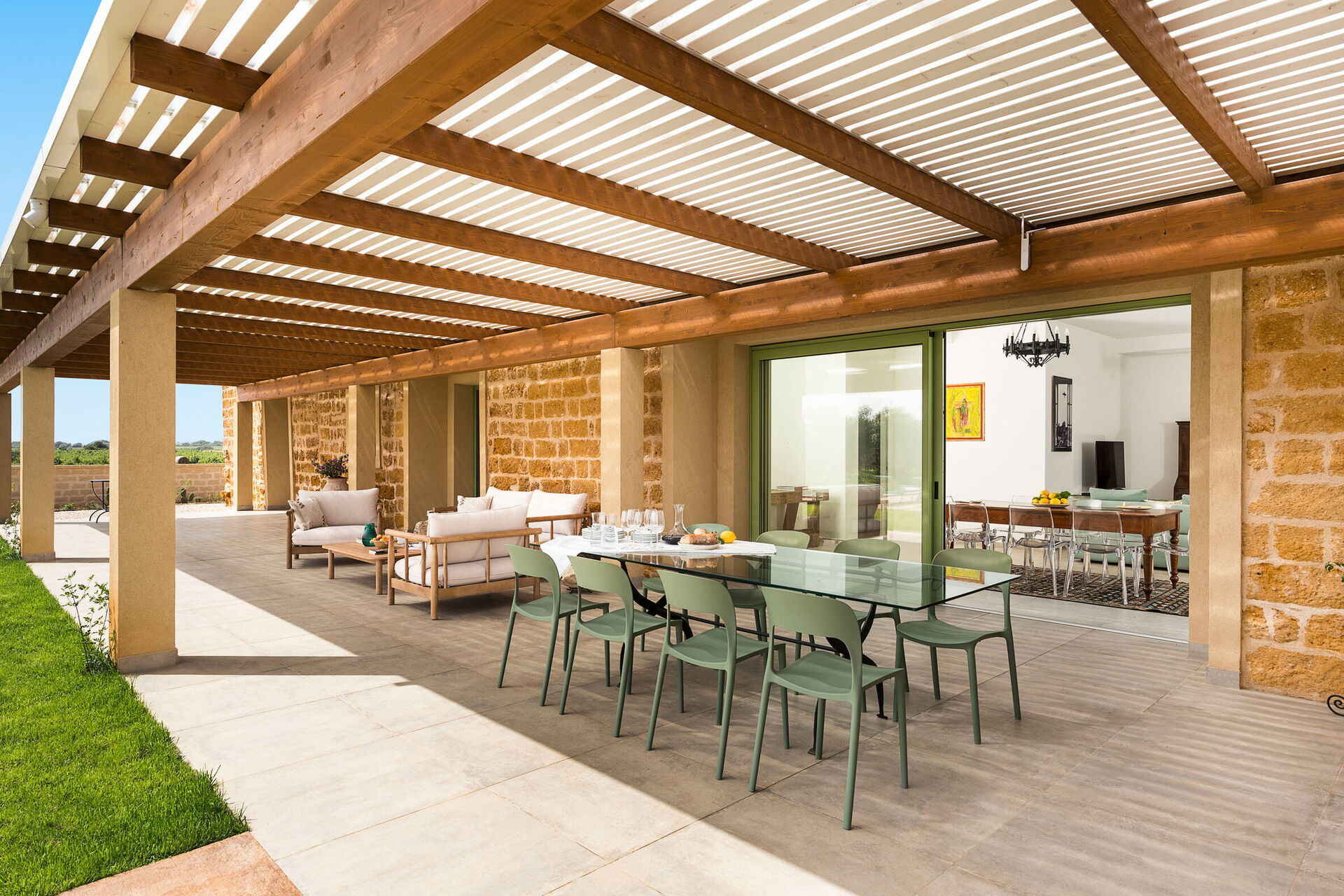 - veranda attrezzata con tavolo e sedie per mangiare all'aria aperta