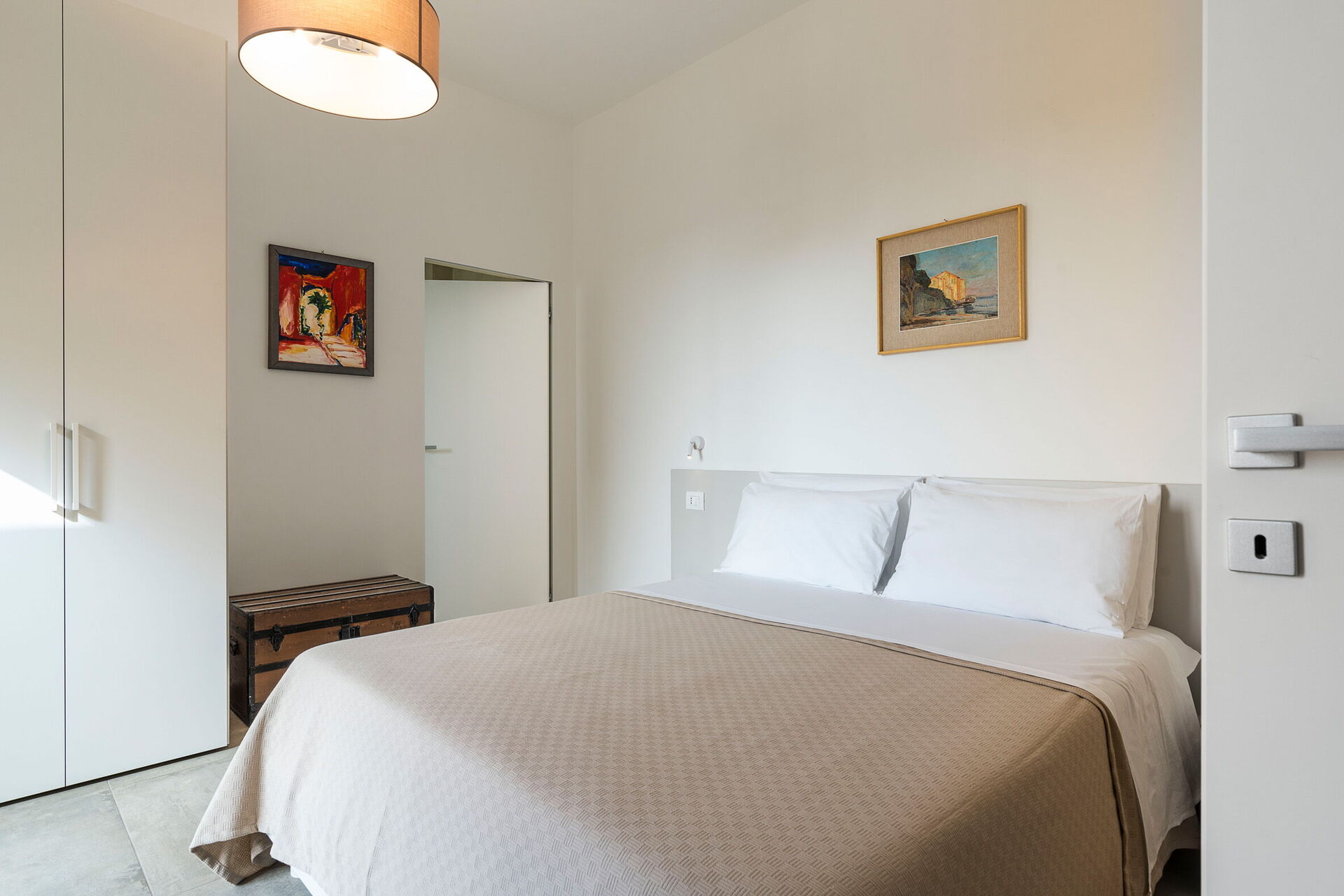 Piano terreno: soggiorno con angolo cottura (piano cottura a induzione, frigo, microonde, macchina da caffè espresso), camera matrimoniale (aria condizionata) con bagno privato con doccia.