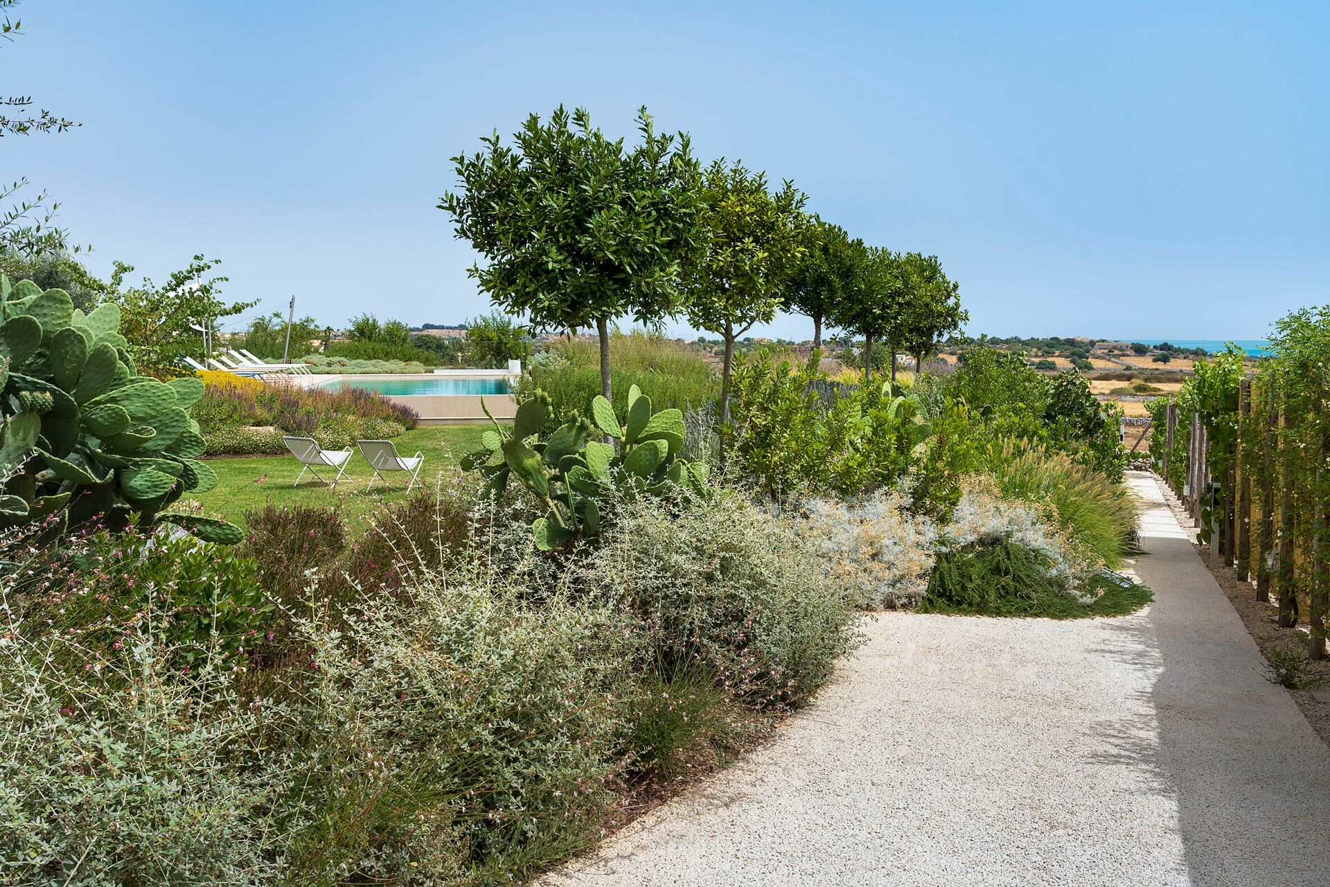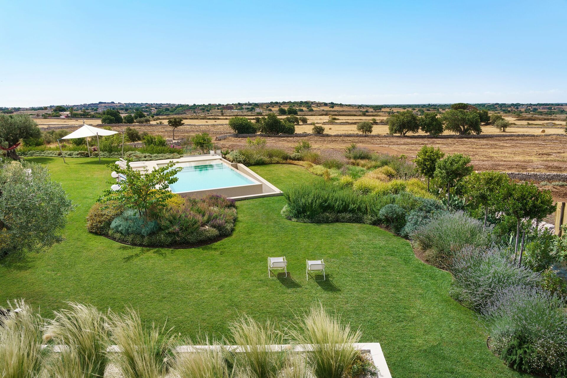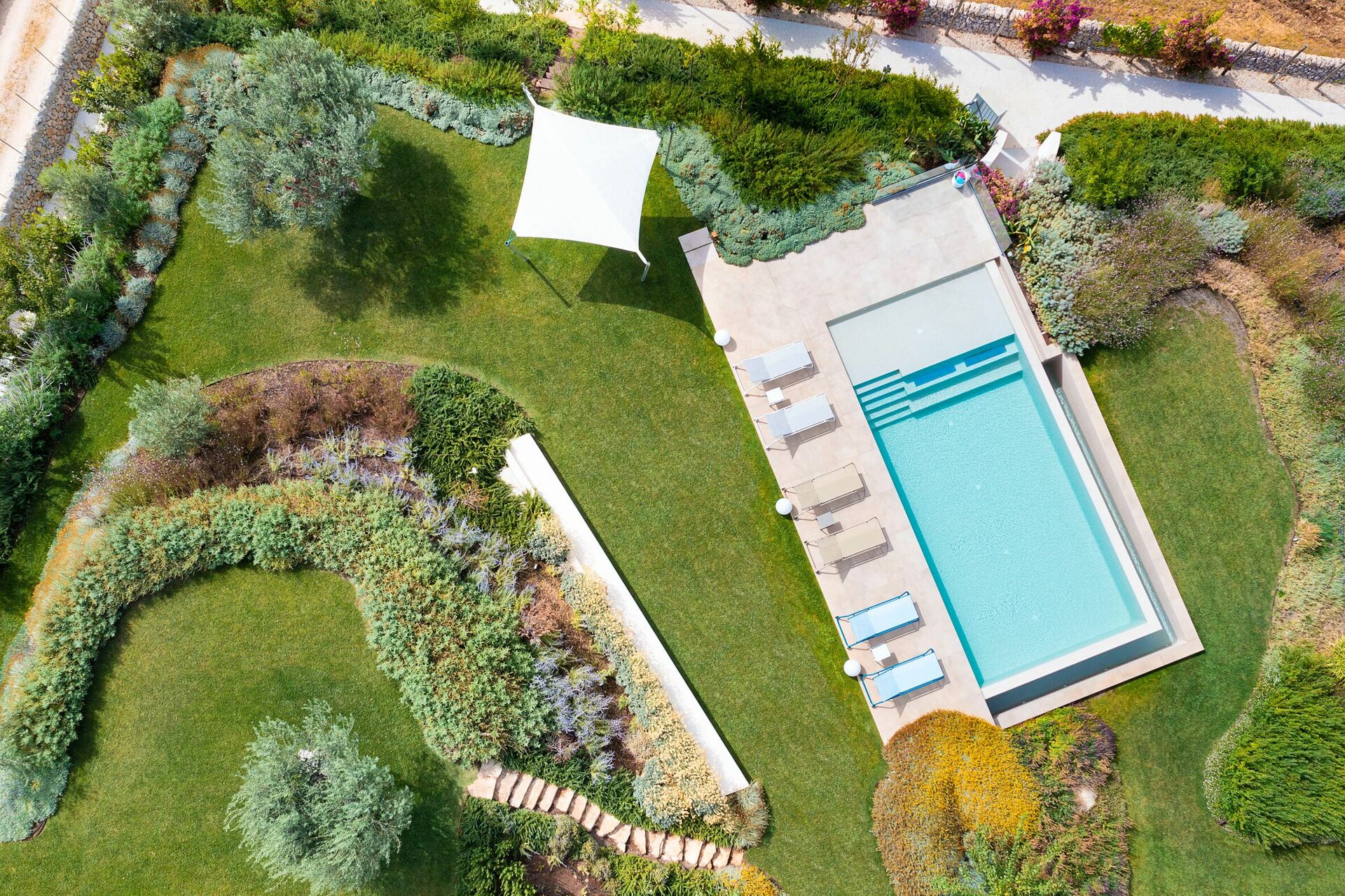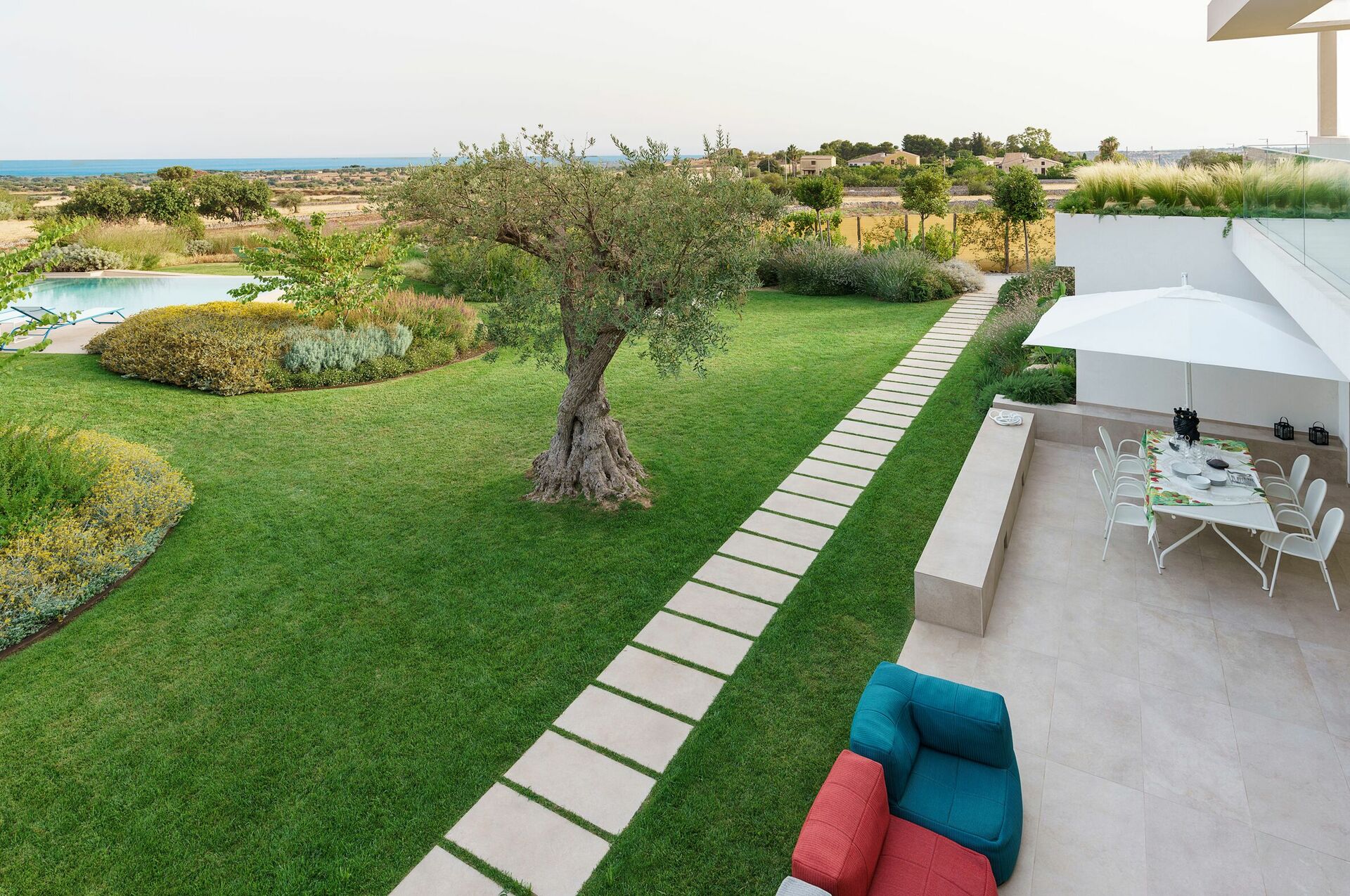 Questa bella dimora per vacanze è circondata da un rigoglioso giardino che ospita ampie terrazze e la splendida piscina riscaldata e depurata a sale.