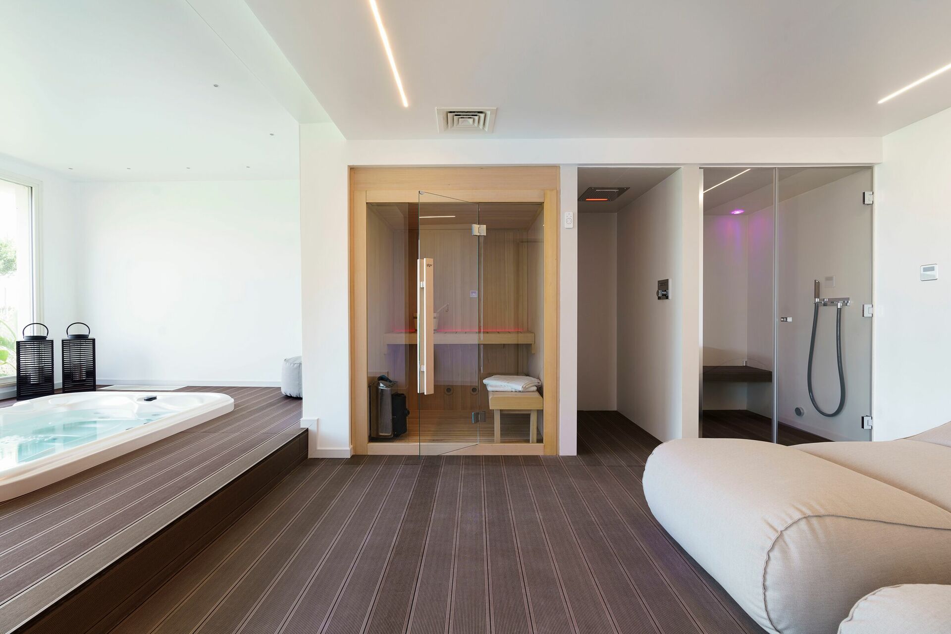- zona benessere con sauna, bagno turco, vasca idromassaggio e doccia emozionale (sauna e bagno turco sono disponibili su richiesta)