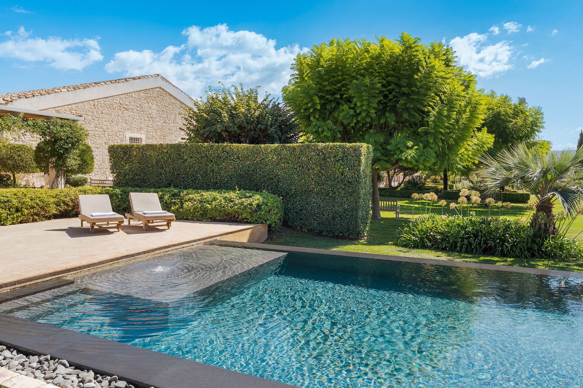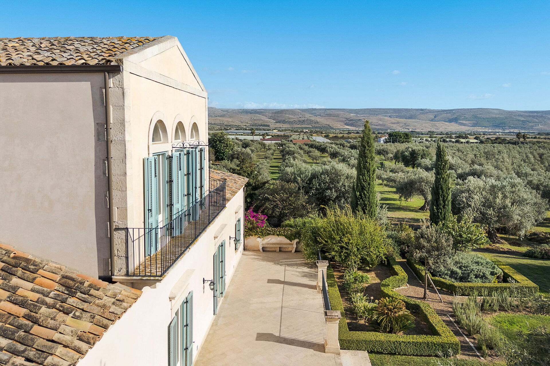 Lussuosa e grande residenza con piscina privata in affitto per vacanze in Sicilia: è situata in una posizione tranquilla, soleggiata e splendidamente incorniciata da distese di ulivi.