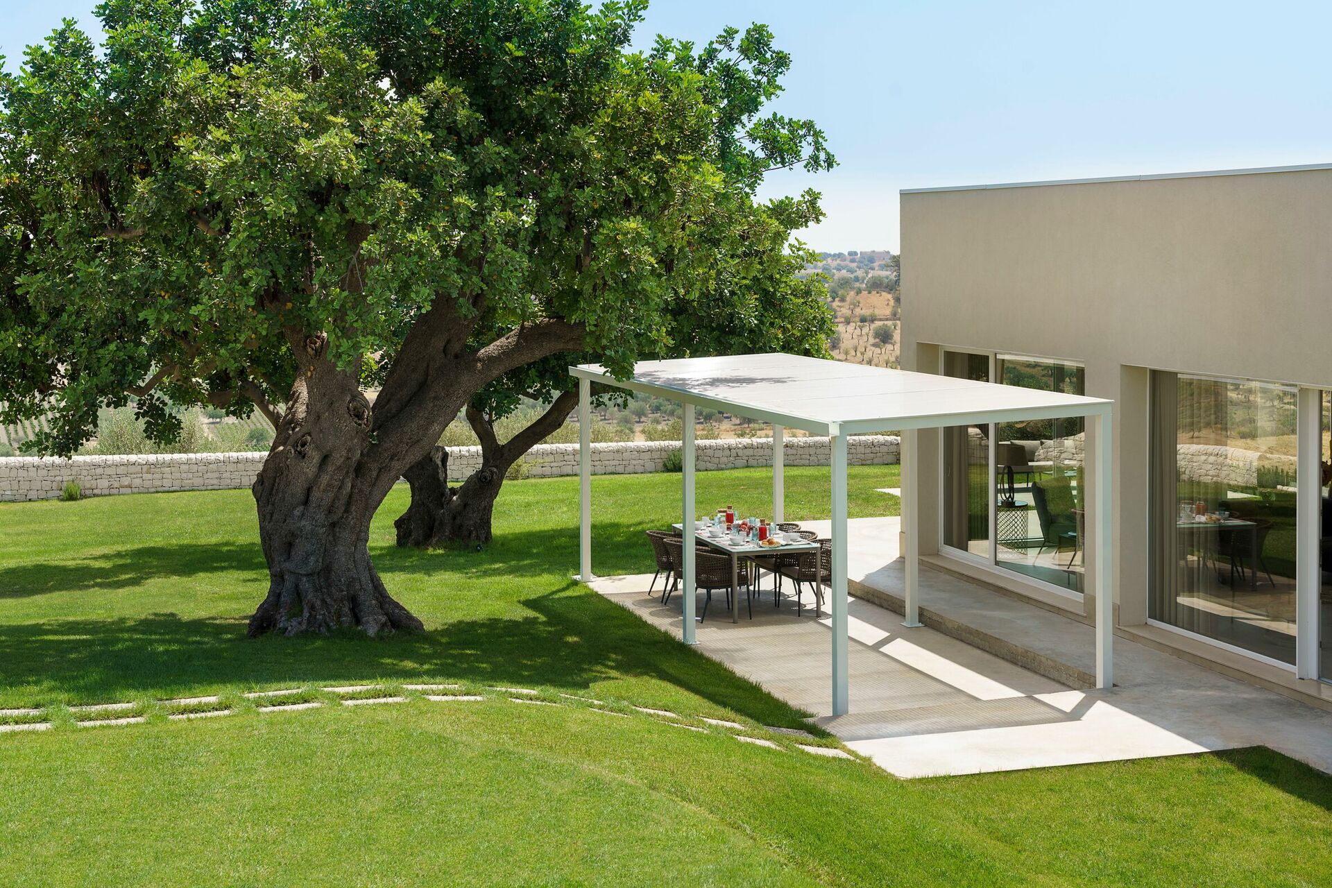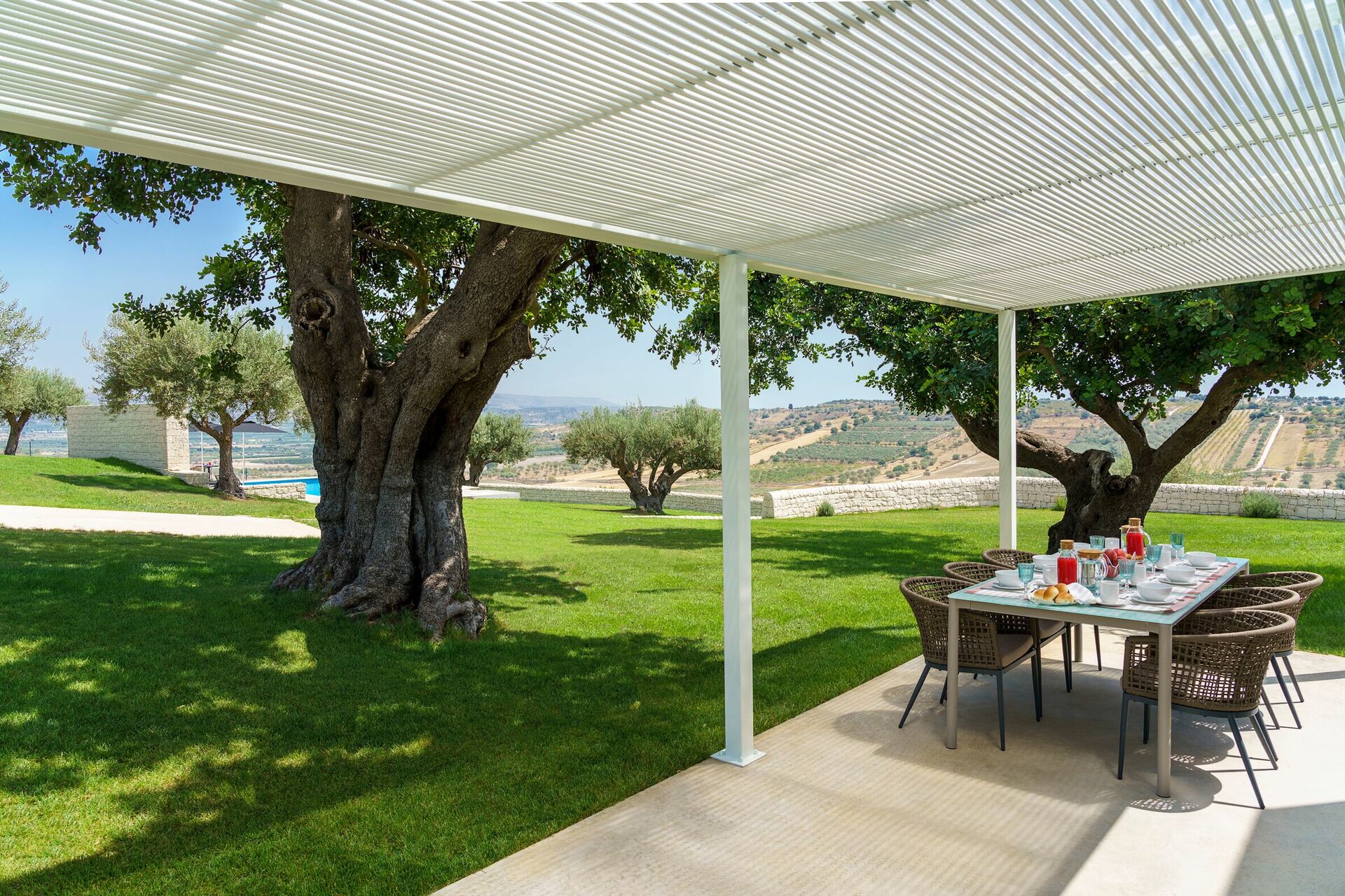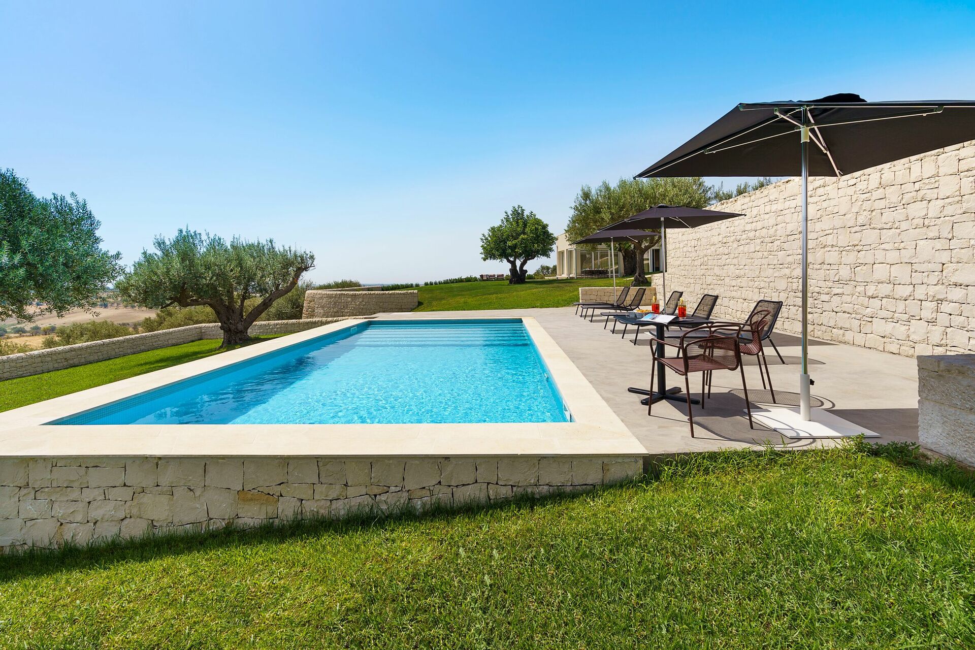 Inserita in un incantevole contesto rurale, ornato da ulivi, carrubi e muretti a secco, la dimora è circondata da un ampio giardino che accoglie la bella piscina privata ed una terrazza attrezzata per pranzi all’aperto.