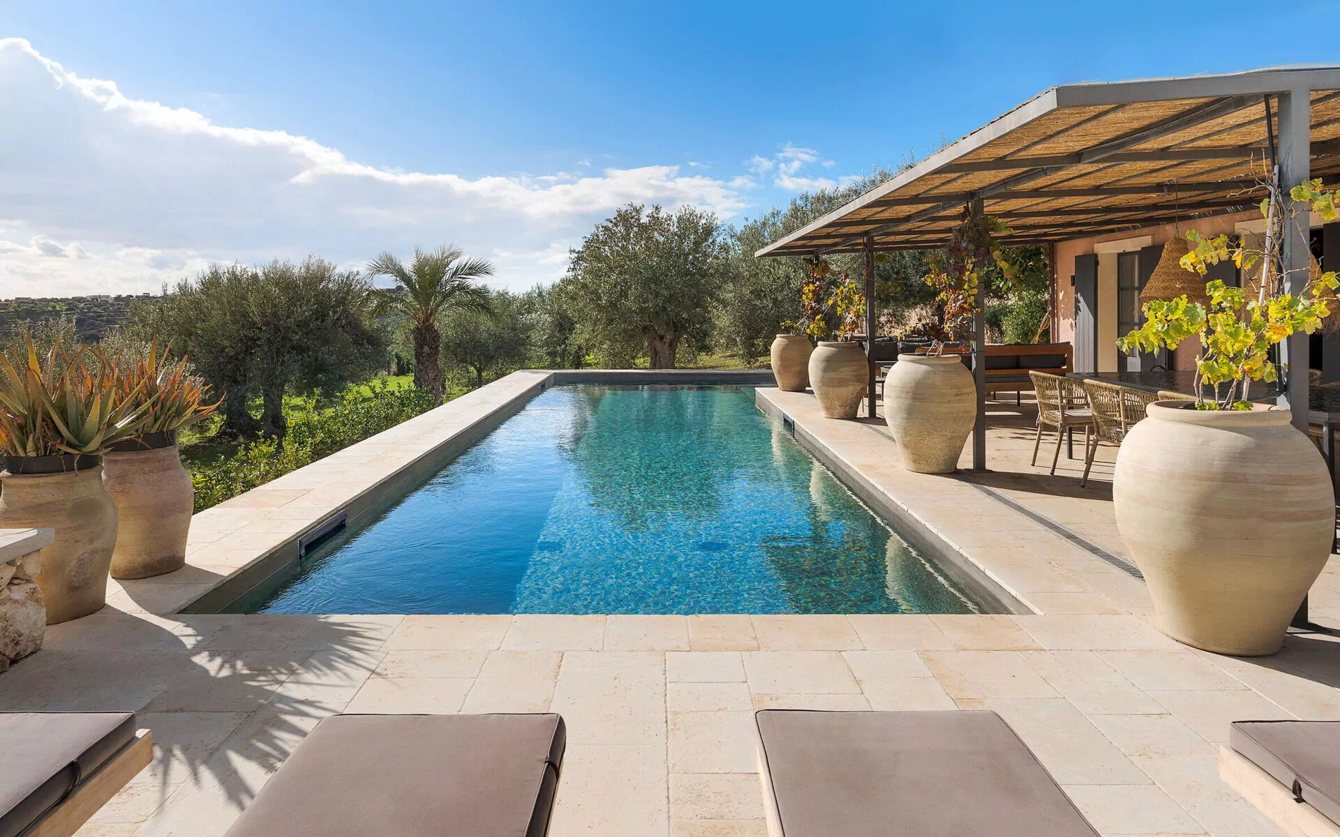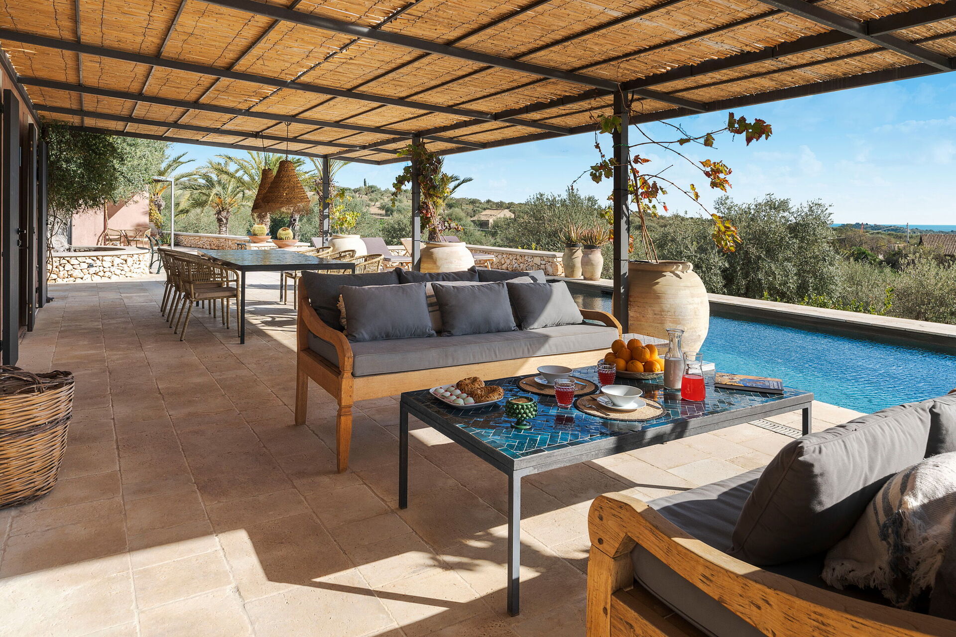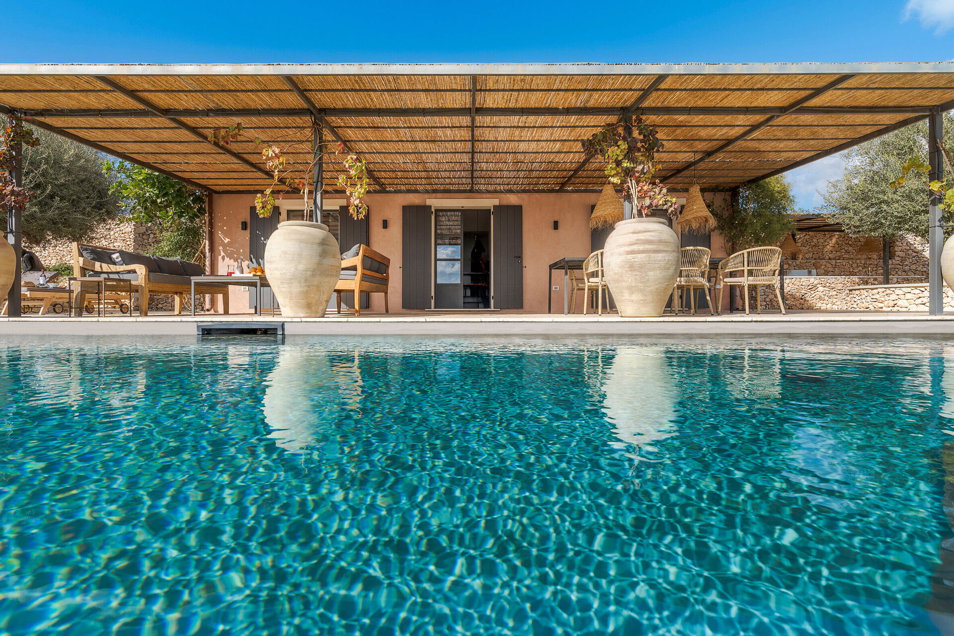 All'esterno è presente una grande piscina dotata di solarium con lettini: il luogo ideale per trascorrere piacevoli momenti sotto il sole della Sicilia, rilassandosi e rinfrescandosi in compagnia di amici e familiari.