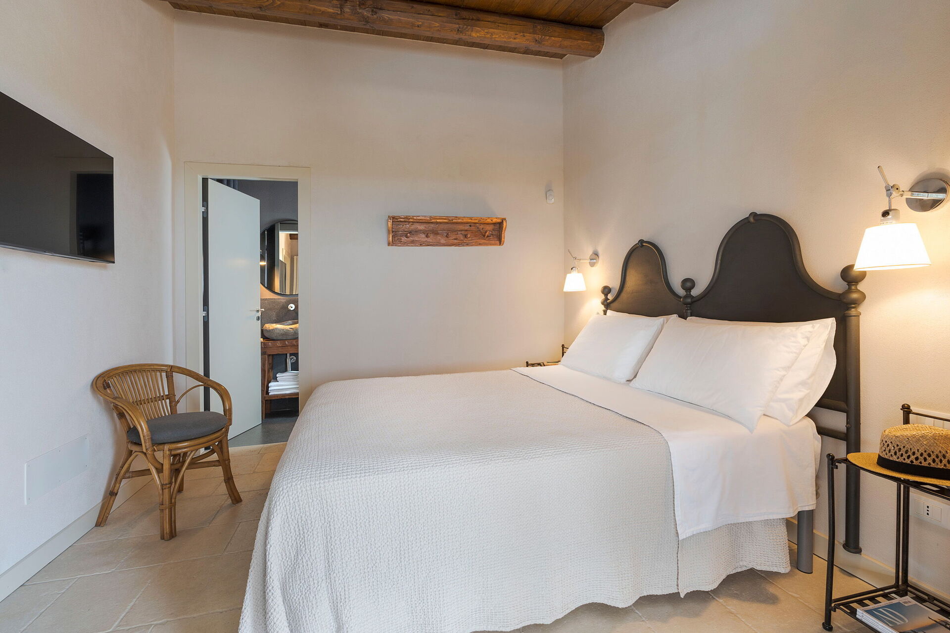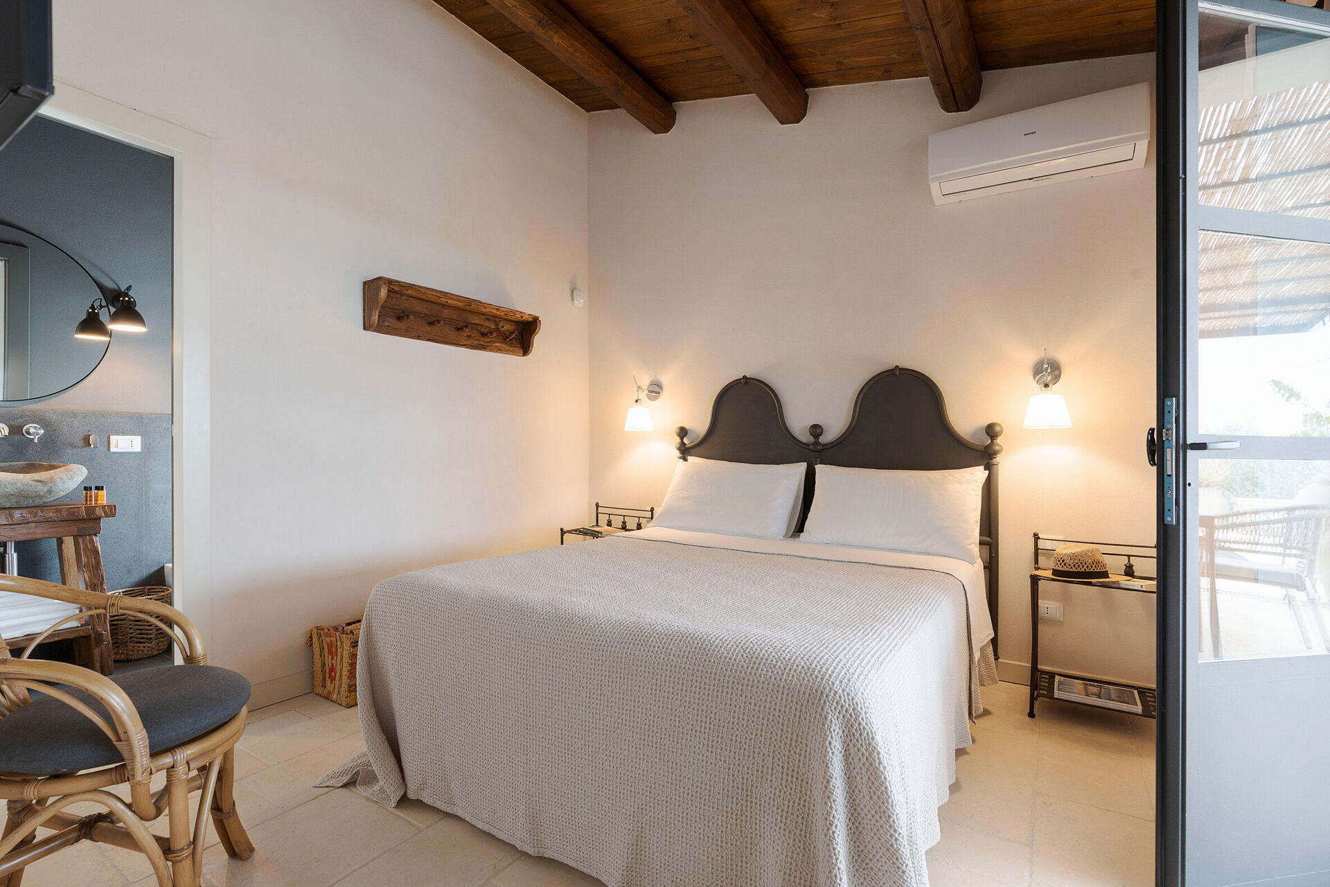 Piano terreno: camera matrimoniale (misure del letto: 160 x 200 cm) con bagno privato con doccia.