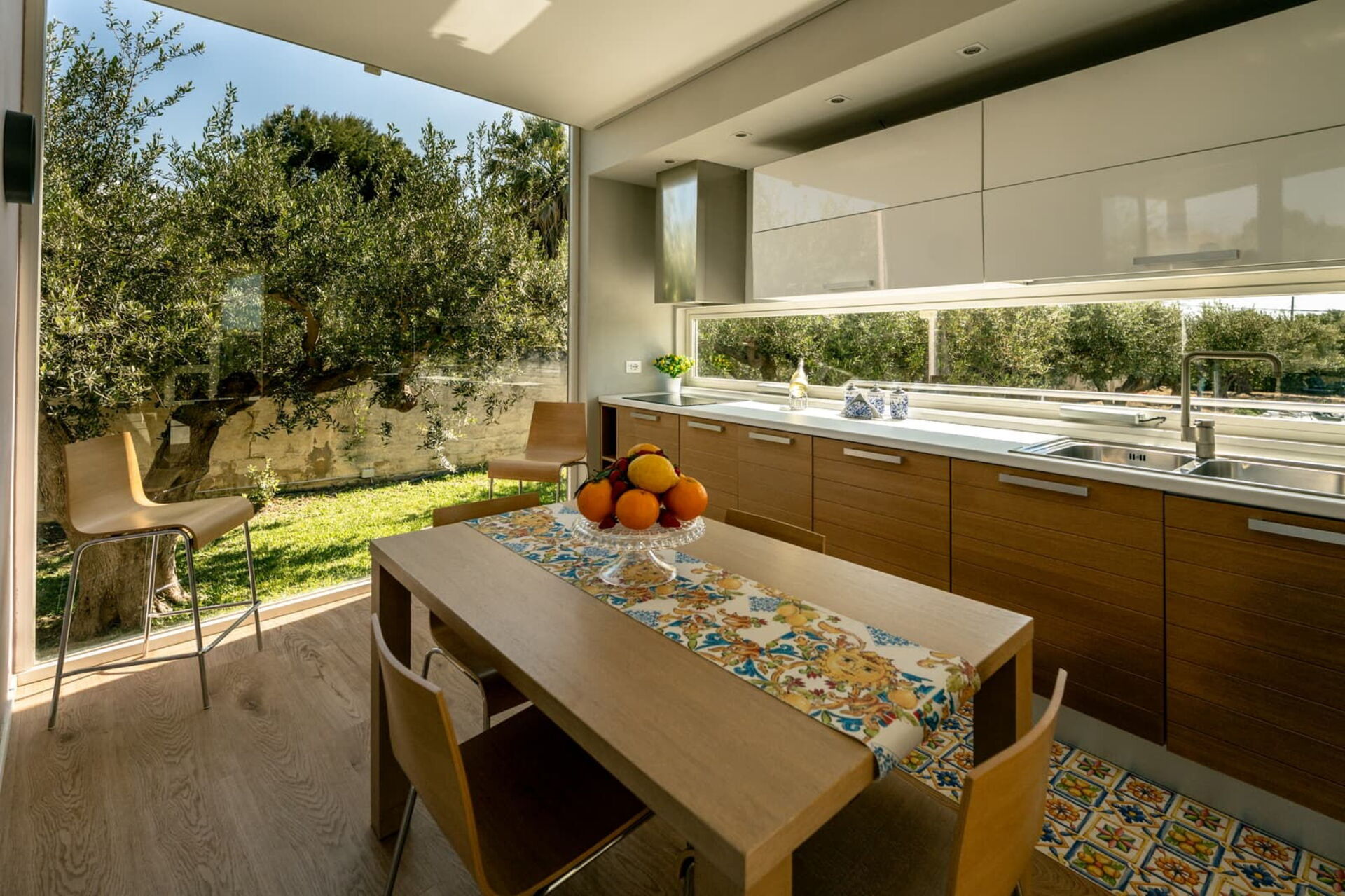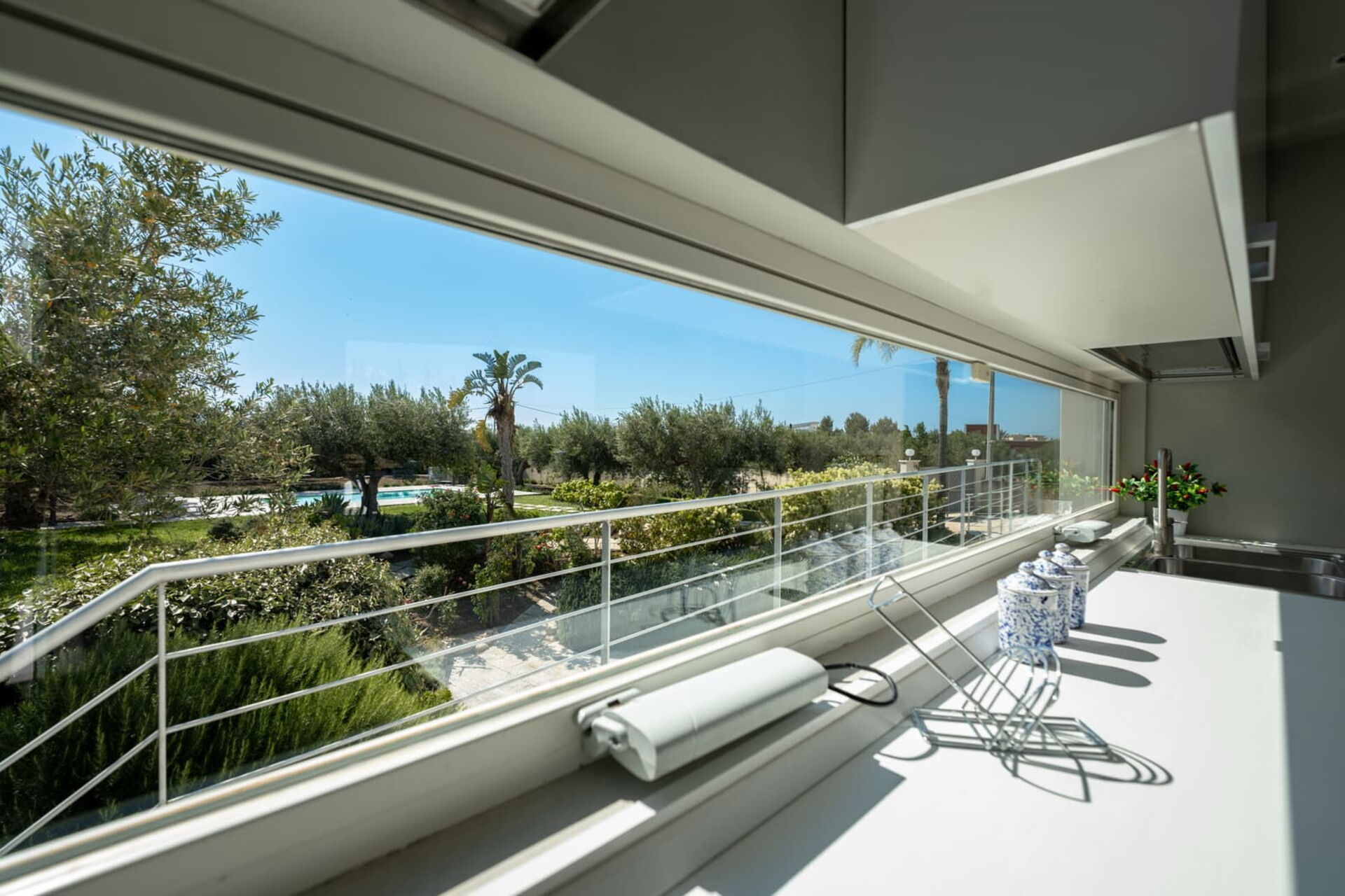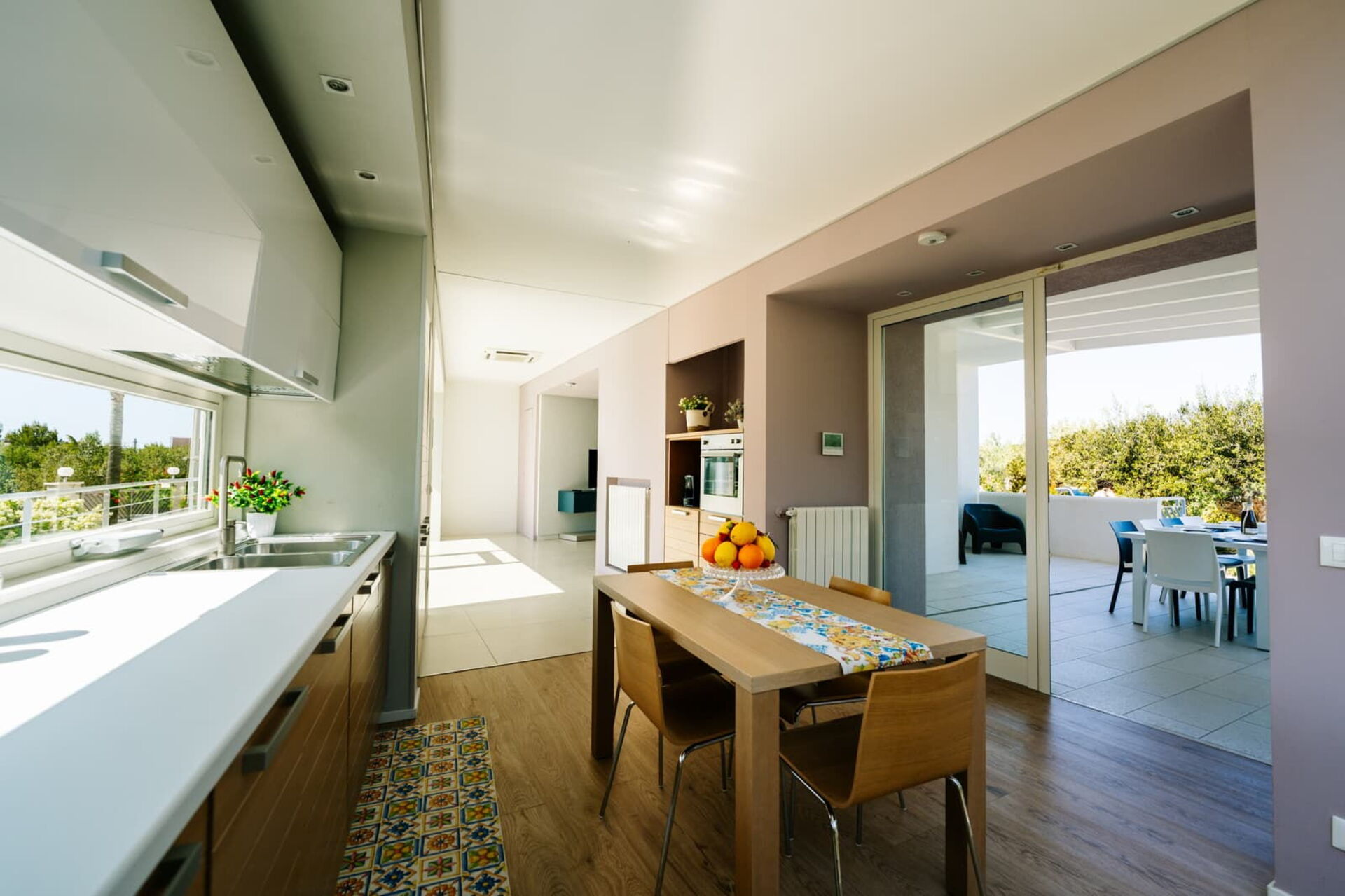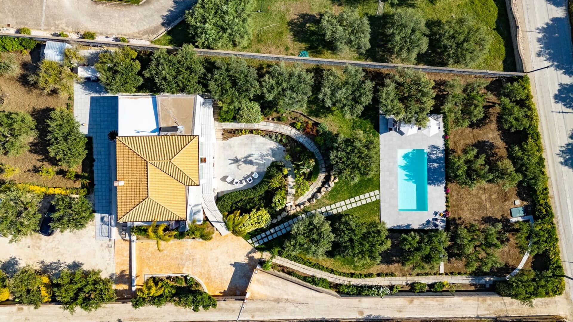 All’esterno questa moderna dimora offre numerose aree comuni che permettono agli ospiti di trascorrere un piacevole soggiorno in famiglia o tra amici rilassandosi nella veranda attrezzata per mangiare all’aperto o nell’ ampia zona piscina, ideale per trascorrere indimenticabili momenti sotto il sole della Sicilia.