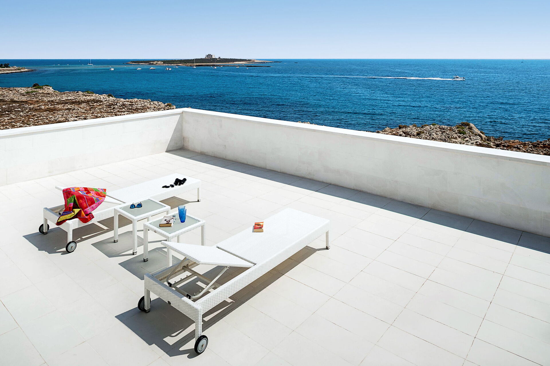 Una zona pranzo esterna posta sotto la veranda rappresenta il punto forte della proprietà: da qui potrete rilassarvi e mangiare all'aperto godendo di una fantastica vista mozzafiato sul mare, con l’isola di Capo Passero che si staglia all'orizzonte. Le ampie zone adibite a solarium rendono questa villa il luogo ideale per rilassarsi insieme ad amici e familiari sotto al caldo sole della Sicilia.