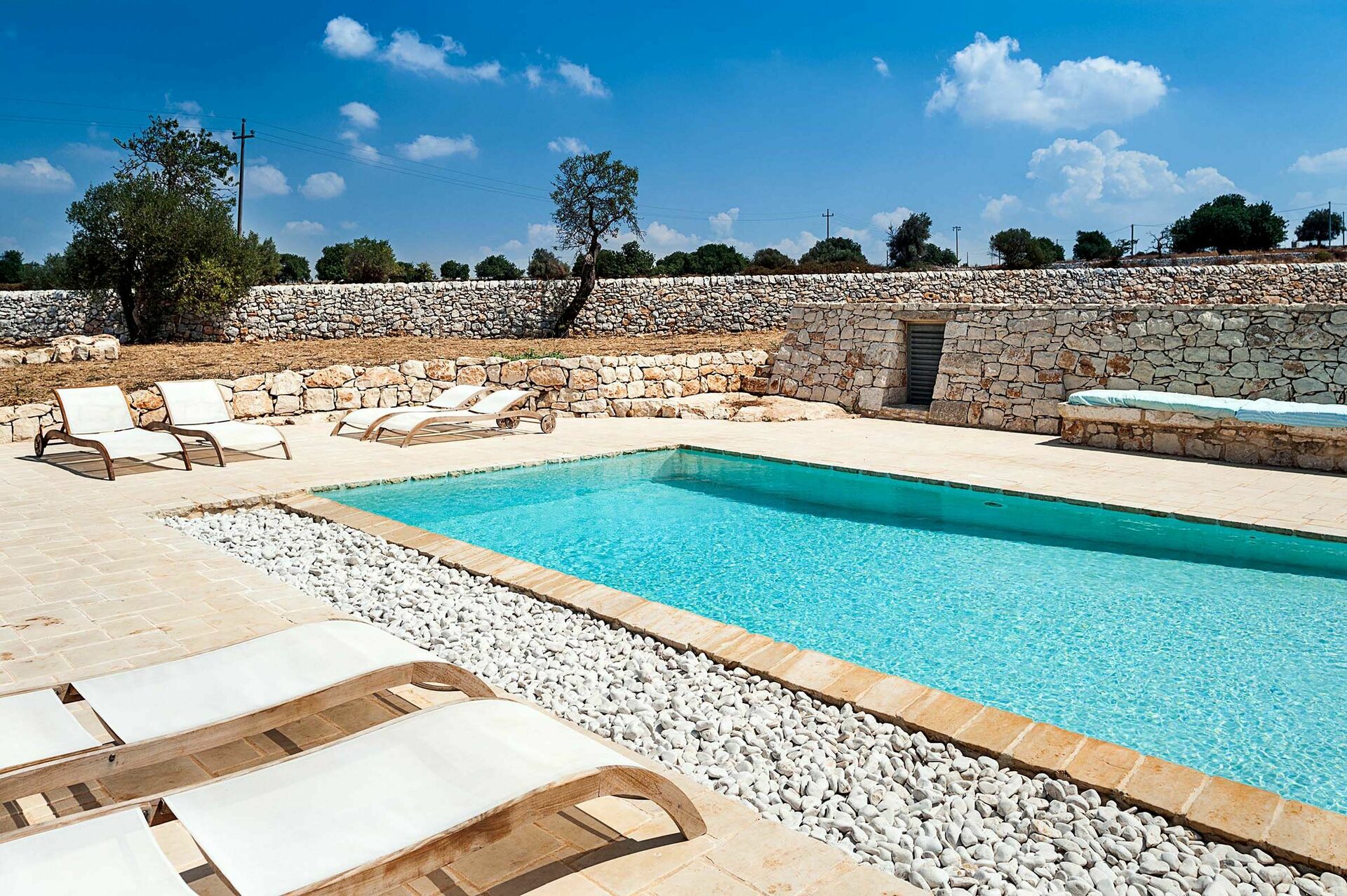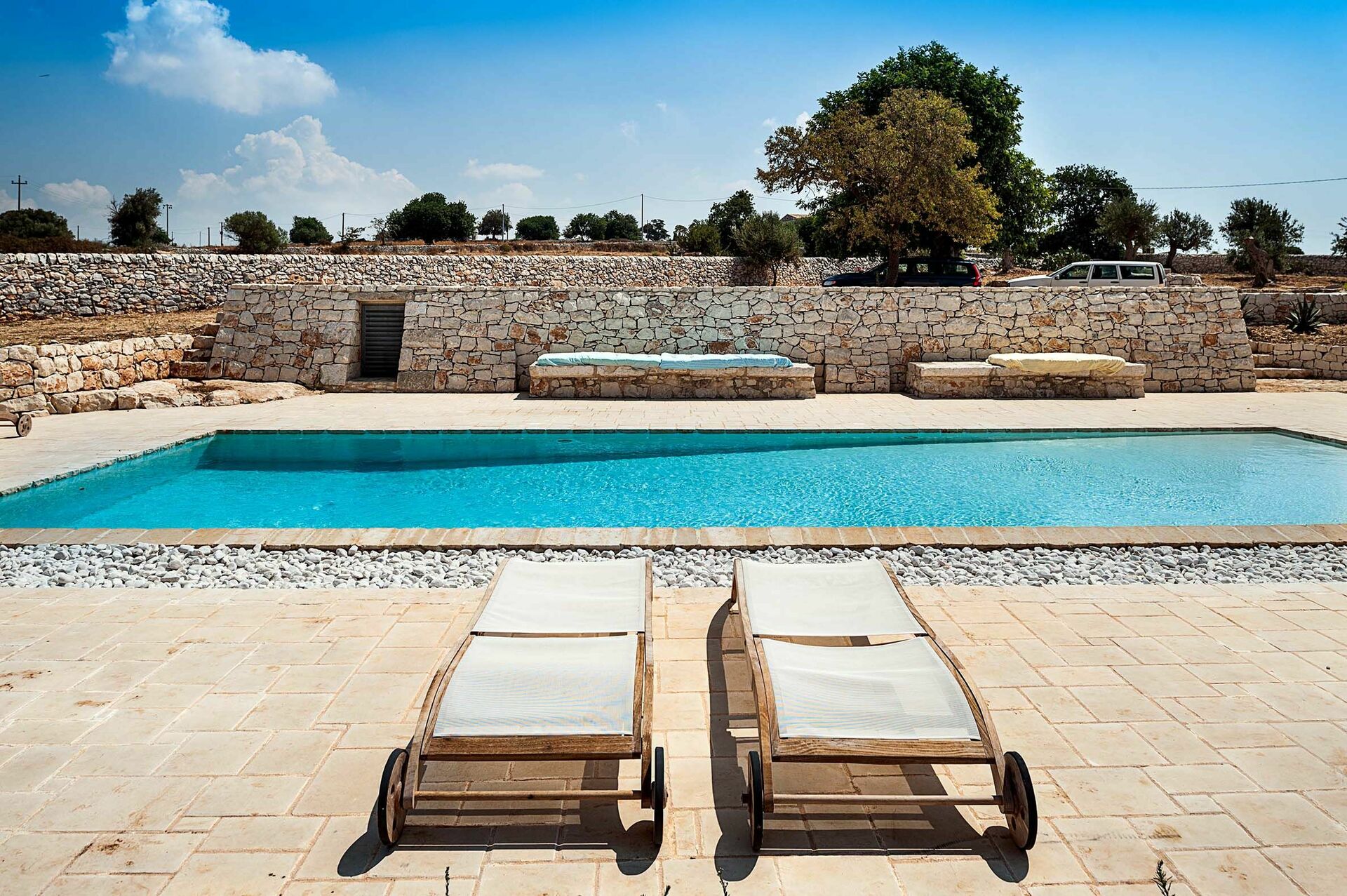 Circondata da tradizionali muretti a secco, la masseria offre una bella piscina, ampie e soleggiate terrazze ed una caratteristica corte interna. All'interno gli ambienti si distinguono per il ricercato design e per il grande impiego di materiali quali la pietra naturale, l'acciaio e il legno, in perfetta armonia con lo stile della costruzione.