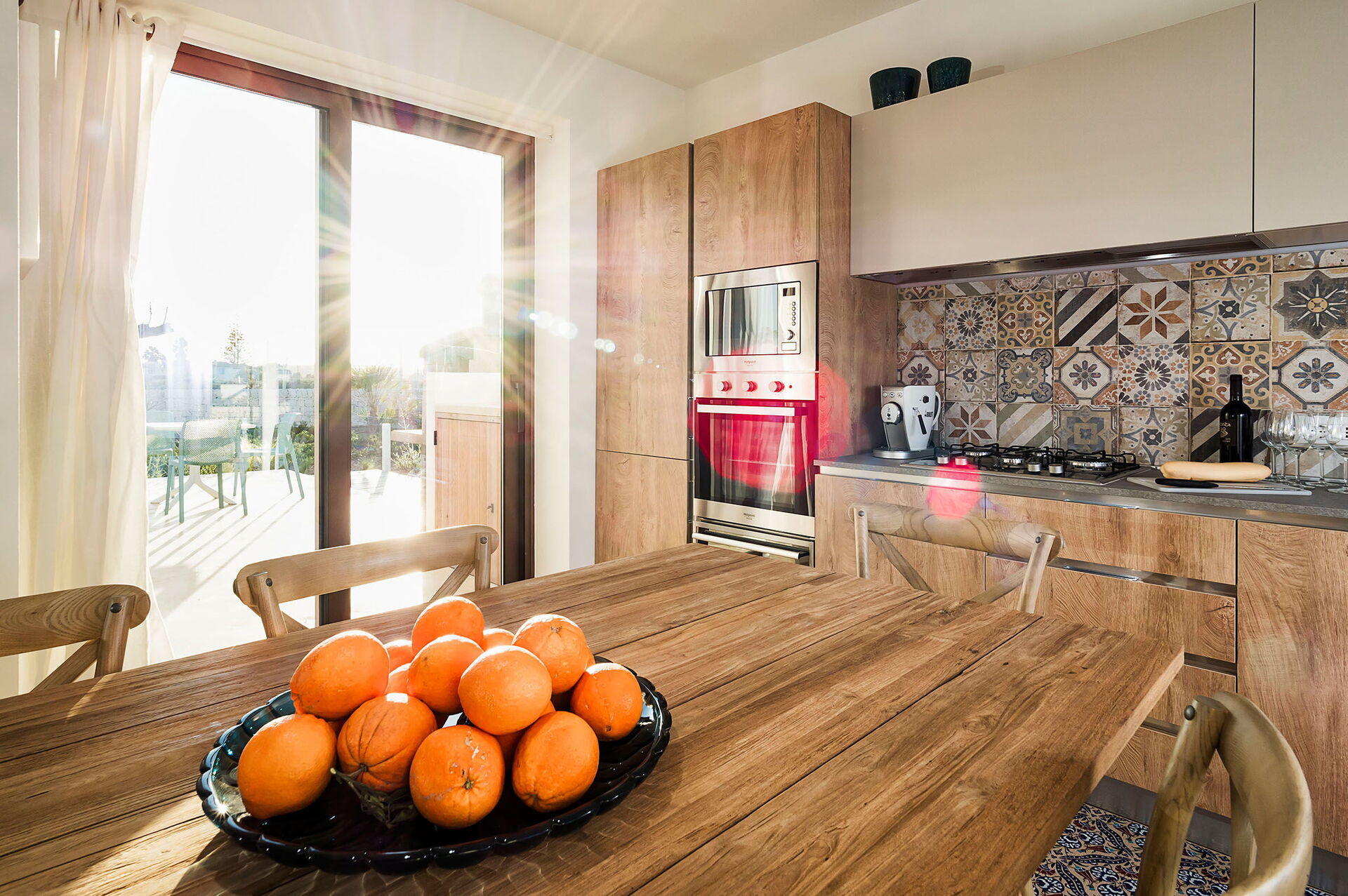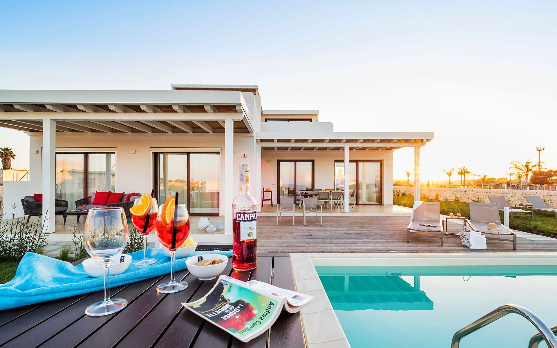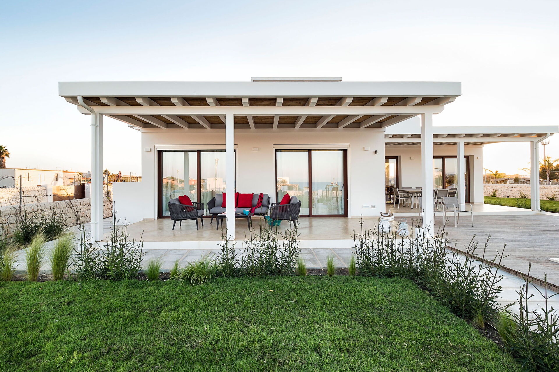 Di recente costruzione, la villa offre luminosi ed accoglienti ambienti interni arredati con gusto e funzionalità. La villa in affitto può ospitare fino a 8 persone in 4 camere da letto e interni dotati di ogni comfort.