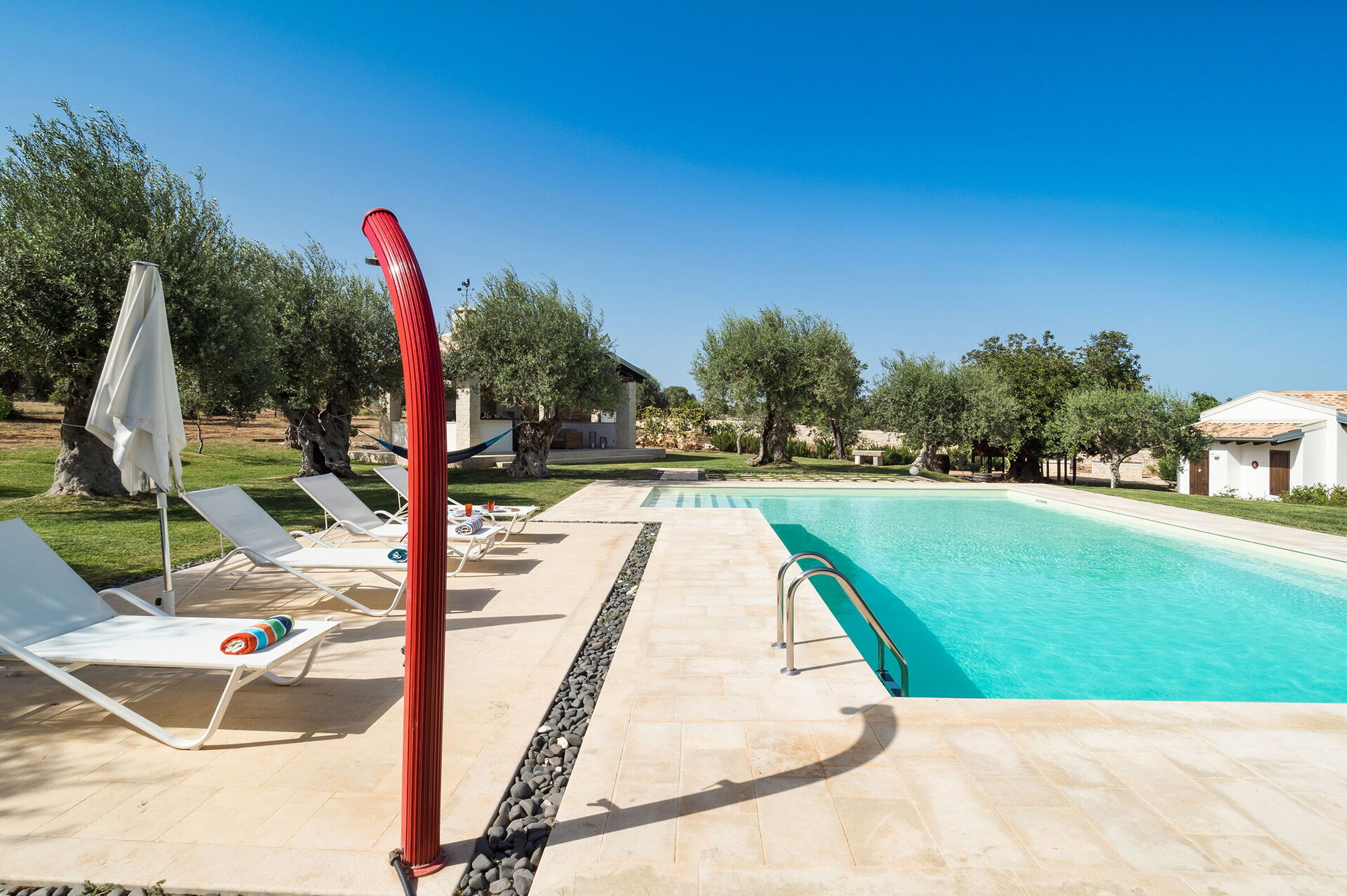 - piscina privata (12 x 6 metri; profondità minima: 1,10 metri; profondità massima: 2,30 metri; impianto di depurazione a sale)