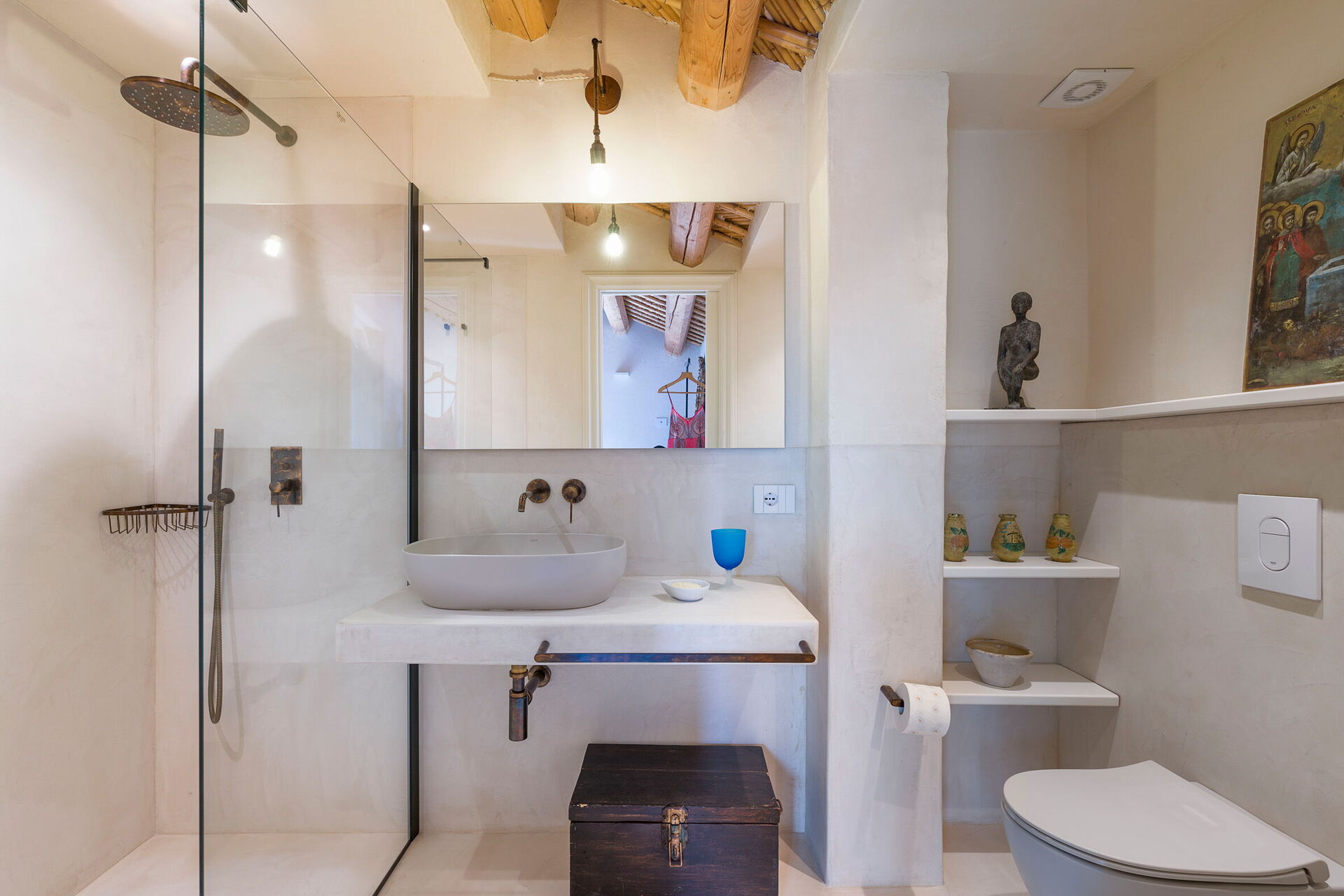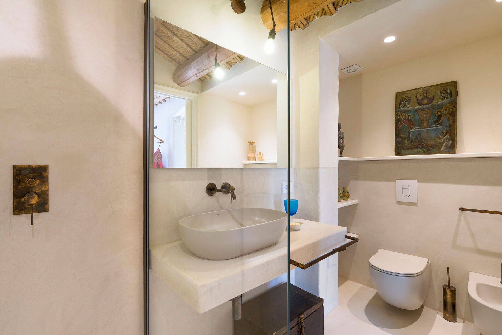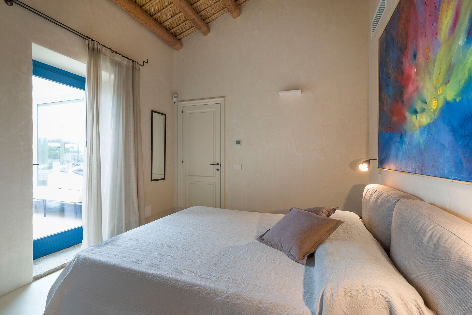 Piano terreno: cucina (piano cottura, forno, freezer, frigorifero, lavastoviglie, macchina per il caffe, tostapane), sala da pranzo, panoramico soggiorno (smart TV), 1 camera matrimoniale (aria condizionata, letto king size) con bagno privato con doccia, 2 camere matrimoniali (aria condizionata) ognuna con bagno privato con doccia.