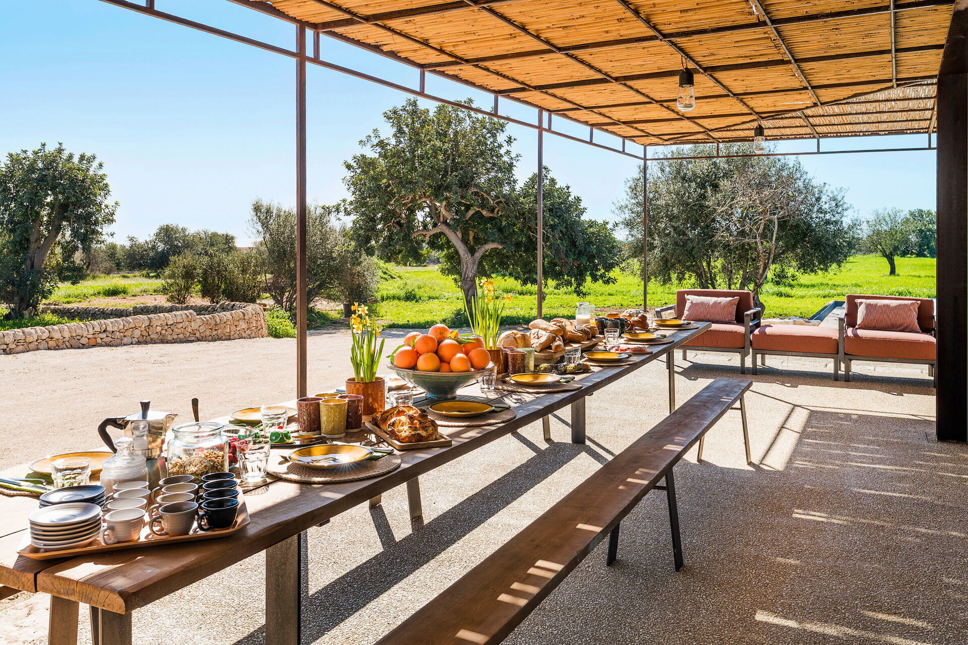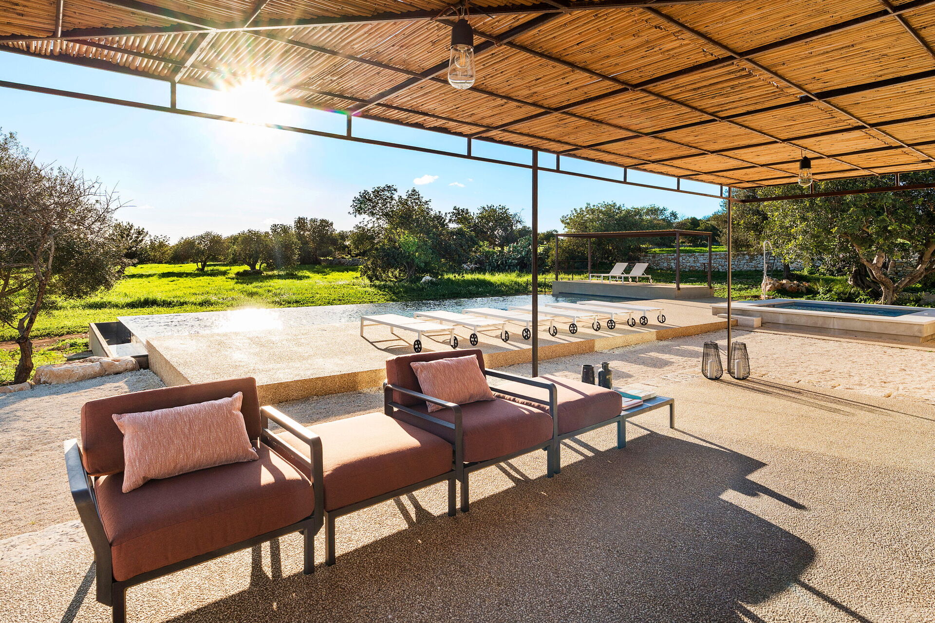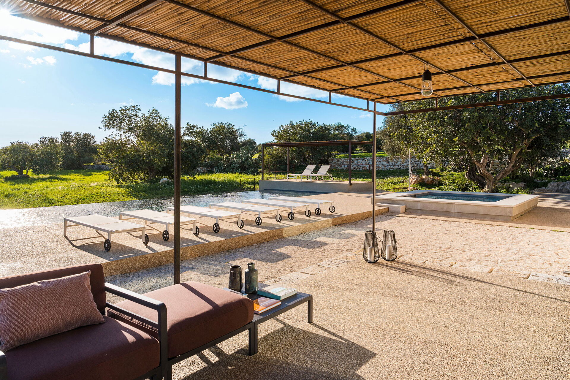 Le panoramiche zone esterne offrono numerose aree che permettono agli ospiti di trascorrere un piacevole soggiorno in famiglia o tra amici: sarà possibile mangiare all’aperto, rilassarsi a bordo piscina (con impianto di depurazione a sale) o nella zona solarium che ospita anche una vasca idromassaggio ideale per trascorrere indimenticabili momenti sotto il sole della Sicilia.