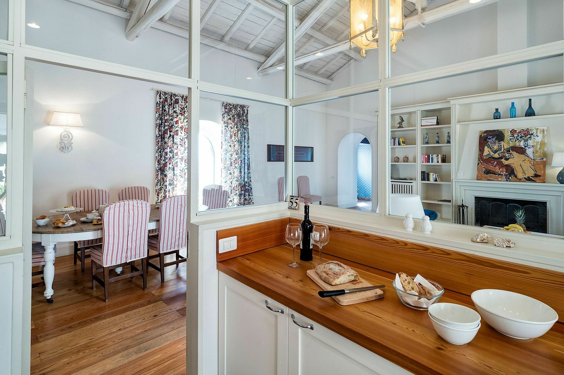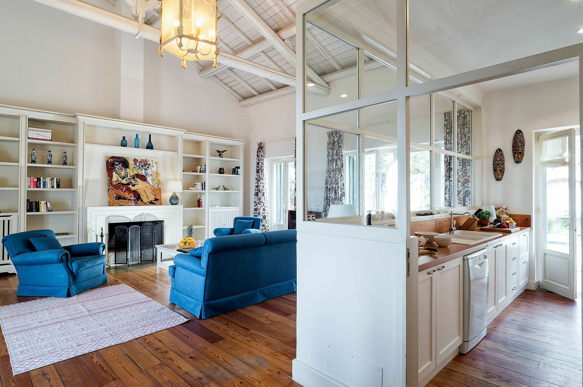 Gli accoglienti ambienti interni della villa si distinguono per l’atmosfera romantica e raffinata, la villa è inoltre dotata di Wi-Fi, TV satellitare, lavatrice e lavastoviglie.