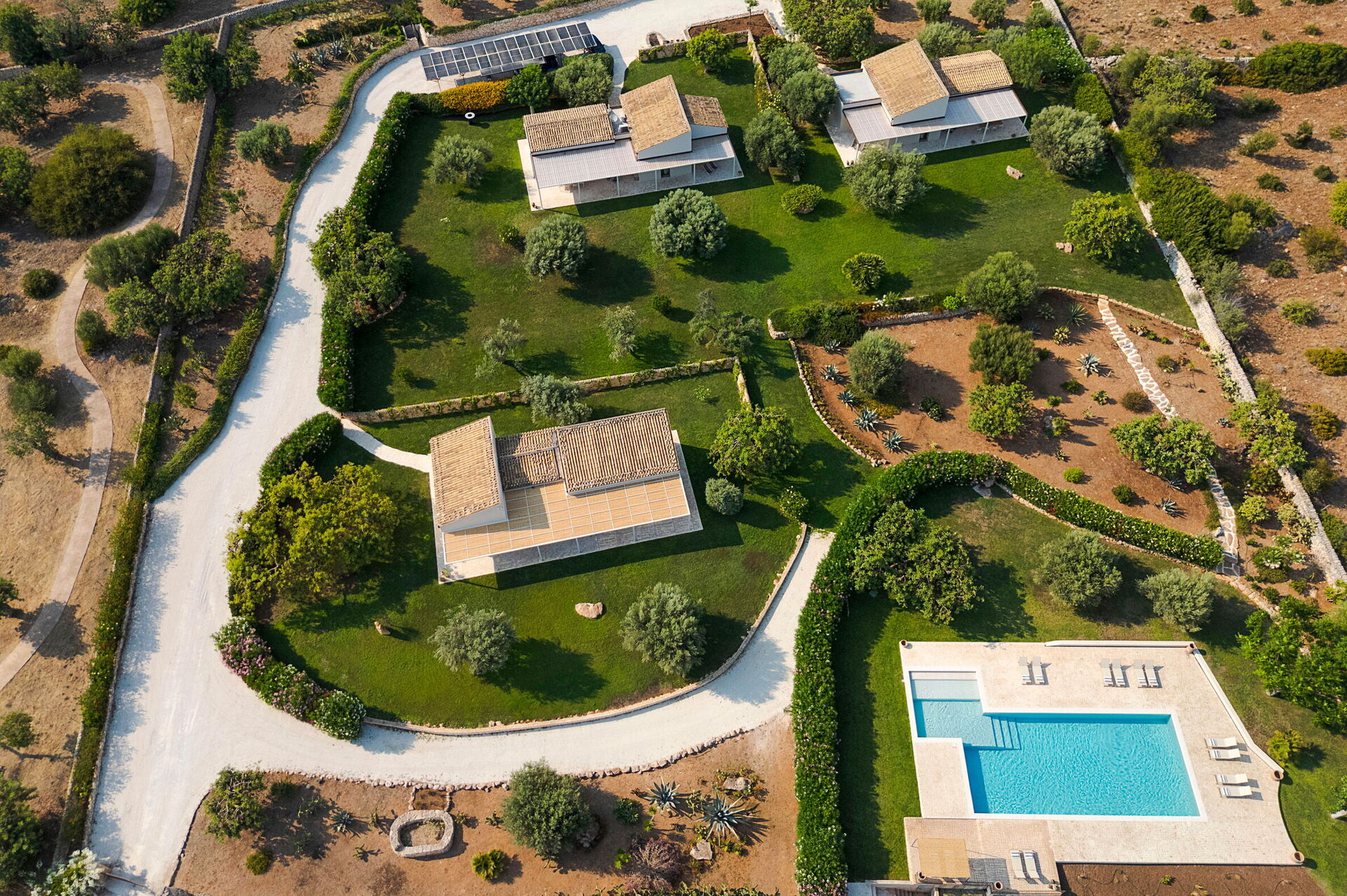 Esclusiva residenza con piscina situata in posizione tranquilla e soleggiata nella campagna intorno a Scicli, sulla costa sud-orientale della Sicilia. Questa splendida proprietà - armoniosamente inserita nel ricco e suggestivo paesaggio agreste che la circonda - ospita 3 ville indipendenti, ognuna delle quali dispone di ampie terrazze e giardino privati che garantiscono privacy e riservatezza a ciascun ospite.