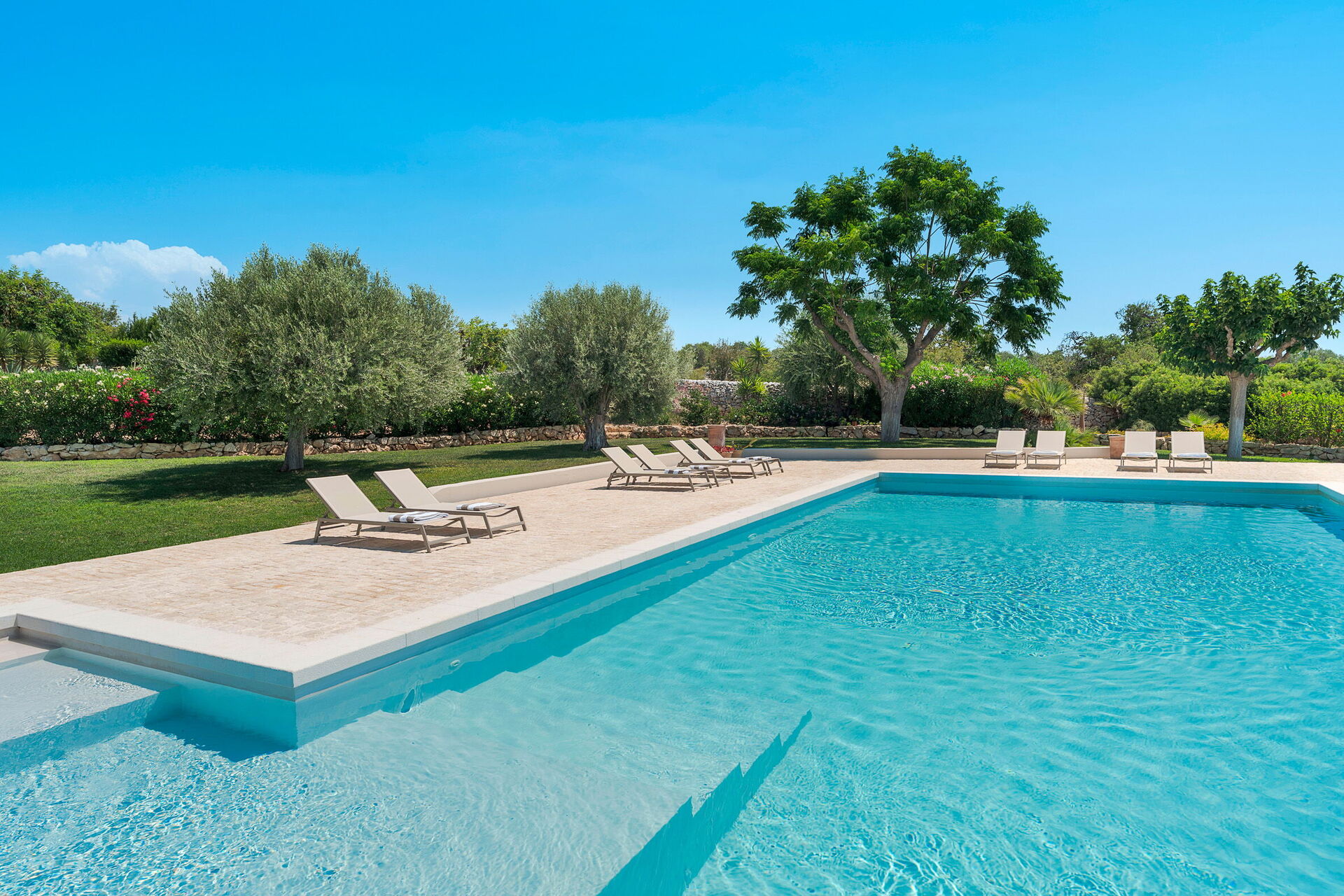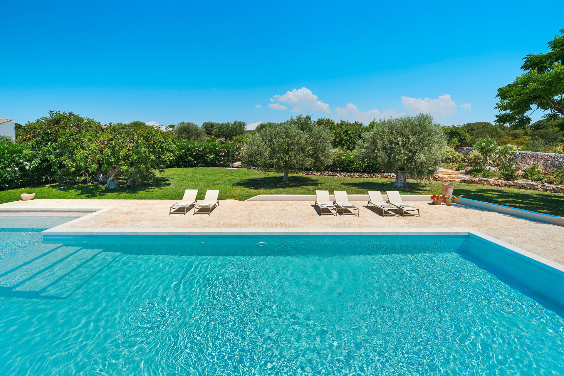 Ai margini dell’ampio parco con prato inglese, carrubi e olivi centenari incorniciati da caratteristici muretti a secco, si trova la grande piscina in comune dove è piacevole rilassarsi e trovare ristoro nelle ore più calde della giornata. Isla Verde è il luogo ideale dove trascorrere un soggiorno confortevole e rilassante in coppia, con amici o in famiglia. Una vera e propria oasi di pace e di verde, una profusione di colori e profumi delicati da vivere in pieno relax, dove ogni sguardo coglie lo splendore della natura.