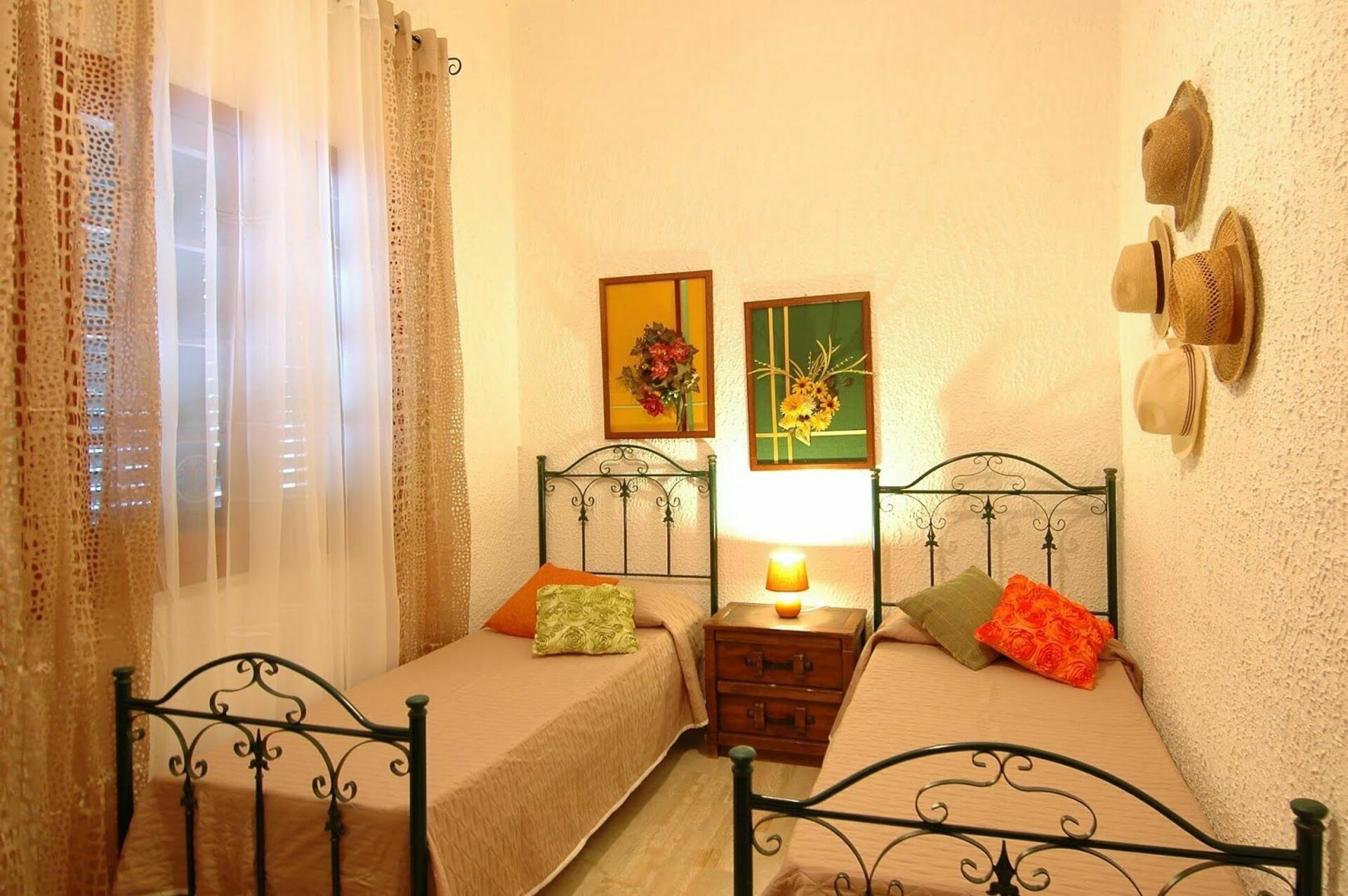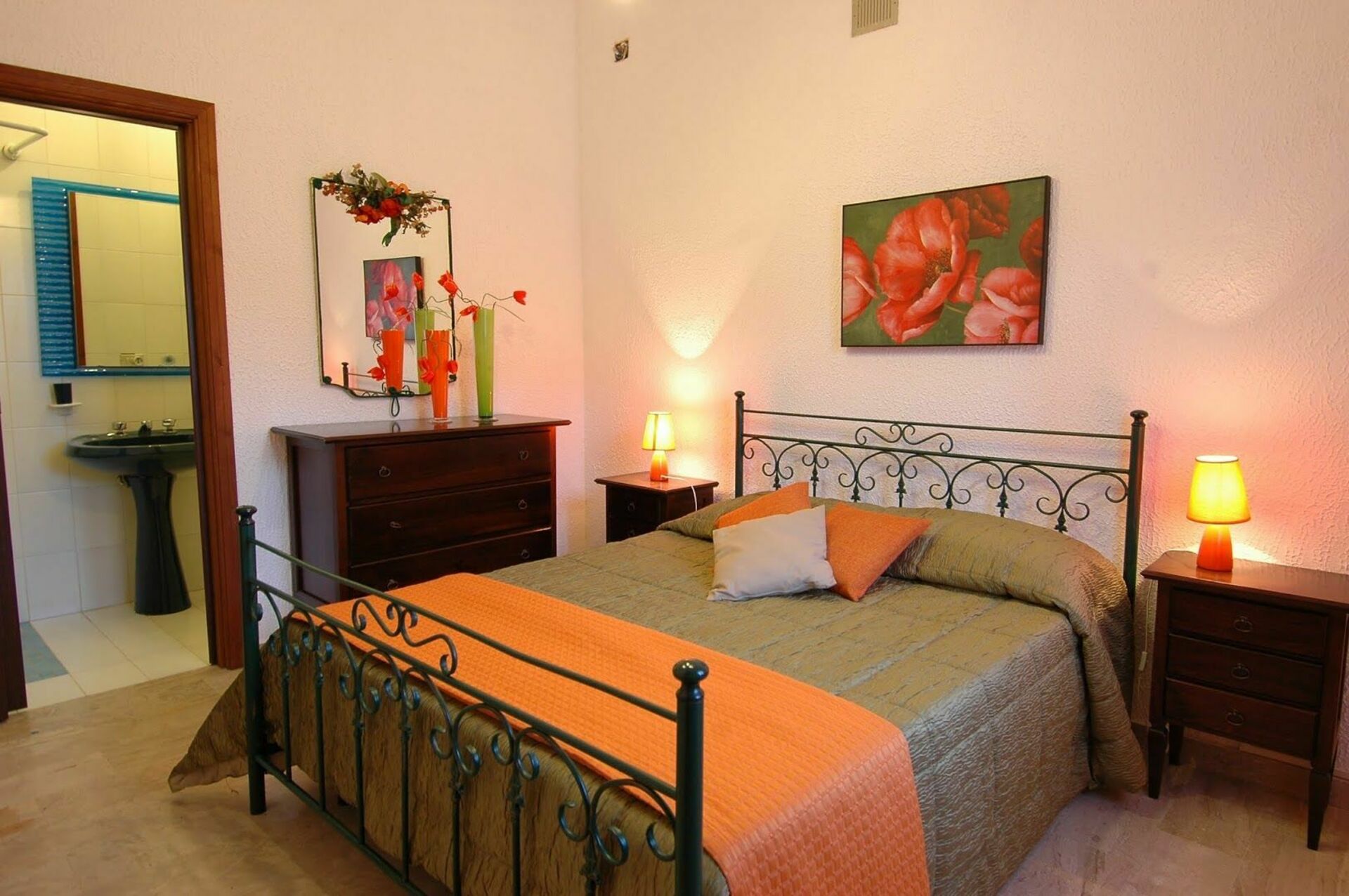 Piano terreno: ampio soggiorno (TV satellitare) con zona pranzo che si affaccia sul porticato esterno attrezzato, cucina (forno, tostapane, macchina da caffè americano), con accesso a due verande dove si può soggiornare comodamente, camera matrimoniale (aria condizionata) con bagno privato con doccia, camera con 2 letti singoli (aria condizionata), camera con 2 letti singoli (ventilatore a soffitto), camera singola (ventilatore a soffitto), bagno con doccia