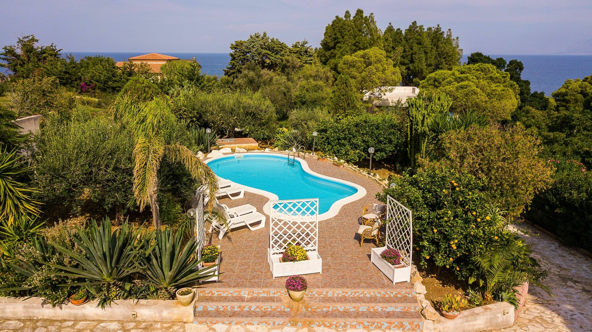 Scopello is a wonderful place to visit, the villa is a short drive from the village of Scopello. The house is quirky and when we visited need some love and attention but was fine and comfortable for four adults and two children. The private swimming spot / beach access sounds great but is quite tricky. There are amazing beaches and places to swim within easy reach of the house and the pool at the villa is really nice.