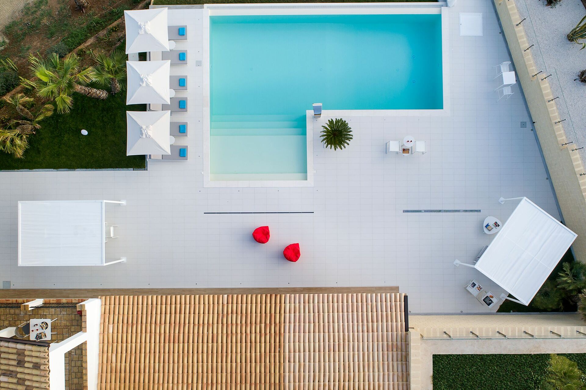 L’area della piscina è completamente attrezzata con lettini ed ombrelloni ed è il luogo ideale in cui trascorrere lunghe ore nella stagione più calda, rilassandosi e rinfrescandosi in compagnia di amici e familiari. La piscina è a sfioro e depurata al sale ed è ad uso esclusivo degli ospiti di Camemi.