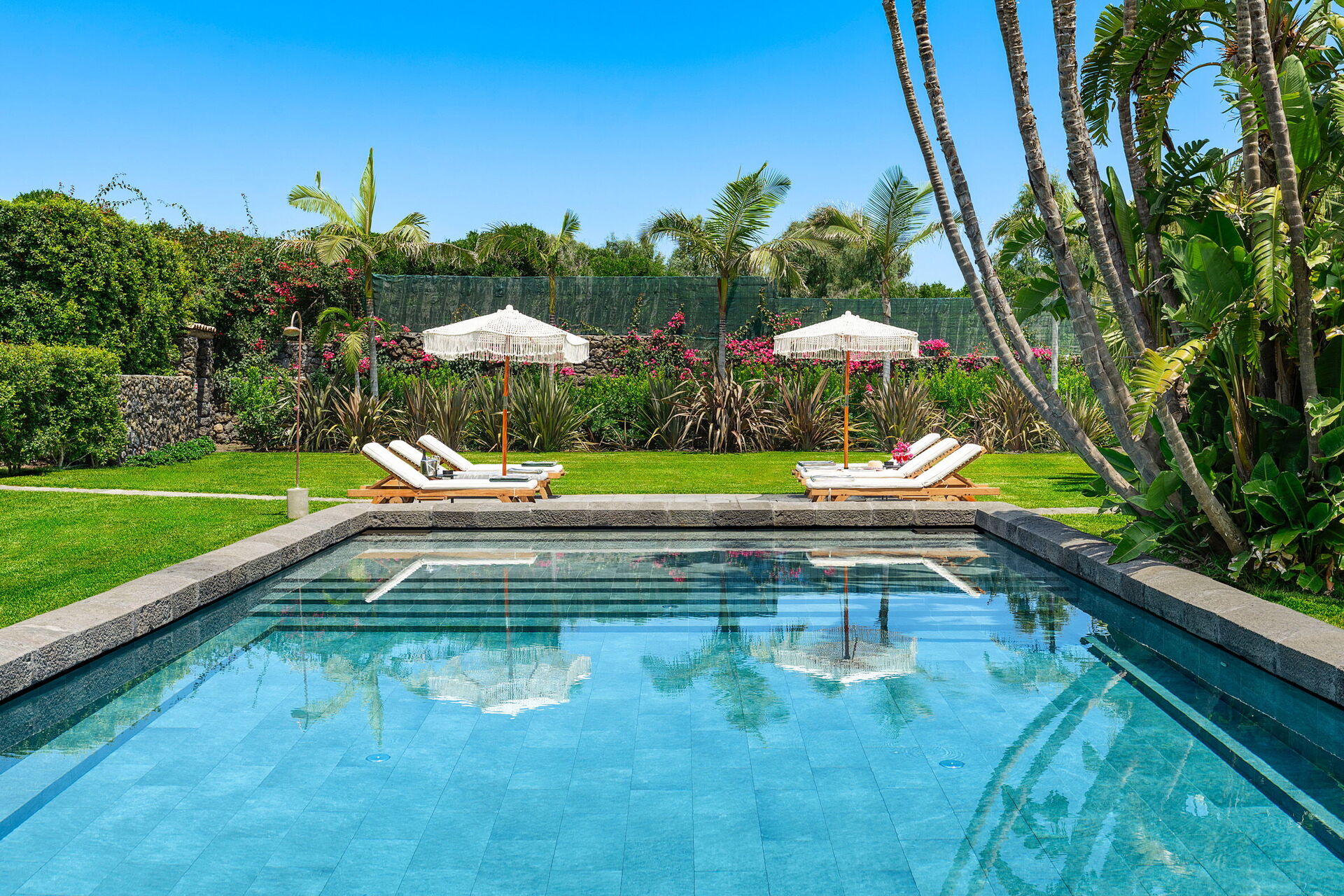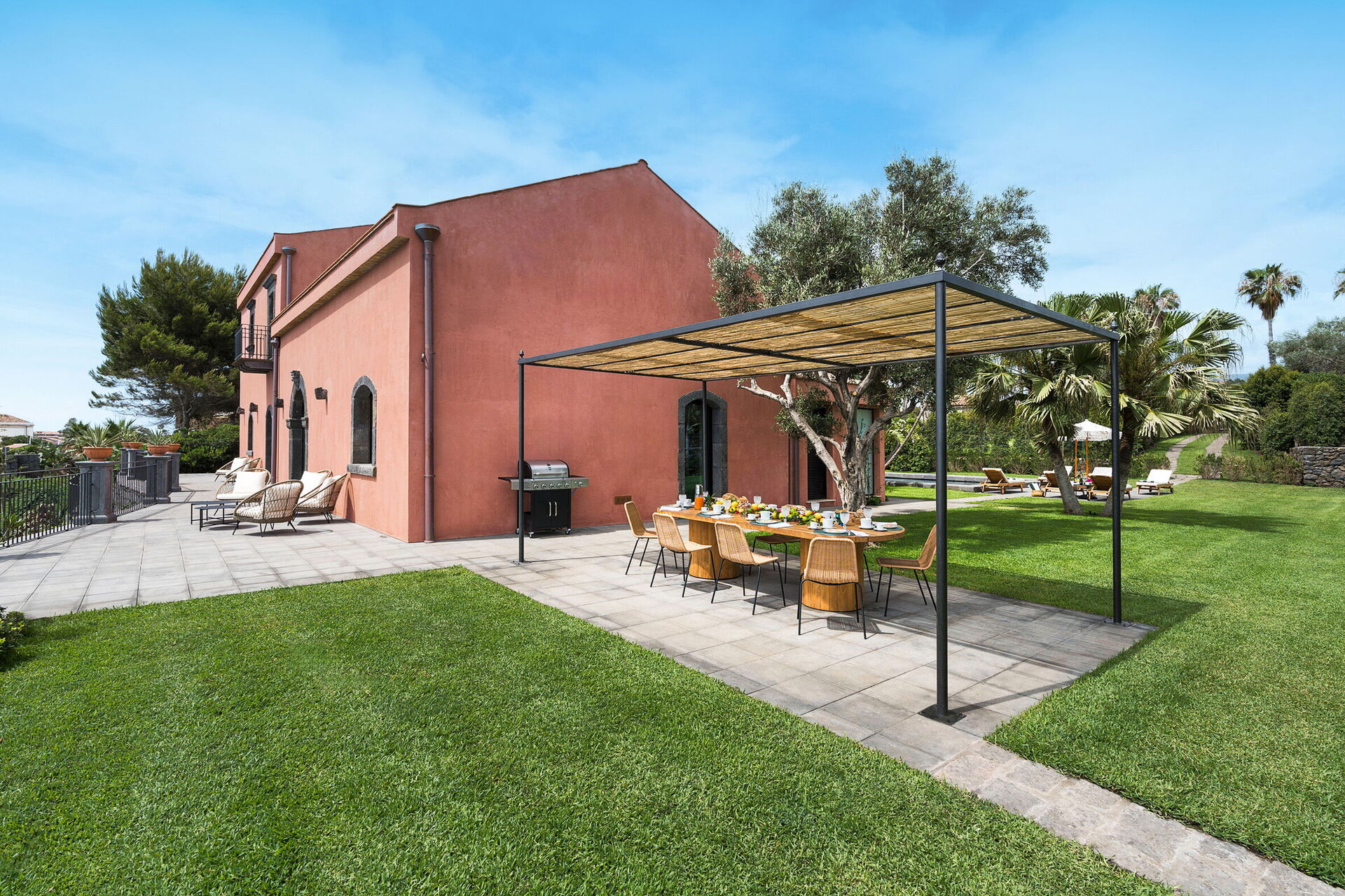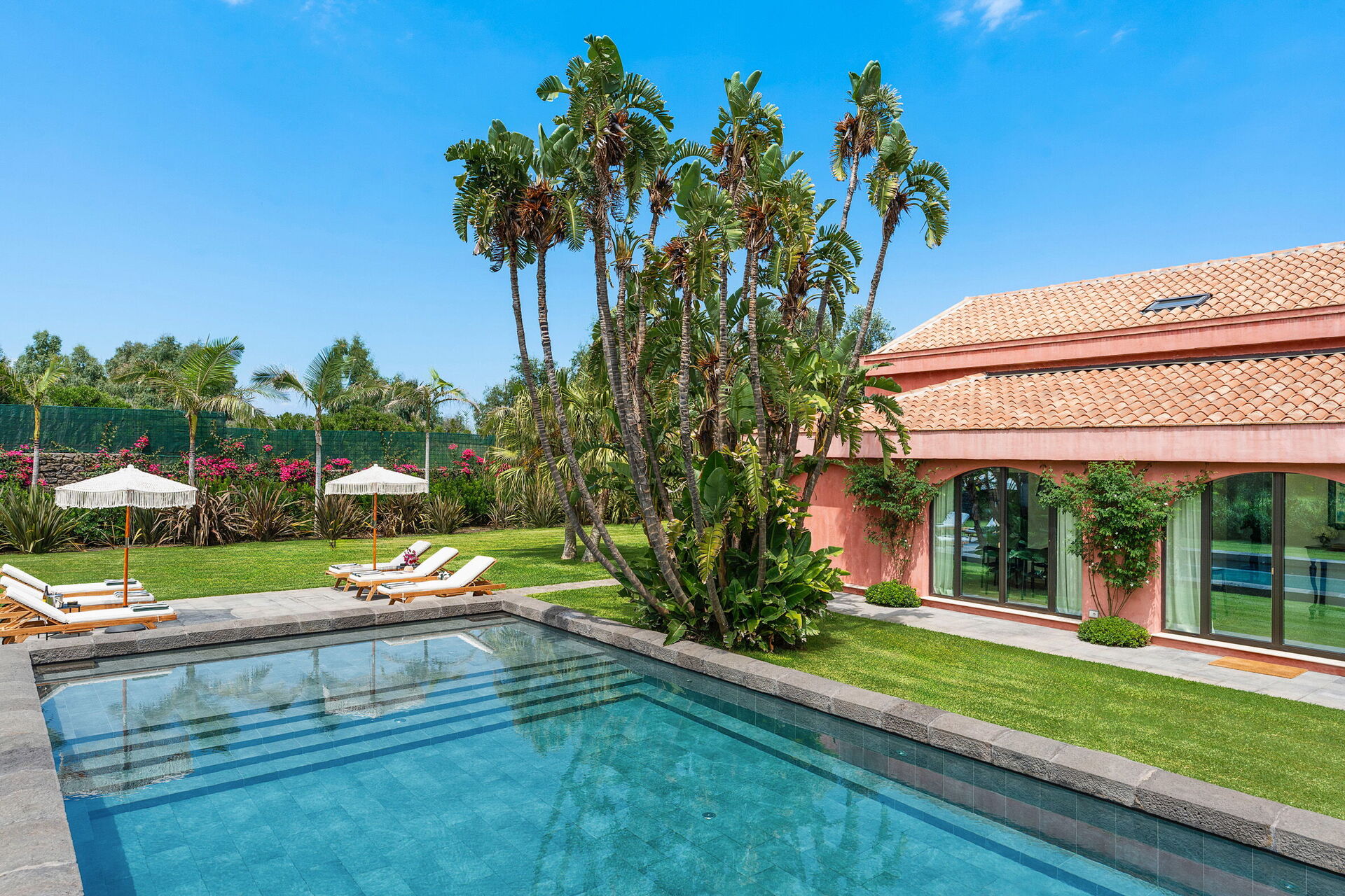 La villa, oltre ad essere circondata da ampie terrazze e da un curato giardino, ha anche un'esclusiva piscina, depurata a sale e riservata all'uso esclusivo degli ospiti.