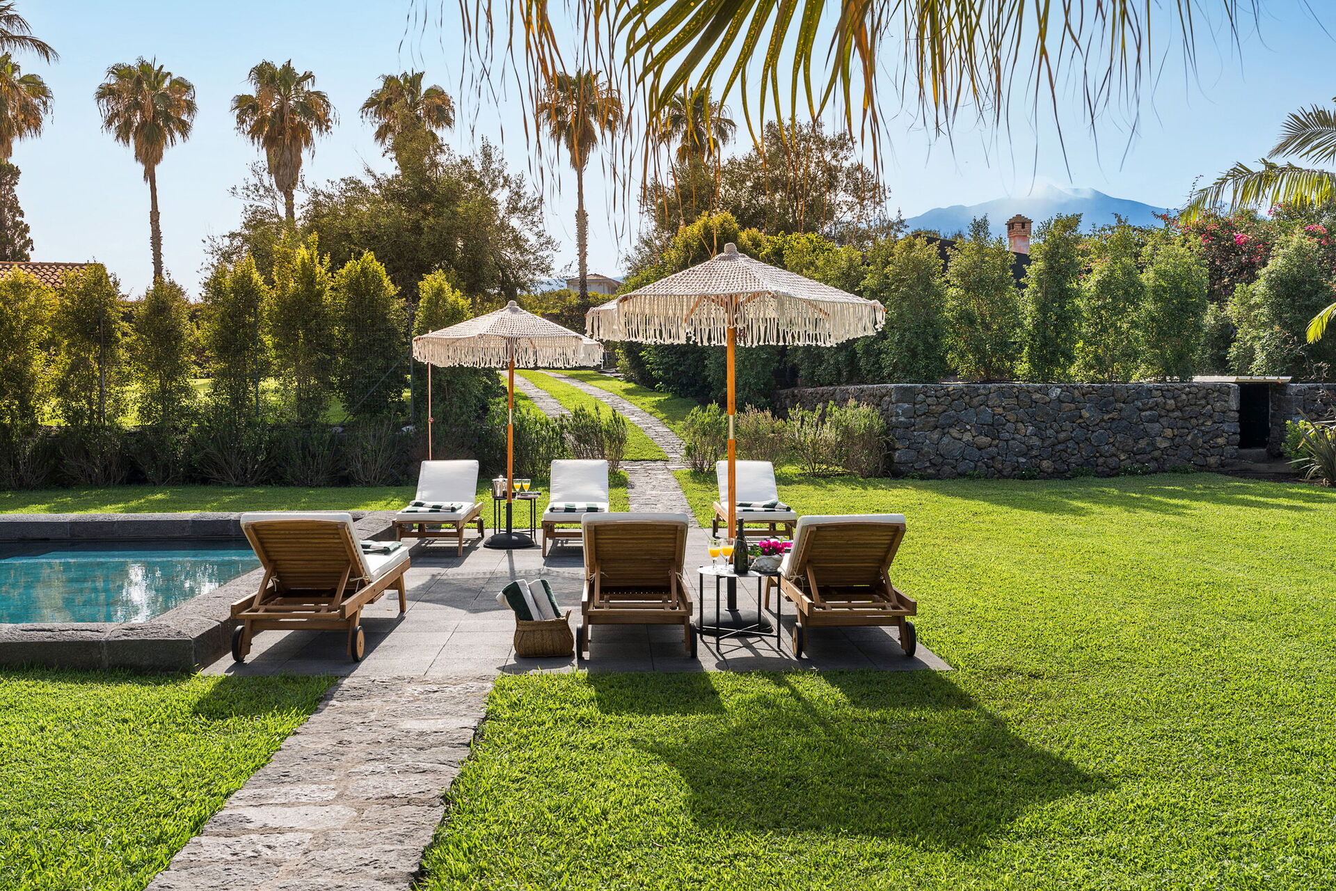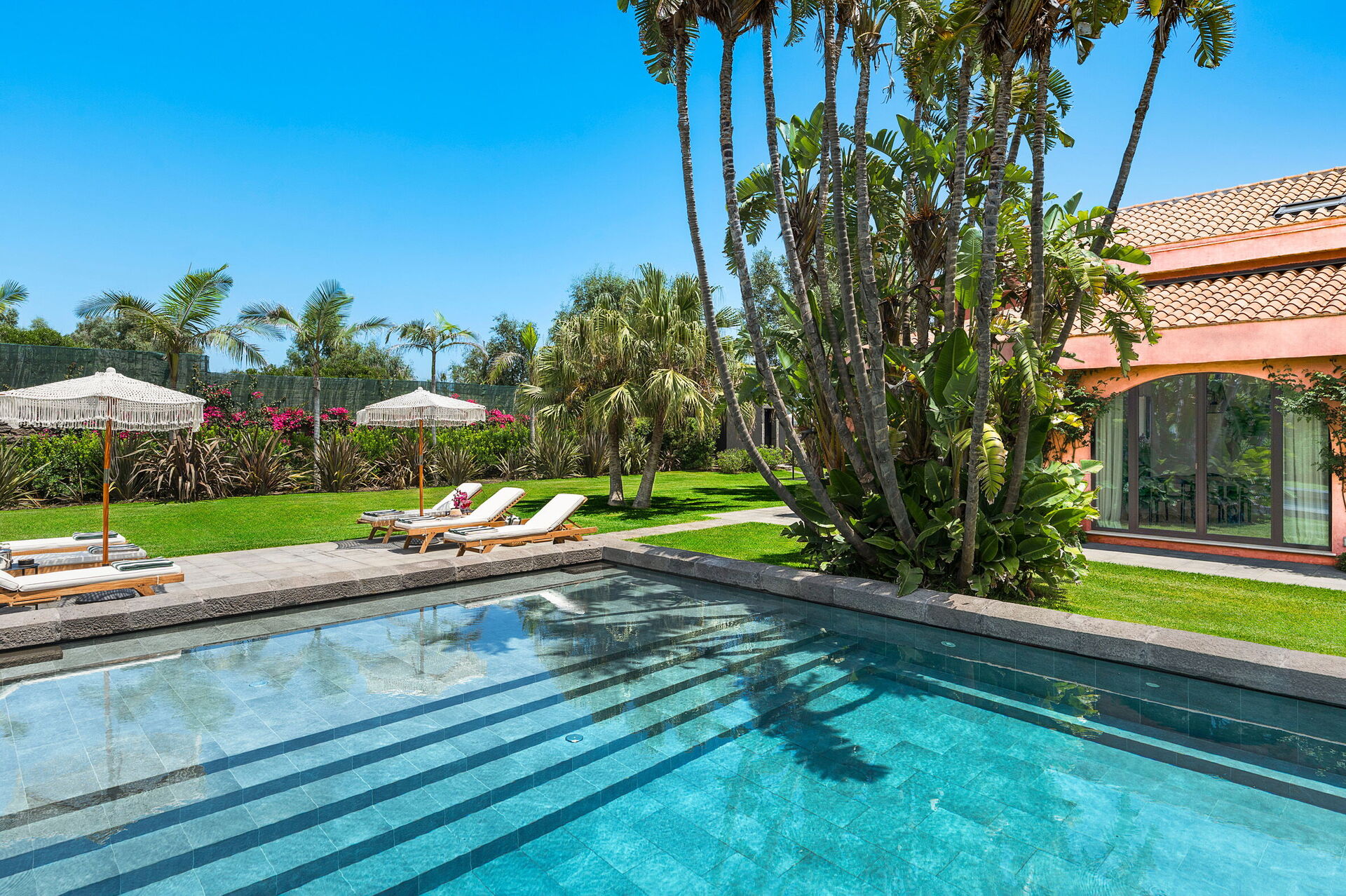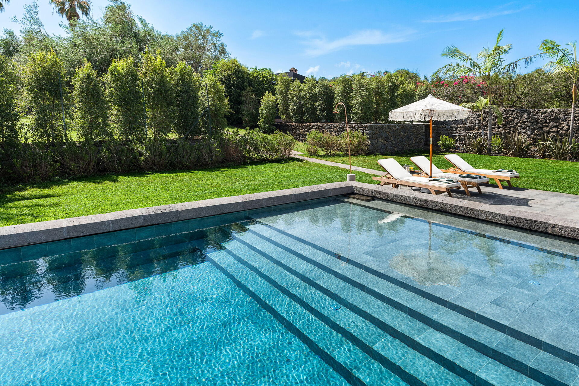 La villa, oltre ad essere circondata da ampie terrazze e da un curato giardino, ha anche un'esclusiva piscina, depurata a sale e riservata all'uso esclusivo degli ospiti.