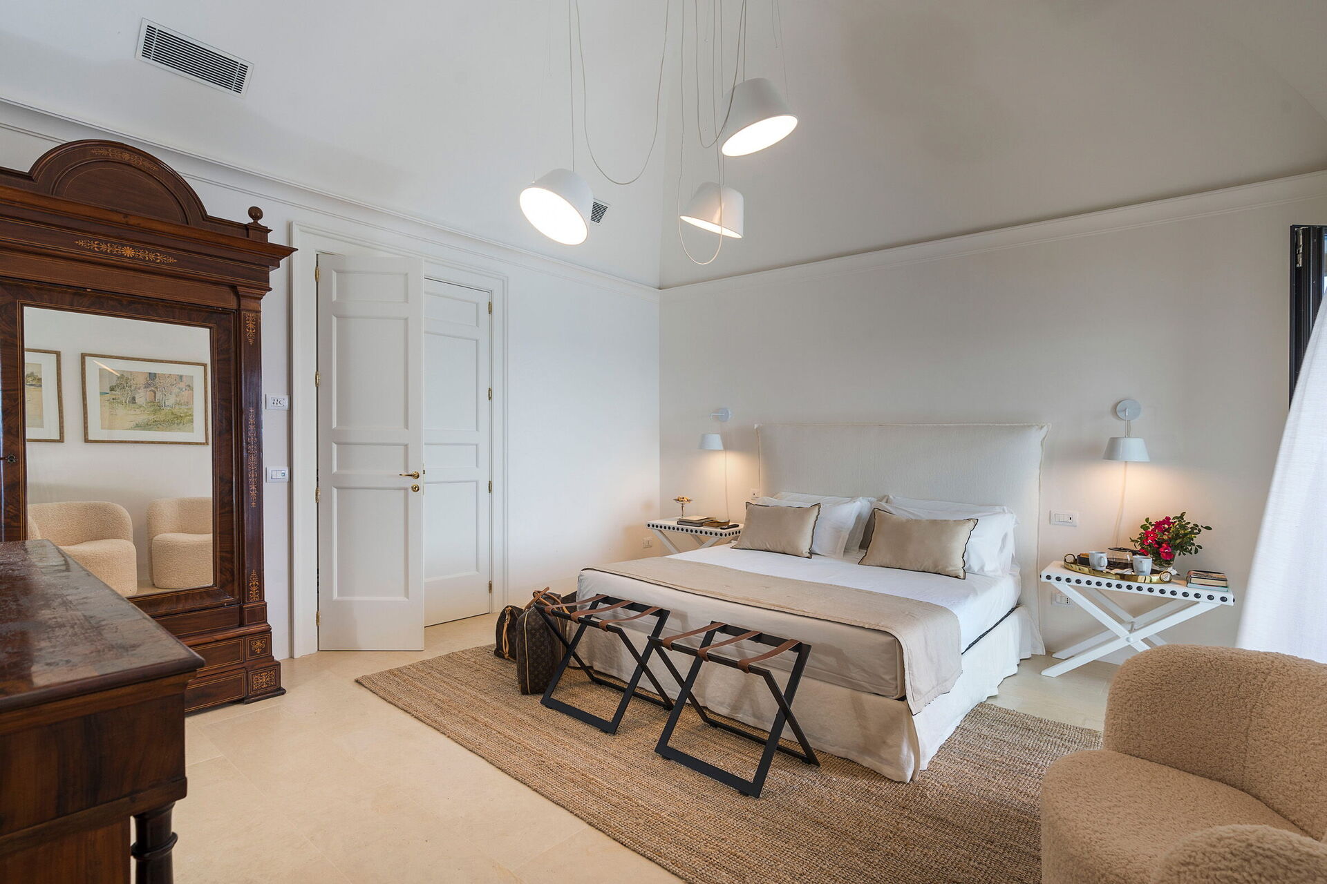 Primo piano: 3 camere matrimoniali (aria condizionata, zanzariera) ognuna con bagno privato con doccia.