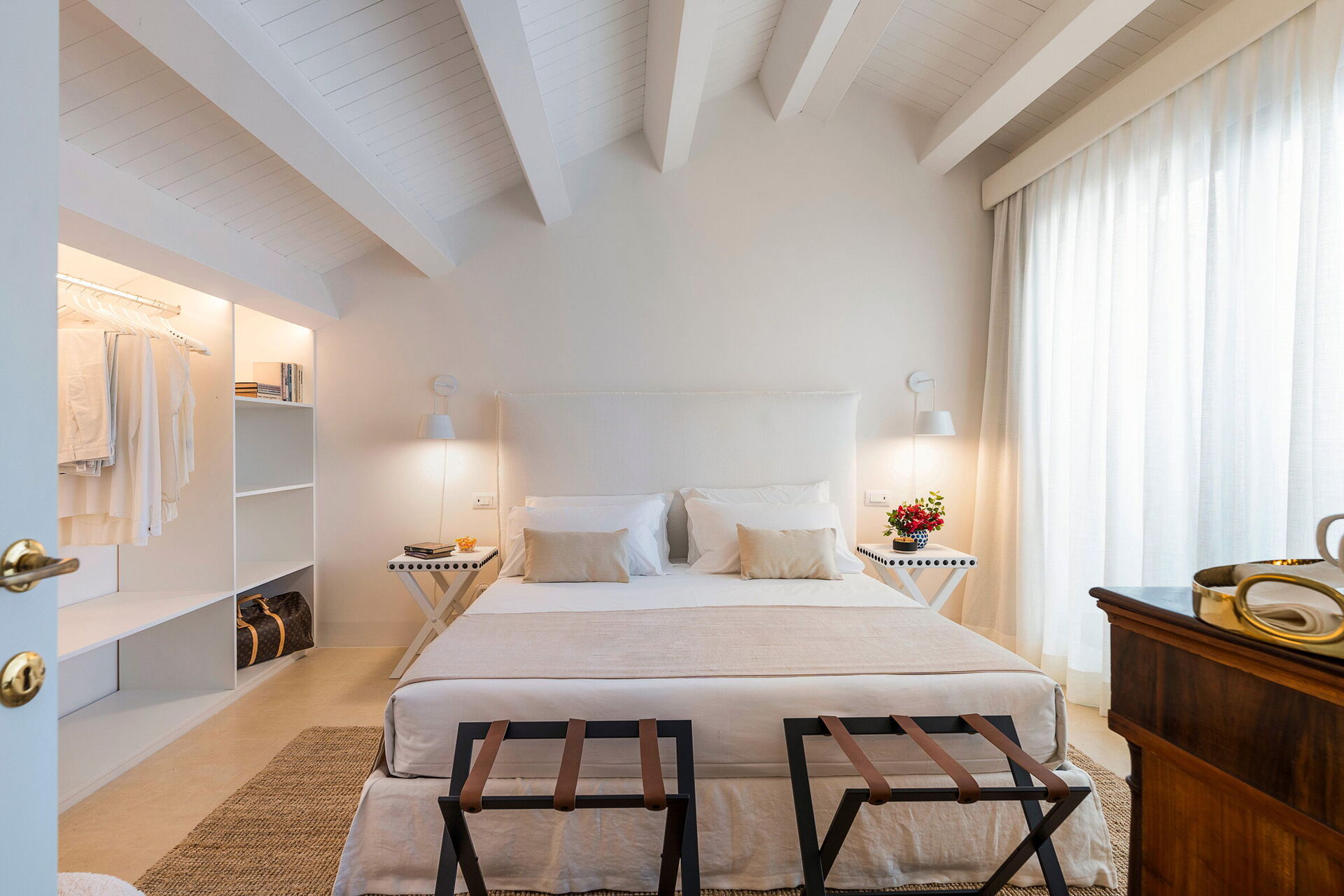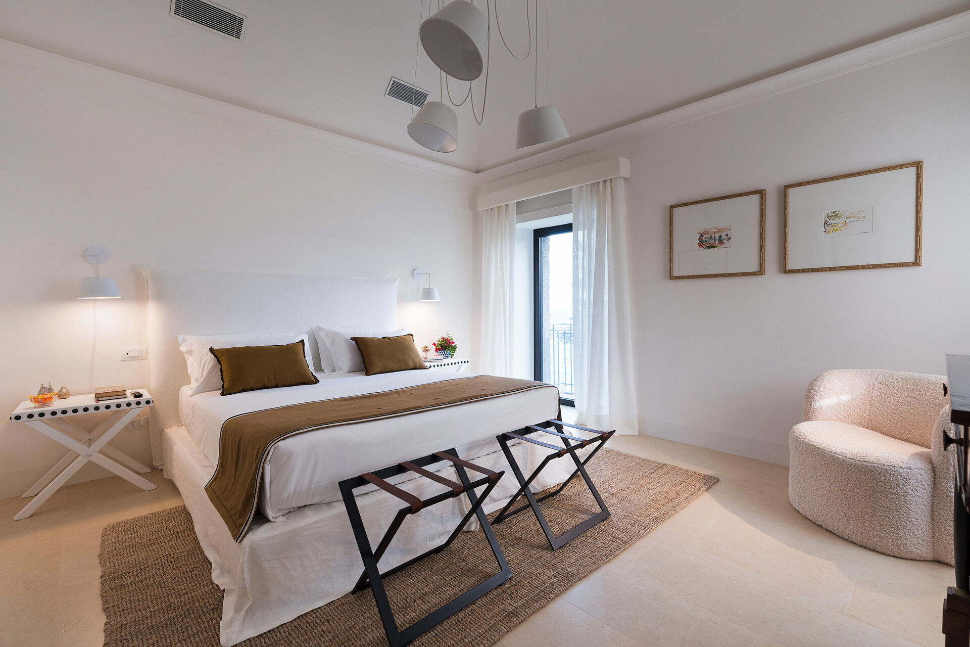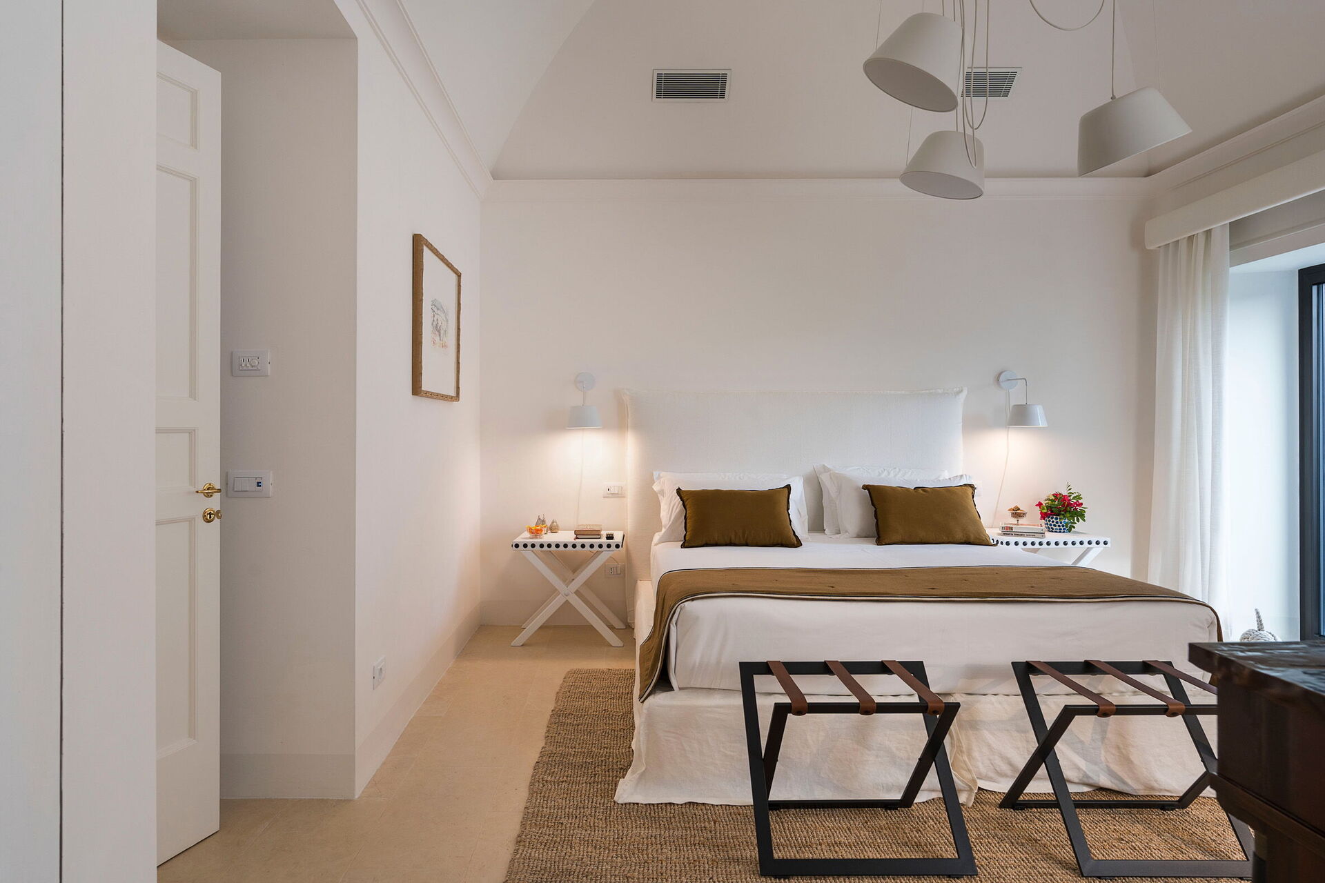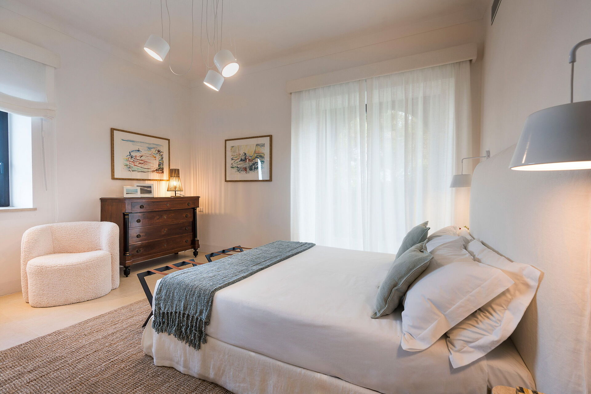 Piano terreno: ampio soggiorno (tv), sala pranzo, cucina (piano cottura, forno, frigorifero, freezer, lavastoviglie, microonde, tostapane, macchina da caffè espresso, macchina da caffè americano), lavanderia, wc, camera matrimoniale (aria condizionata, zanzariera) con bagno privato con doccia.