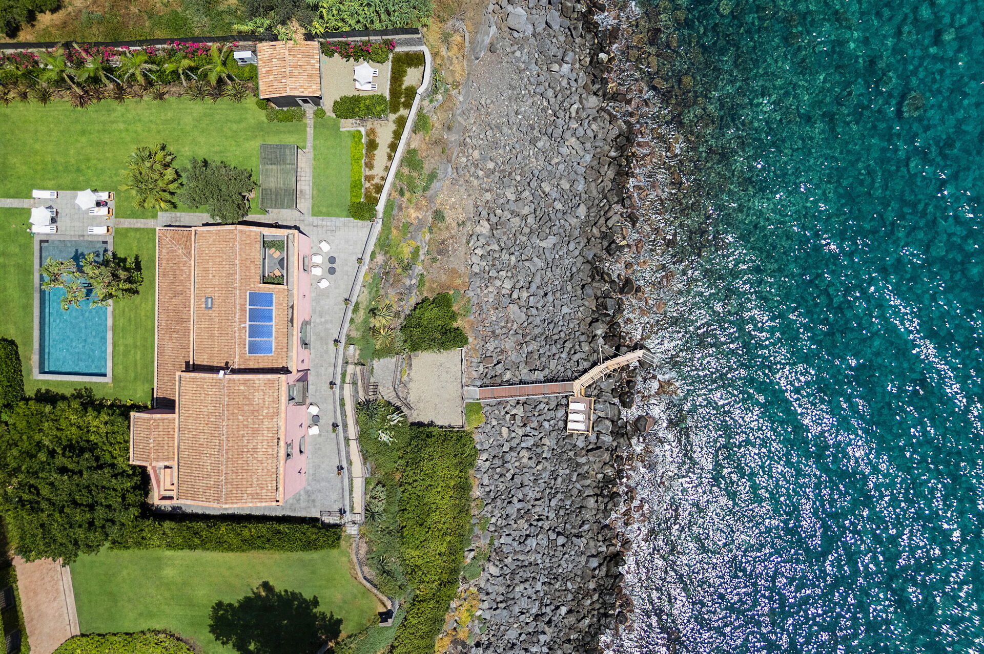 Dalla proprietà si può accedere direttamente alla scogliera di pietra lavica: il mare dista soltanto 10 metri!