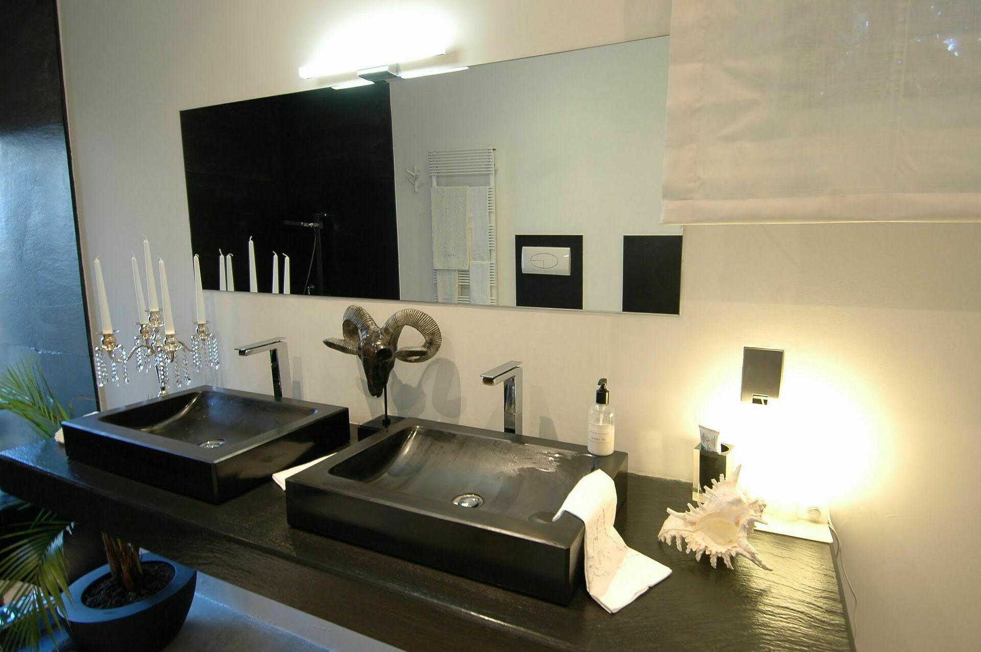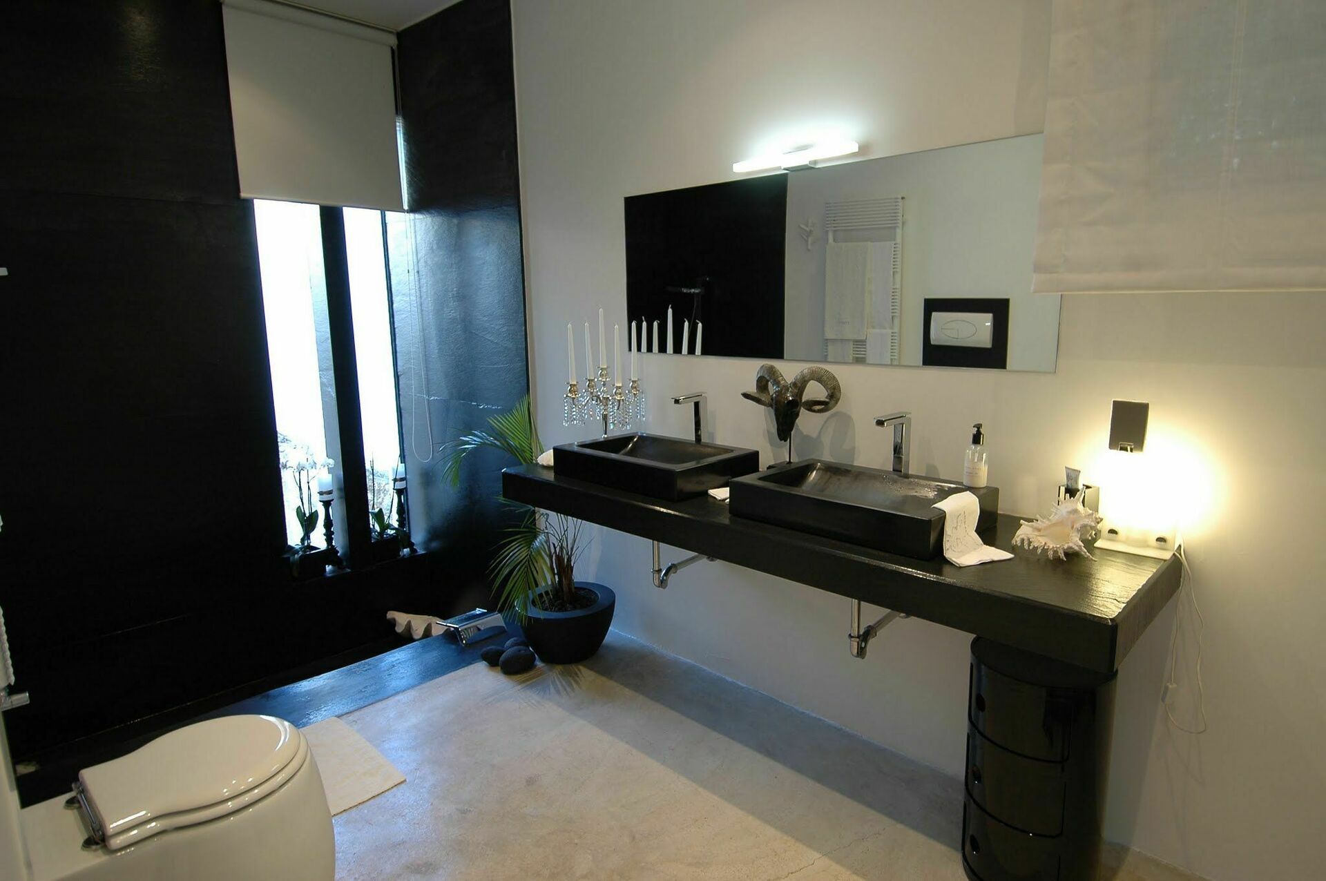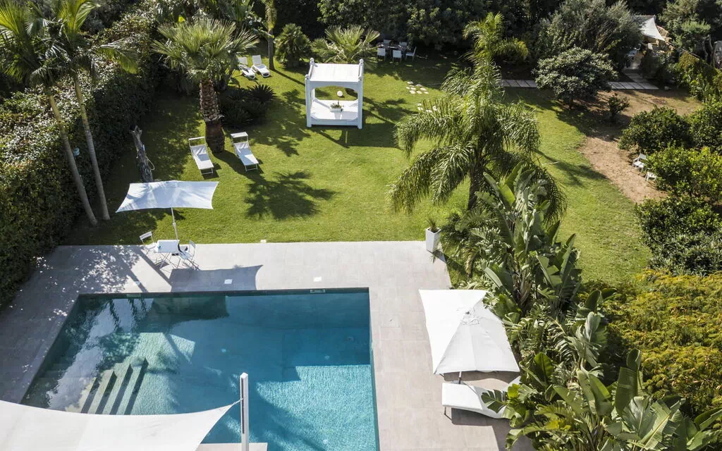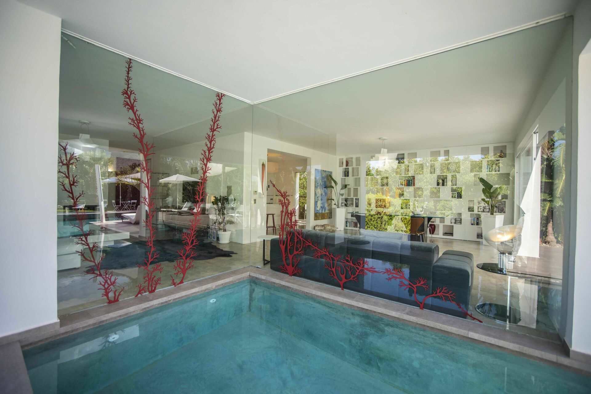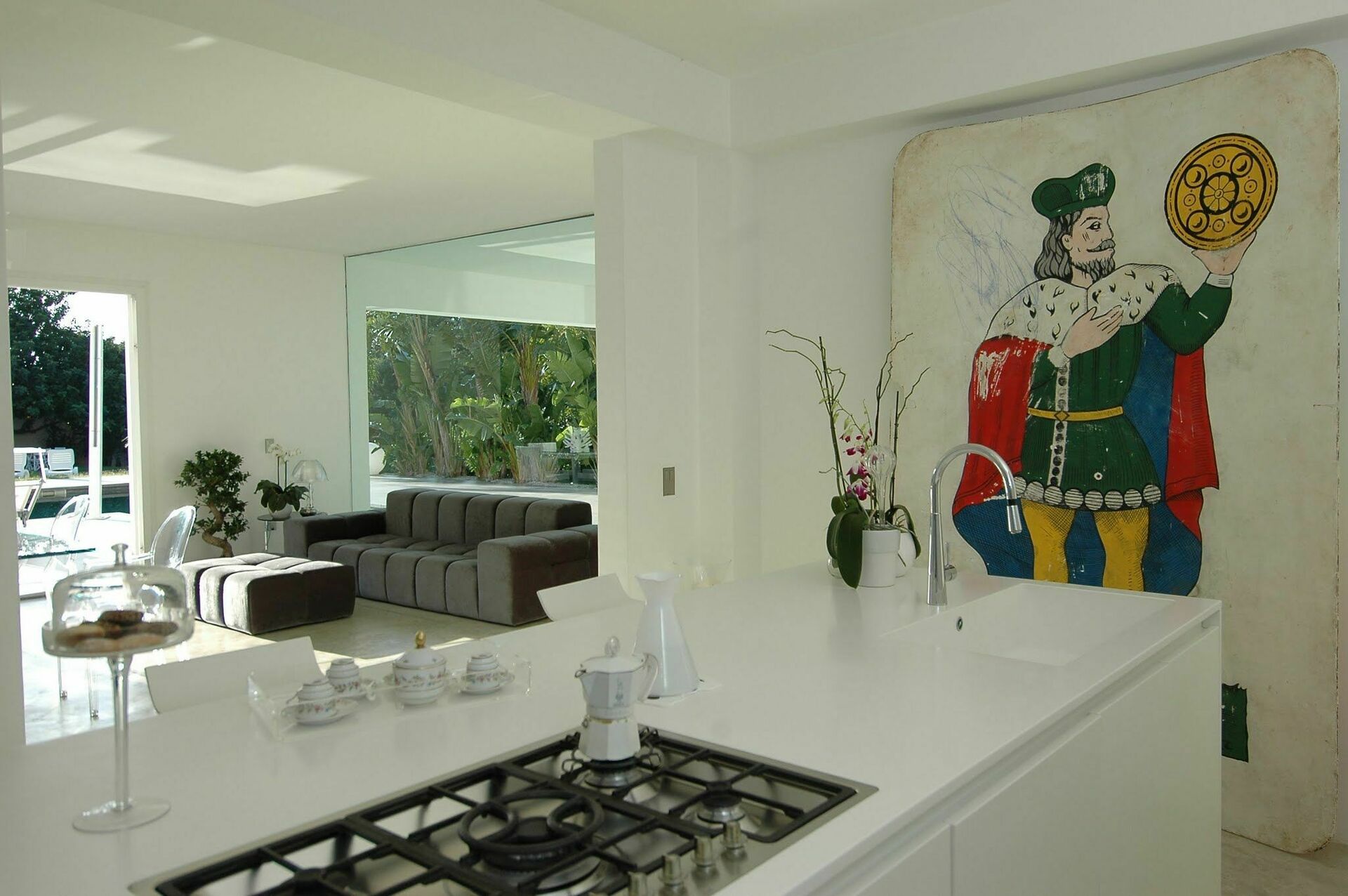 Lo stile elegante della villa in affitto si evince anche nei dettagli, nei pezzi d’arte disposti con cura per enfatizzare l’impatto decorativo e nei mobili di design.