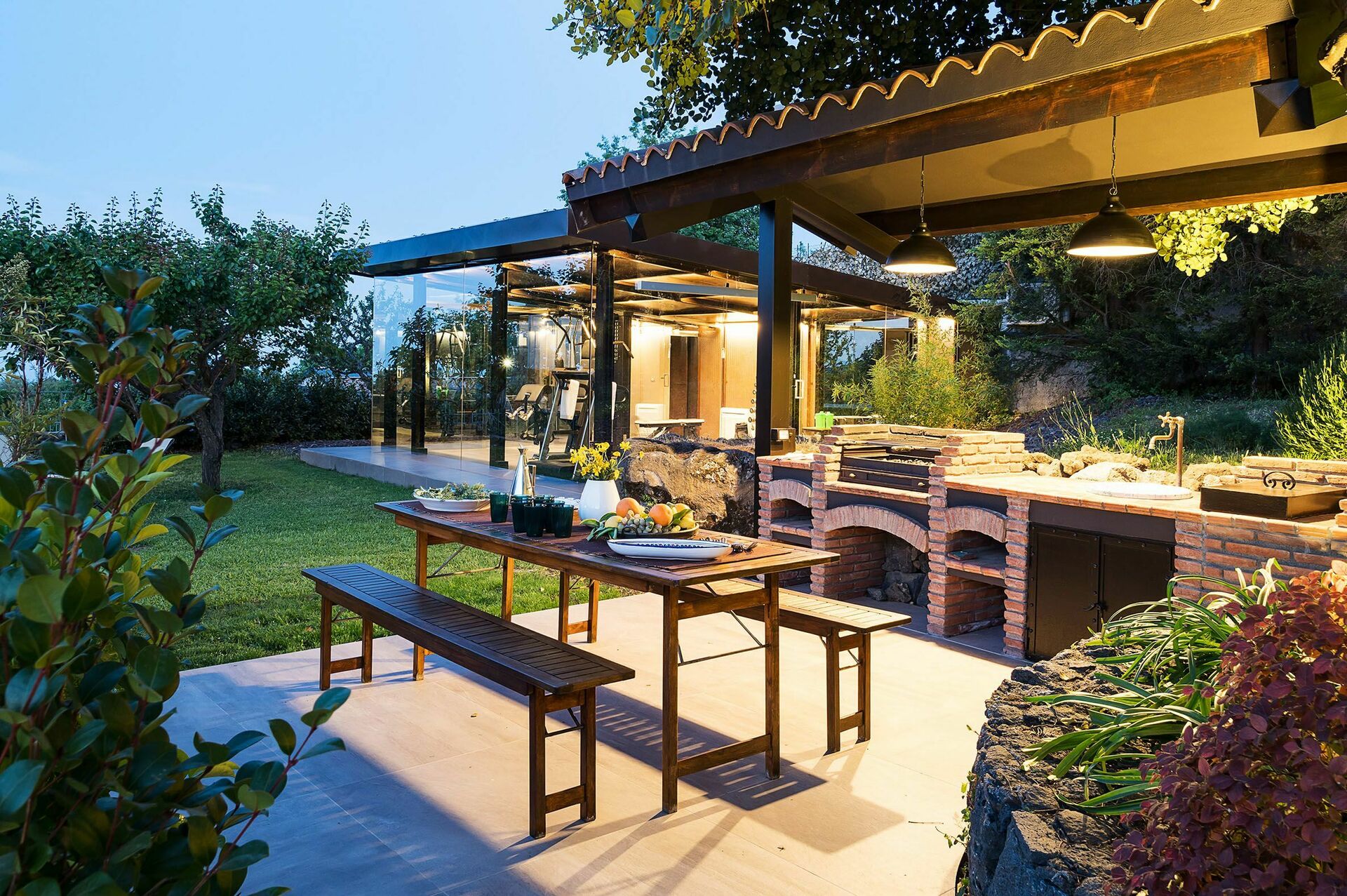 Questa meravigliosa residenza offre comfort assoluto in ambienti raffinati ed eleganti arredati con particolare cura. Caratterizzata da un'architettura moderna sfalsata su due livelli verso il basso, Viagrande ospita al piano terra una calda ed accogliente zona giorno composta da salotto, sala da pranzo e da una ben accessoriata cucina in muratura. Dalla sala un ampio scalone conduce alla zona notte, dove tra tessuti pregiati e moderni pezzi di design si aprono tre splendide camere da letto con bagno privato, una camera di passaggio con divano letto ed un luminoso soggiorno.