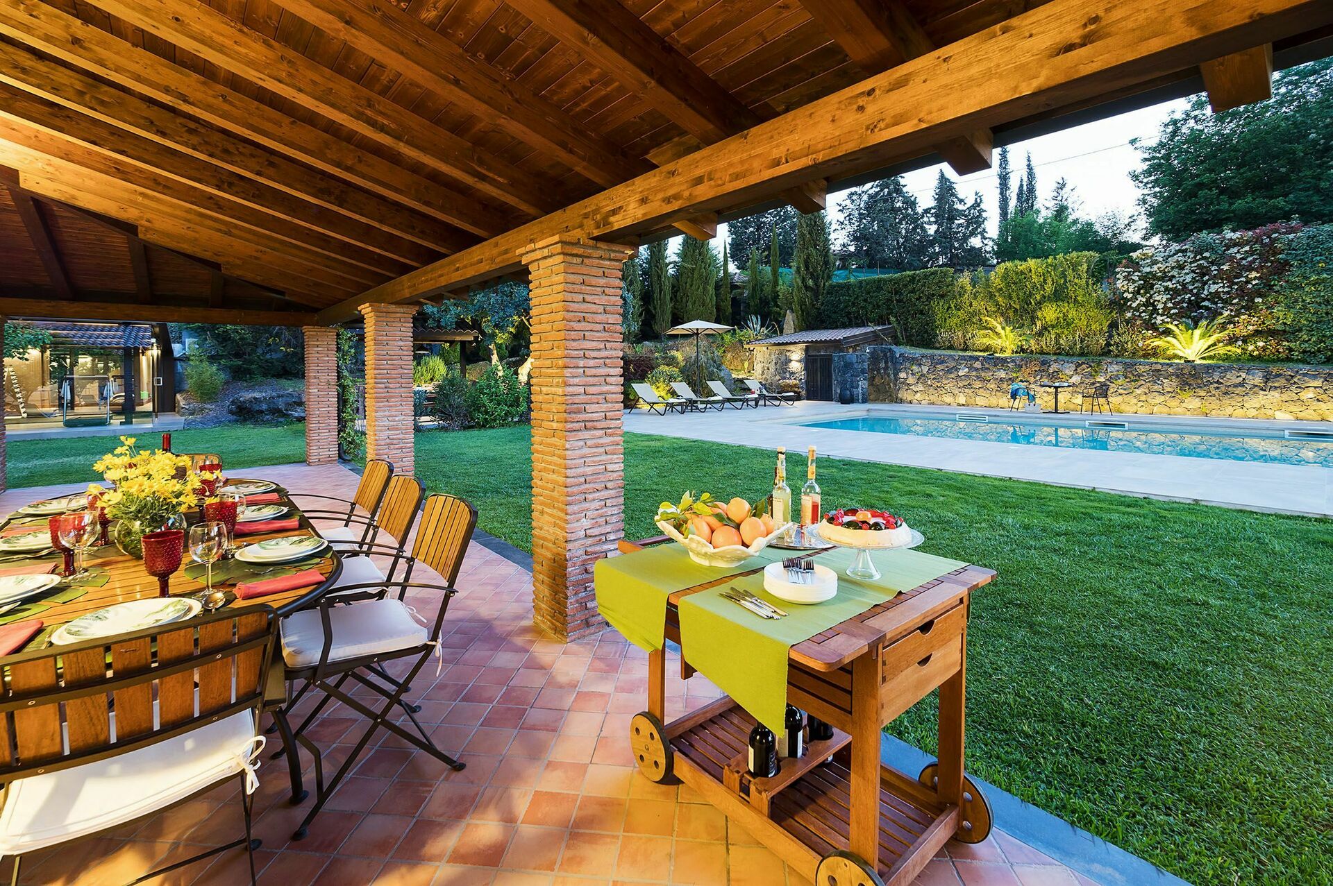 Agli spaziosi e confortevoli ambienti interni si uniscono una ben attrezzata terrazza coperta, un ampio giardino con prato inglese ed una bella piscina con terrazza solarium, perfetti per trascorrere all'aria aperta piacevolissimi momenti di relax.