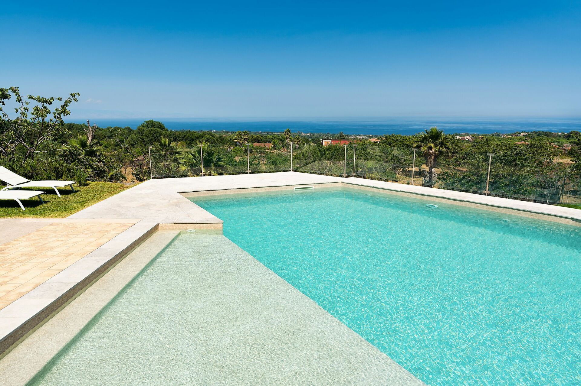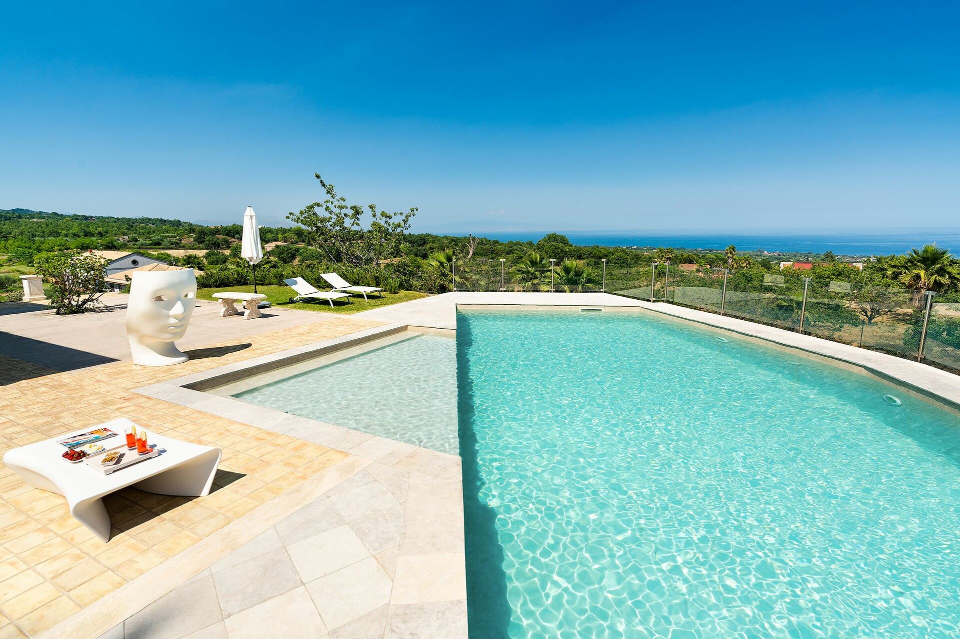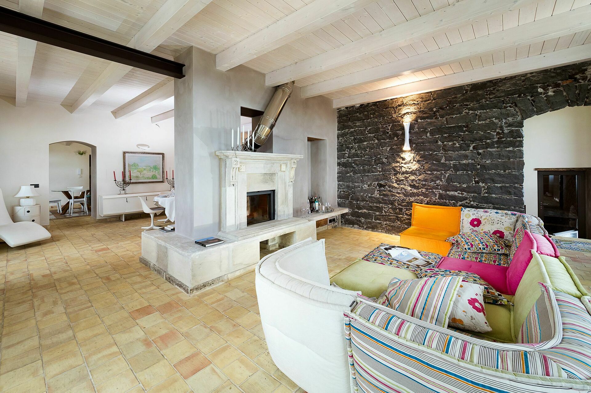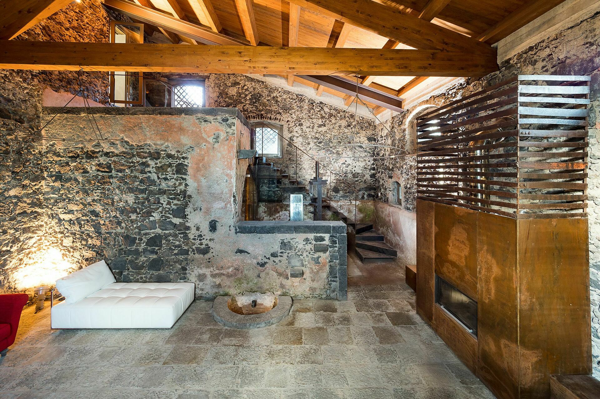Immerso nel caratteristico paesaggio etneo, profilato da vigneti, frutteti e muretti a secco, il casale vanta una scenografica piscina panoramica, depurata al sale, ampie e ben attrezzate terrazze, un curato giardino ricco di piante aromatiche ed una straordinaria zona benessere con vasca idromassaggio, bagno turco, sauna, doccia emozionale e grotta del sale.