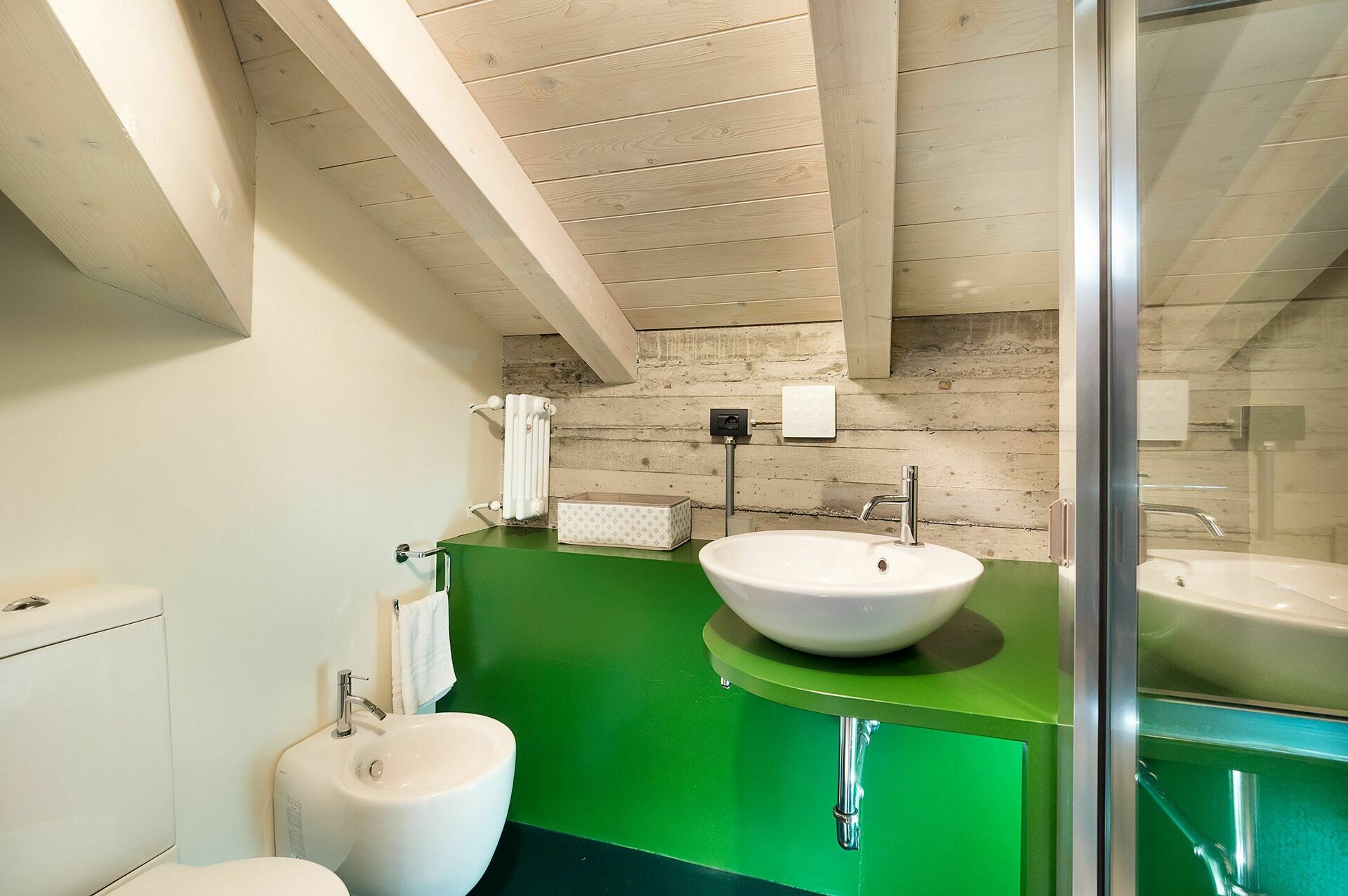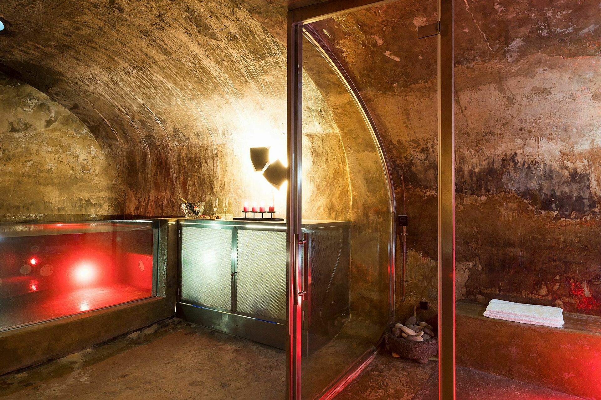 Al piano inferiore: zona benessere con vasca idromassaggio, grotta del sale, sauna, bagno turco, doccia emozionale, area relax
