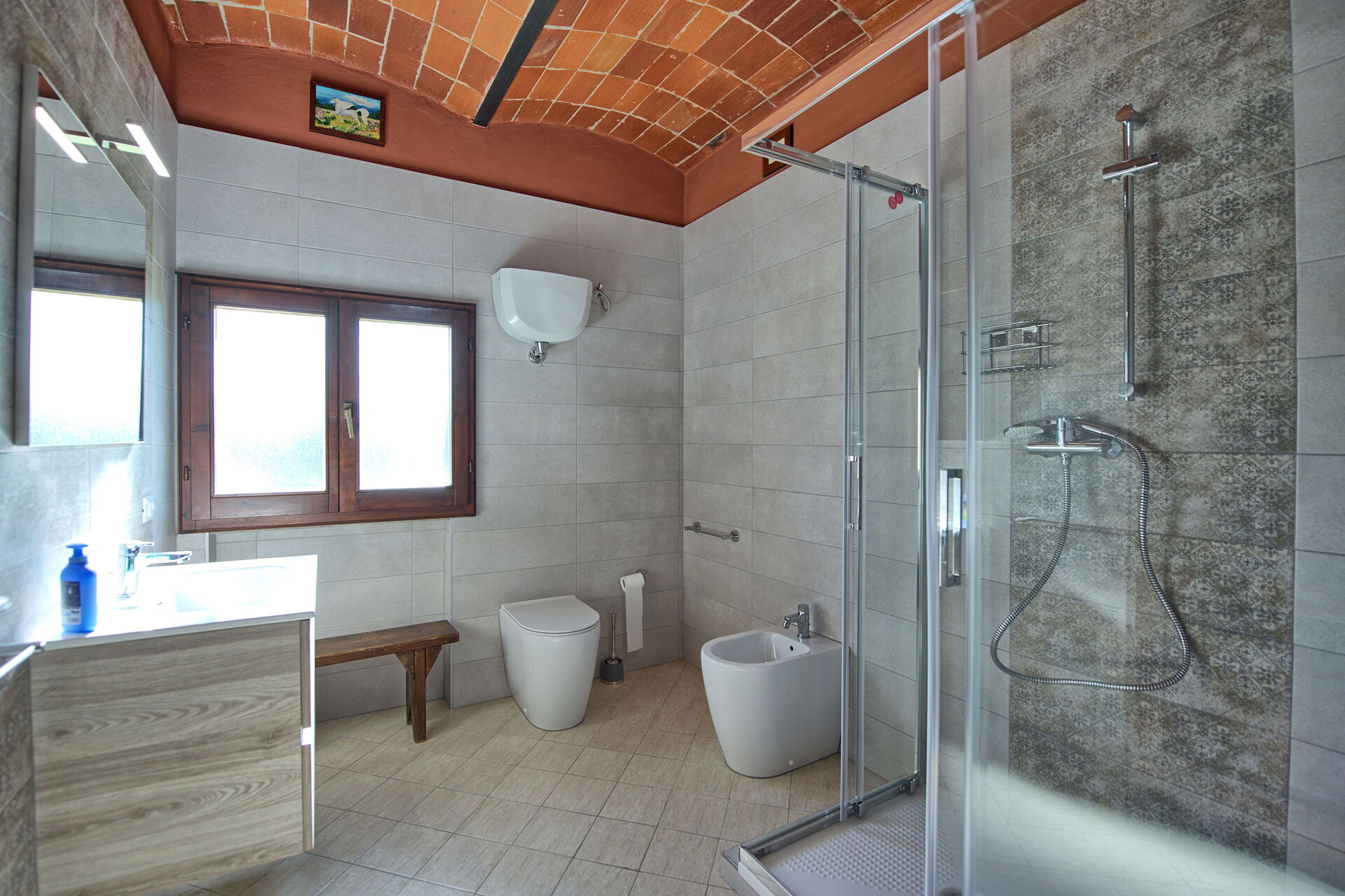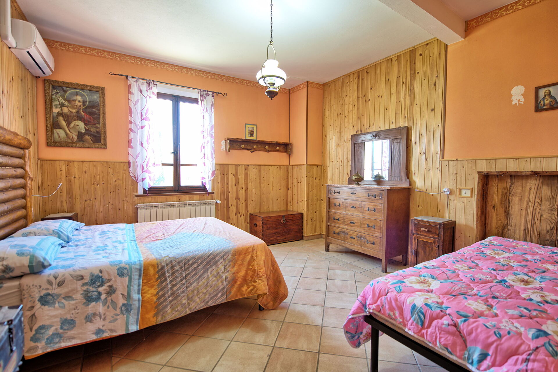 We had a super stay at Villa Mario, as the weather was very hot and the pool was perfect. The house accommodated all 13 of us, 6 adults and 7 children. The house is rustic so has character but it lacks certain things to make a holiday more comfortable, such as cushions outside on any of the chairs. Inside, there was no kettle, a very small toaster, a lack of bowls, only huge pans, and not many bowls. The bedrooms were spacious but no fans so very hot to sleep. The apartment with one double bed in has air con but that is it.