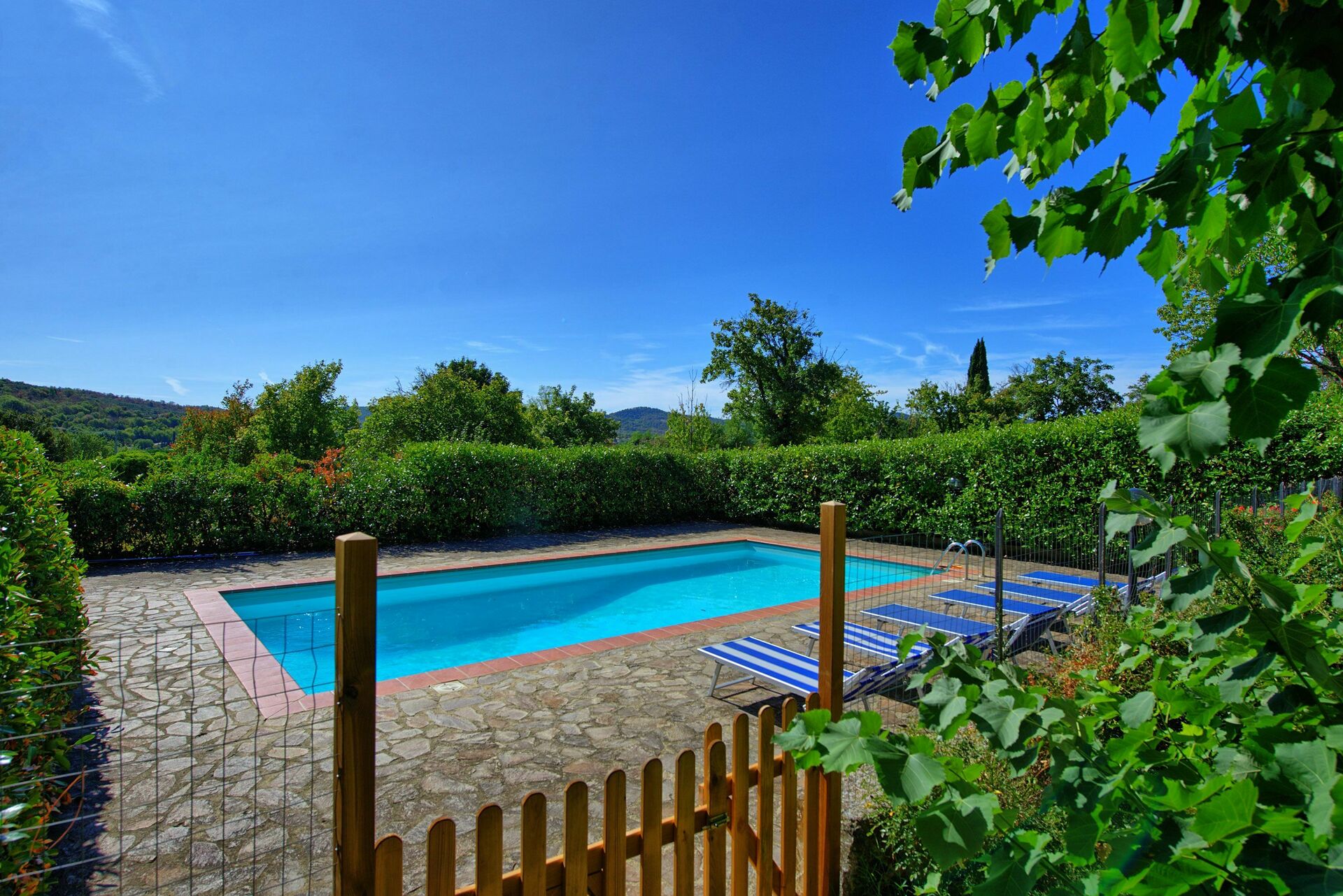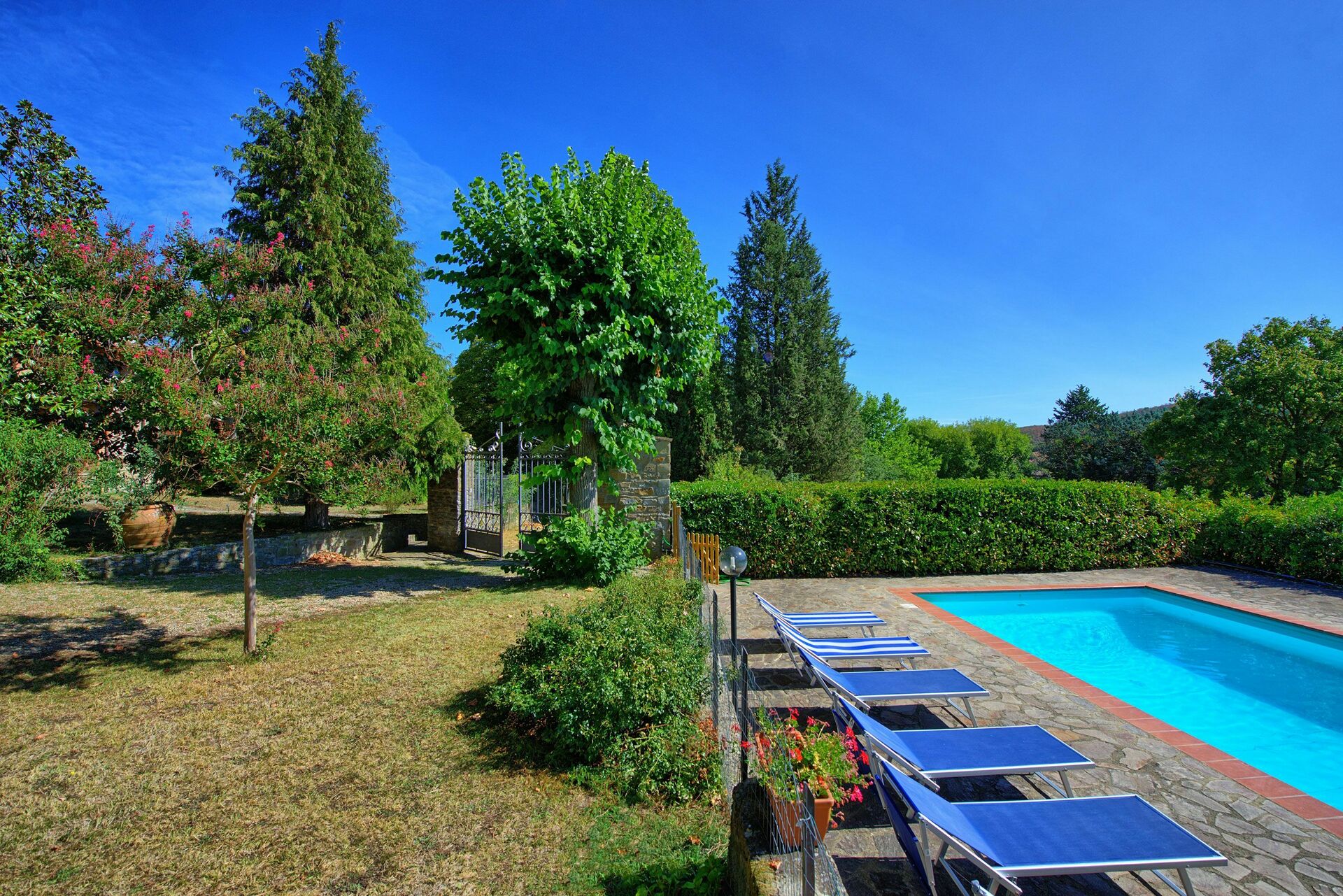 All'esterno, la casa è circondata da un bel parco recintato, che ospita un cortile e un'area pranzo con tavoli, sedie, panchine e un barbecue, perfetto per organizzare gustose grigliate e per mangiare all'aperto, godendosi il meraviglioso paesaggio del Chianti. La zona della piscina, ad uso esclusivo degli ospiti, è dotata di solarium con lettini ed è il luogo ideale dove trascorrere piacevoli momenti di relax e in cui rinfrescarsi durante le calde giornate estive sotto il sole della Toscana in compagnia della propria famiglia o di un gruppo di amici.