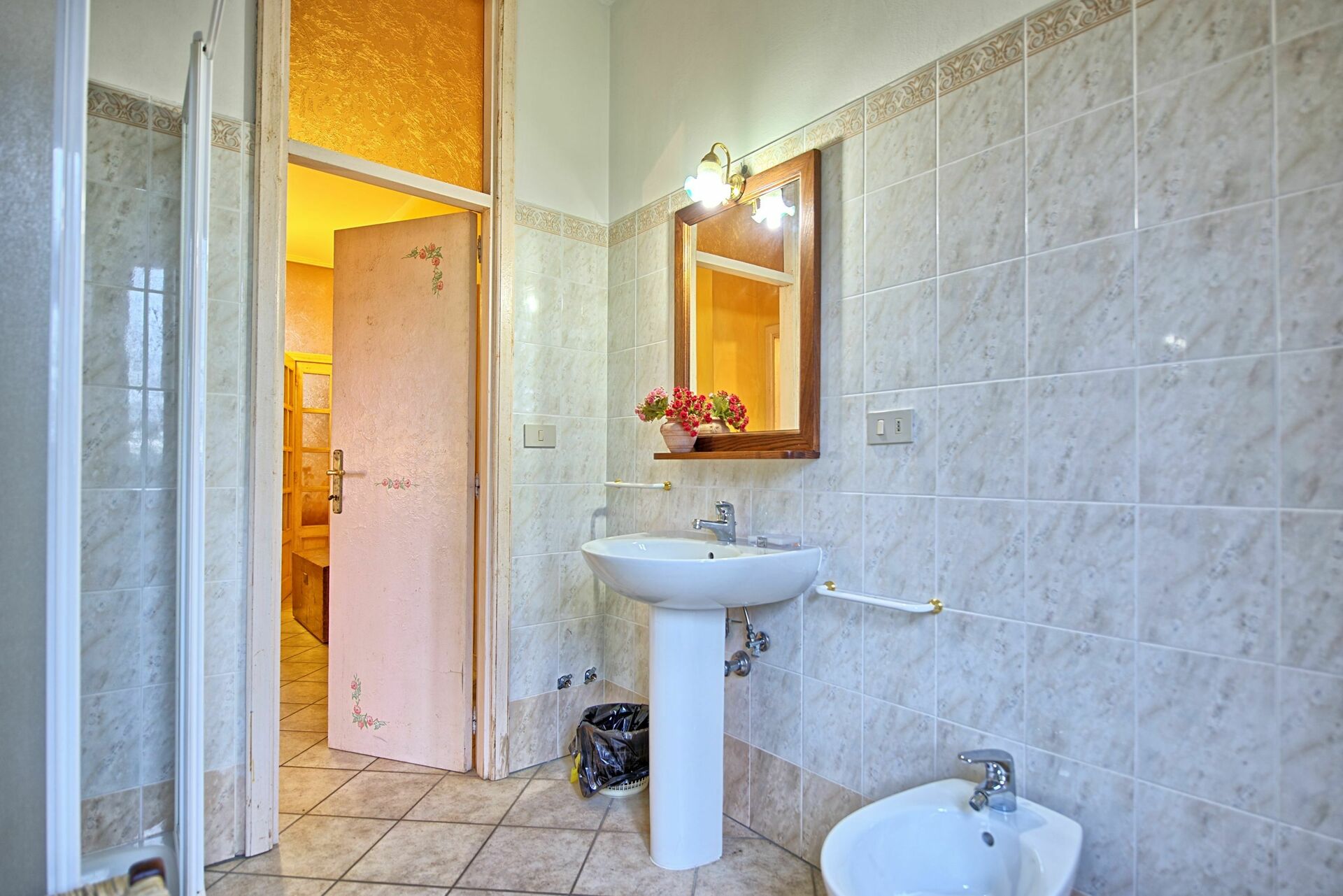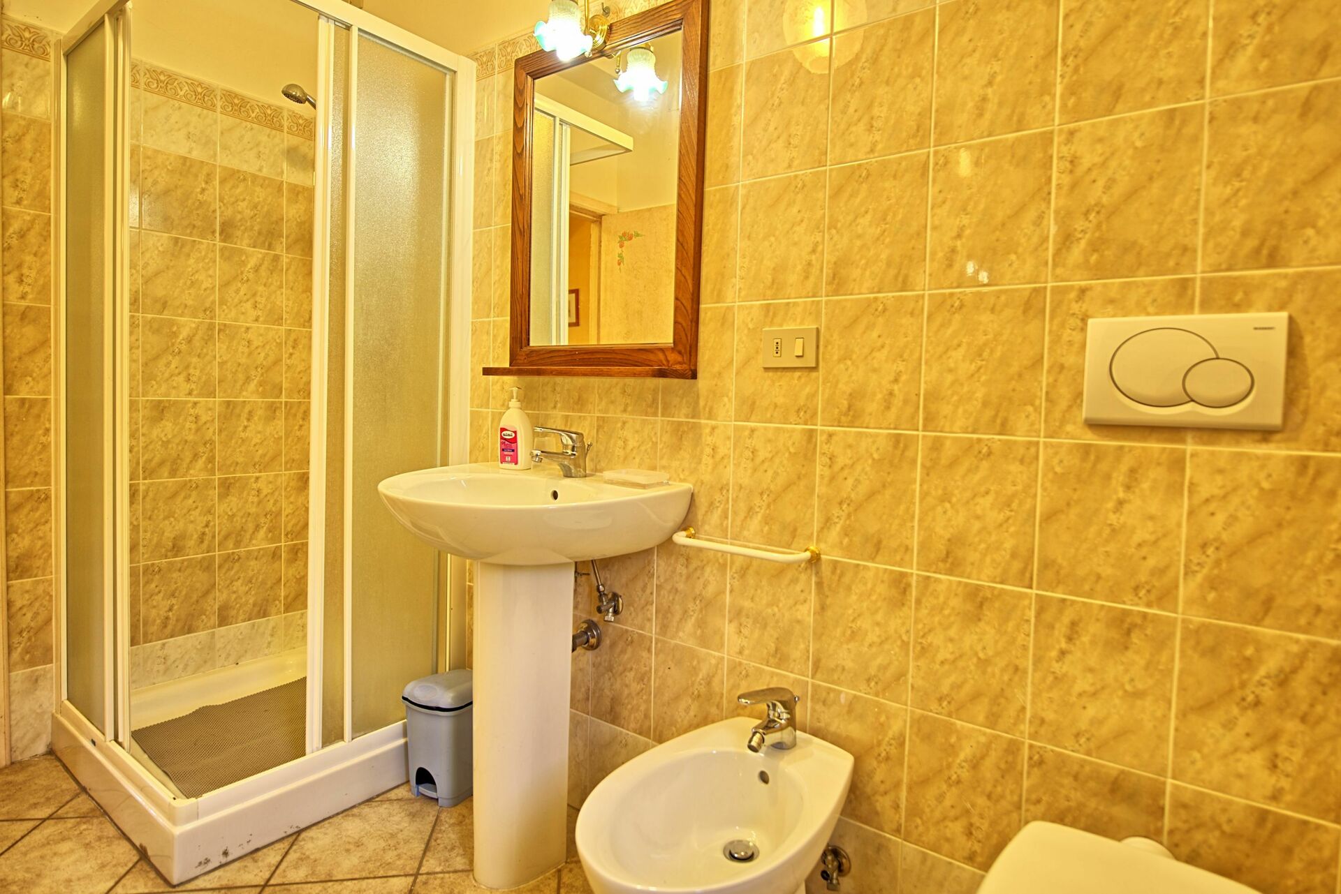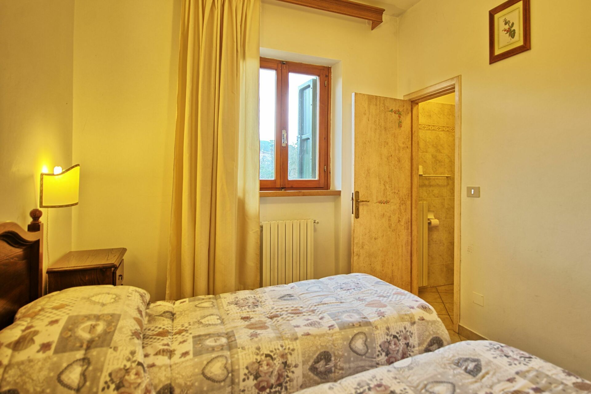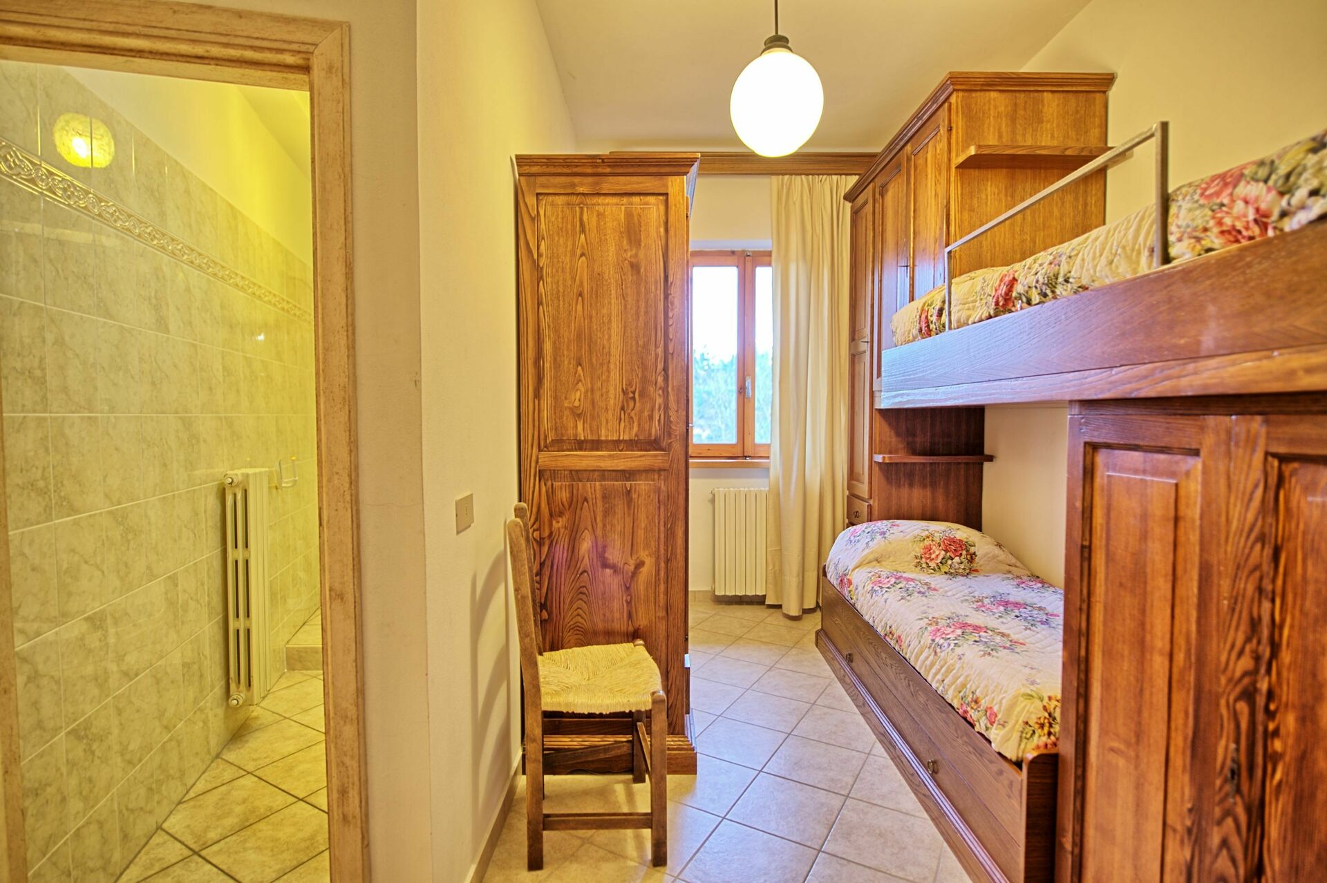 1° Piano: 2 camere matrimoniali, bagno con doccia, camera con 2 letti singoli e bagno privato con doccia, 2 camere matrimoniali entrambe con bagno privato con doccia, camera matrimoniale con bagno privato con doccia e comunicante con una camera con letto a castello, 2 camere matrimoniali, camera con 2 letti singoli, 2 bagni con doccia.