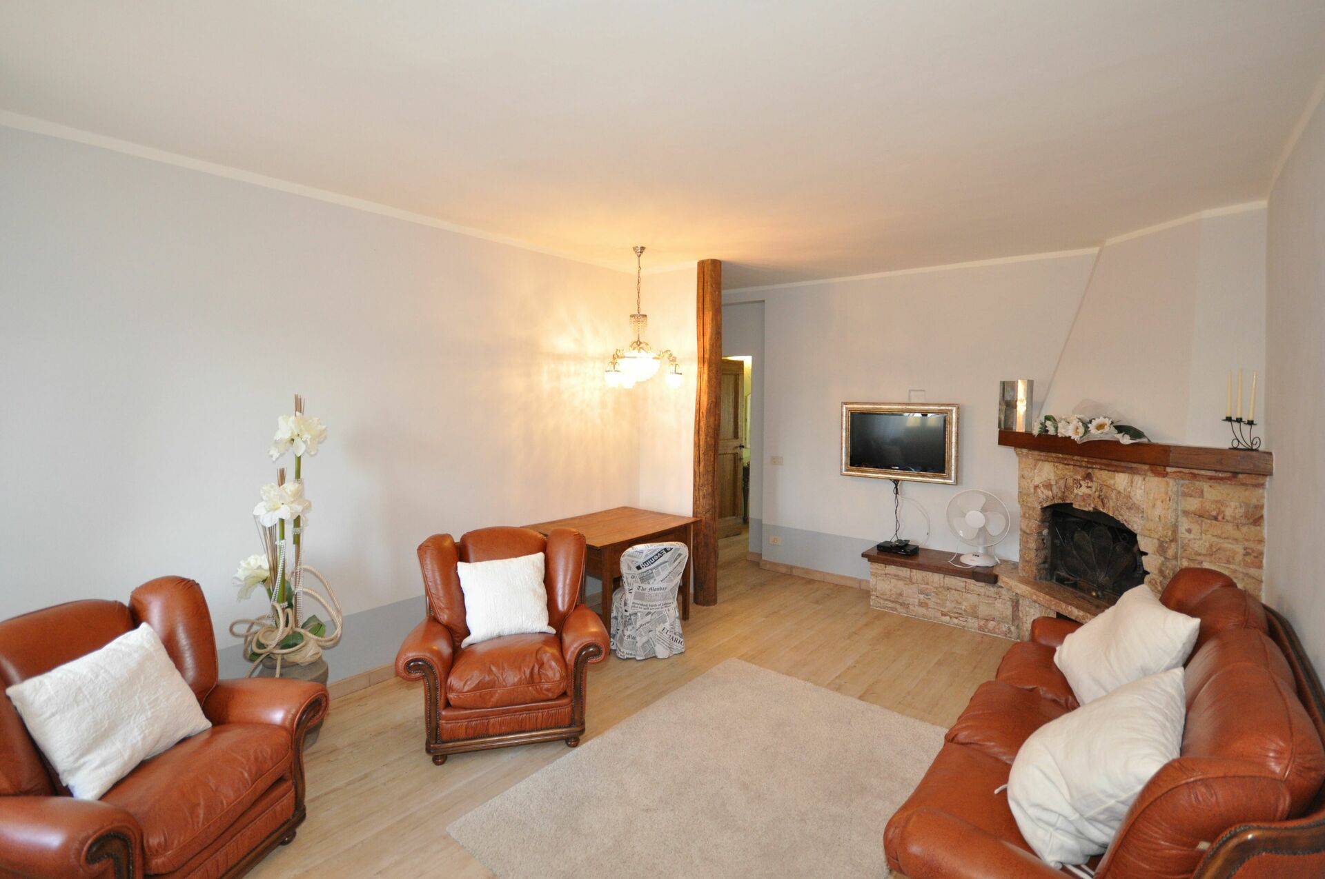 1° Piano: ingresso su sala da pranzo, cucina (forno, freezer, lavastoviglie, macchina da caffè americano, tostapane), soggiorno (TV satellitare) con camino, 2 camere matrimoniali entrambe con bagno privato con doccia, camera matrimoniale con bagno privato con doccia idromassaggio.