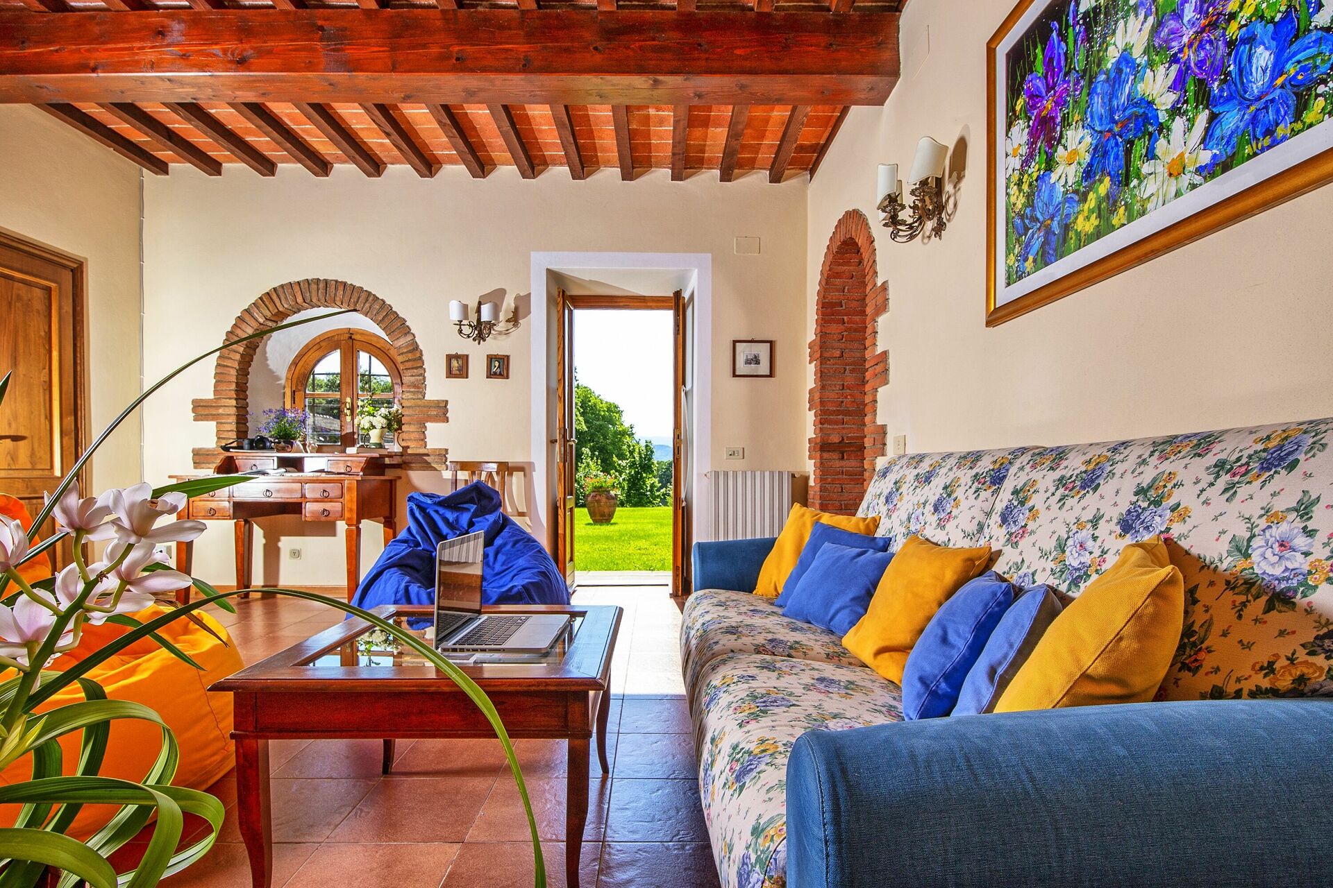 I due ampi soggiorni sono stati restaurati nel rispetto della tipica tradizione rurale toscana con pietra viva, mattoni a vista, soffitti con travi e mezzane.