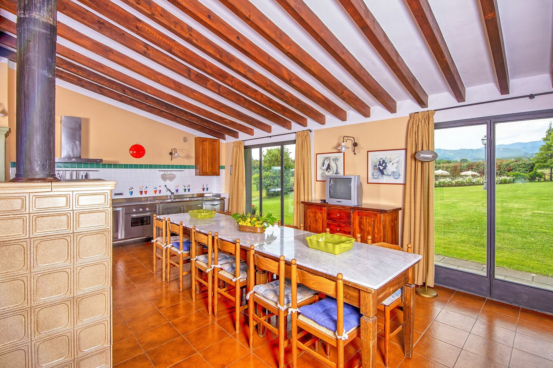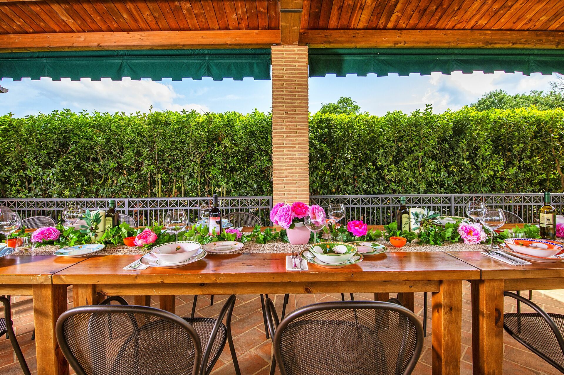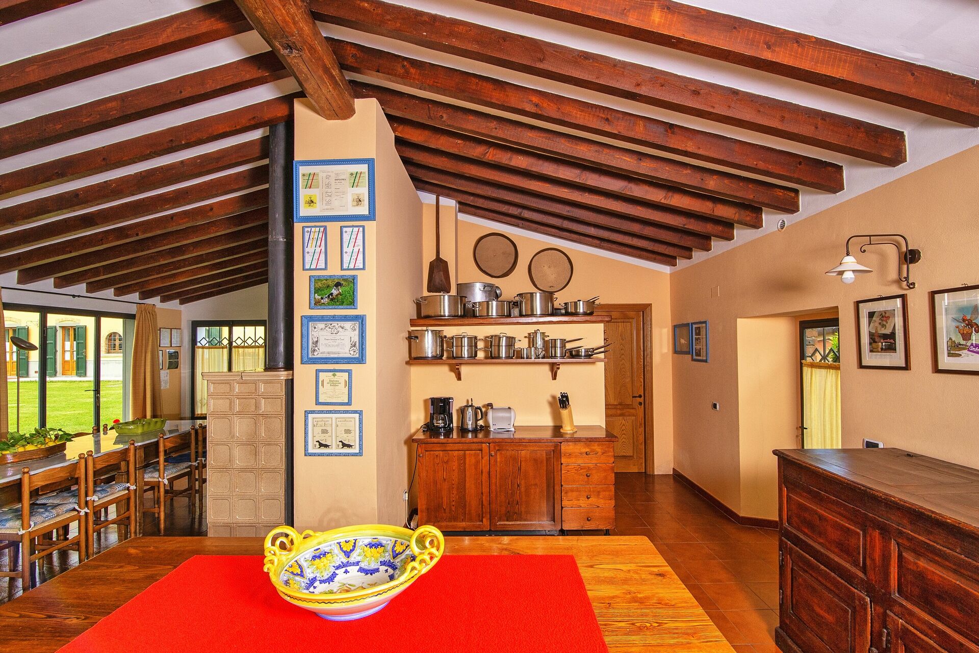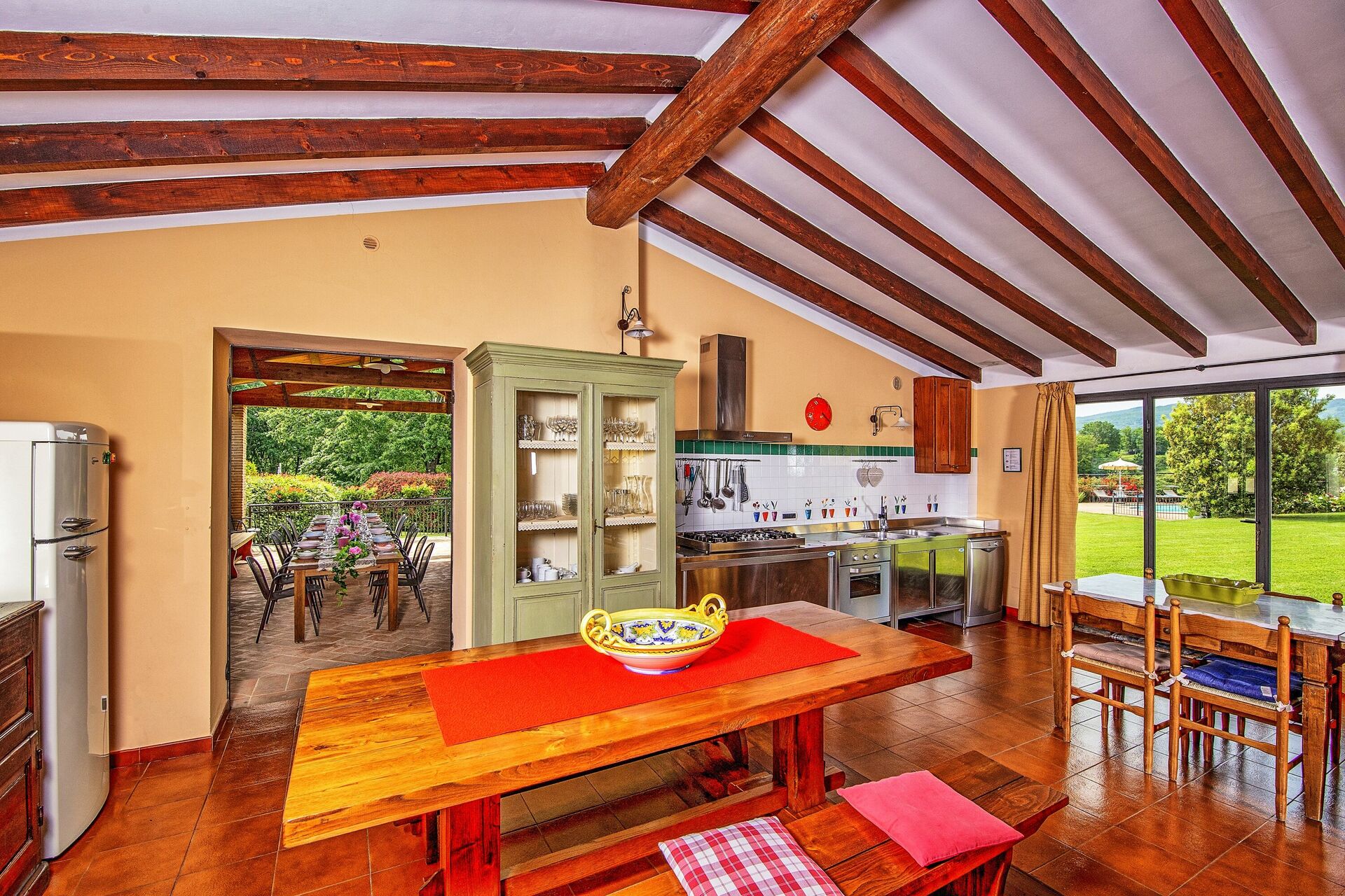 Caratteristica è anche la dependance che si trova di fronte alla piscina, dove troverete un'ampia sala da pranzo con cucina completamente attrezzata con forno a legna per la pizza, una terrazza coperta con barbecue, luogo ideale per preparare i pasti e mangiare tutti insieme all'aperto.