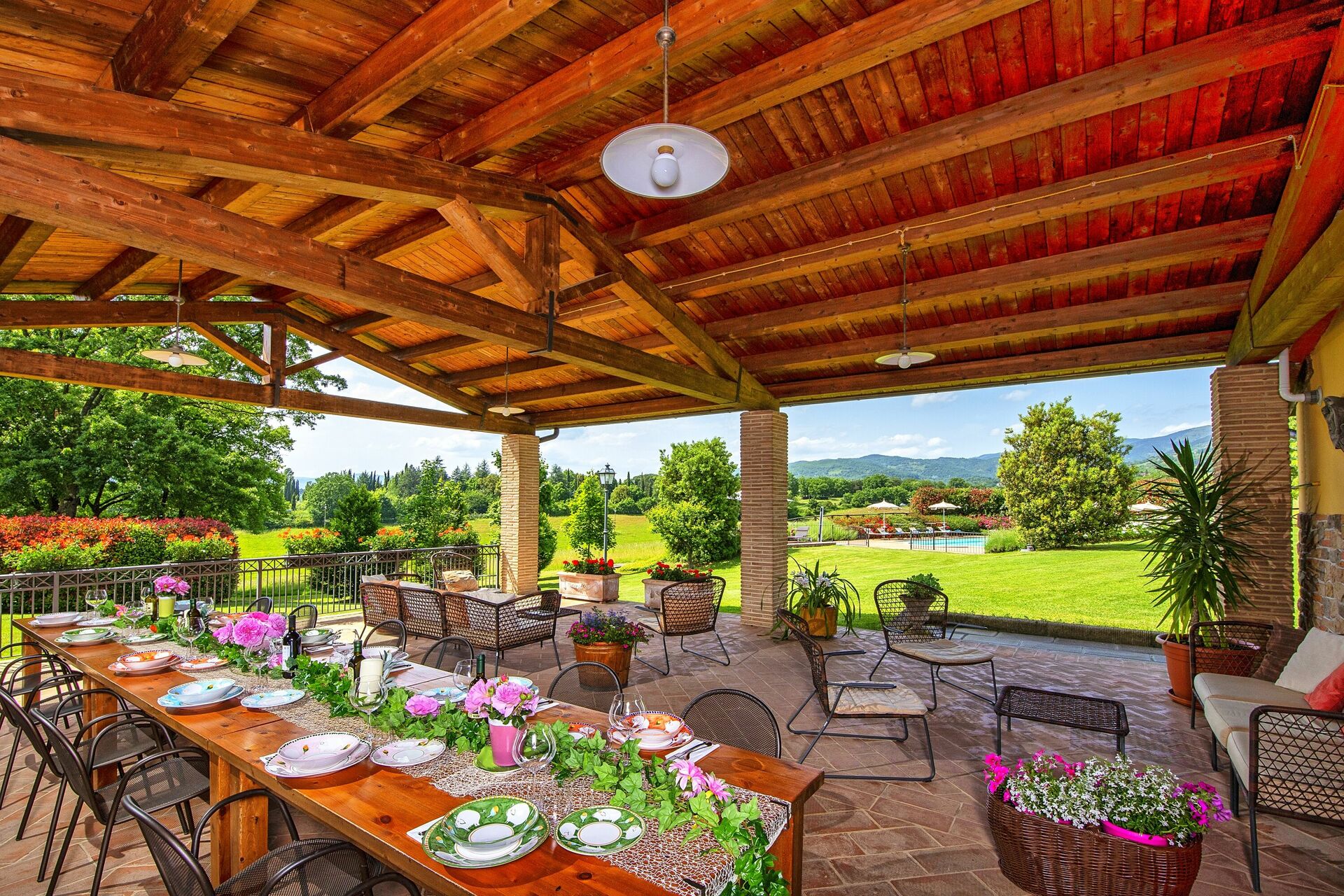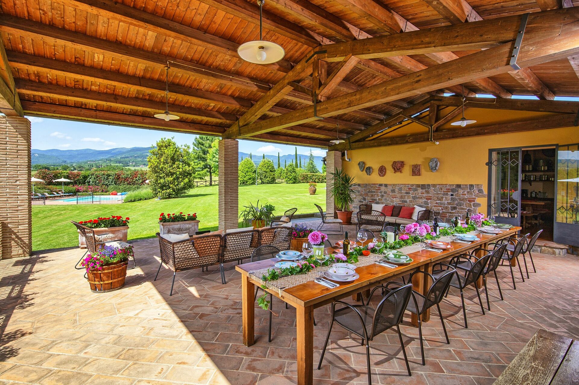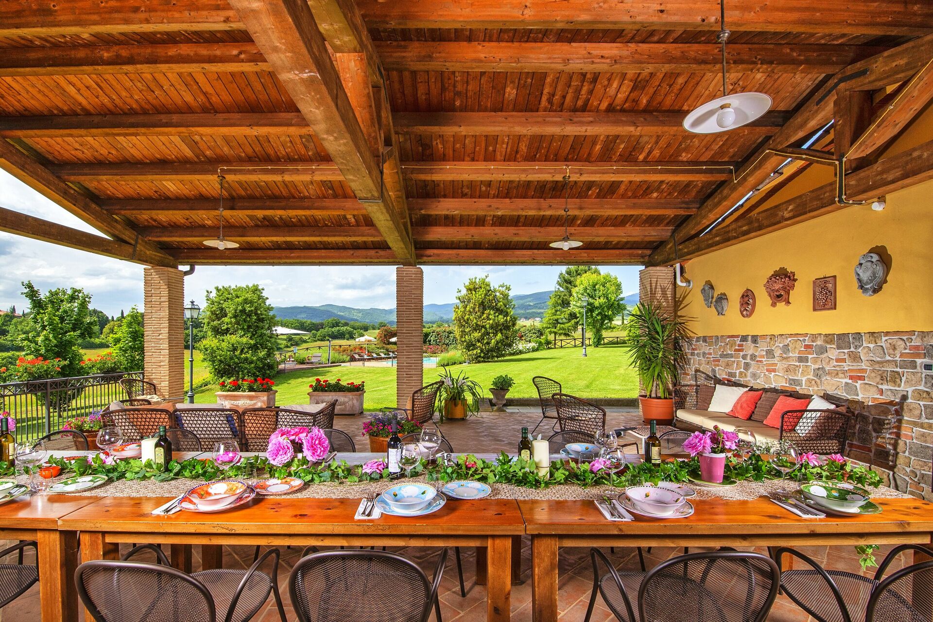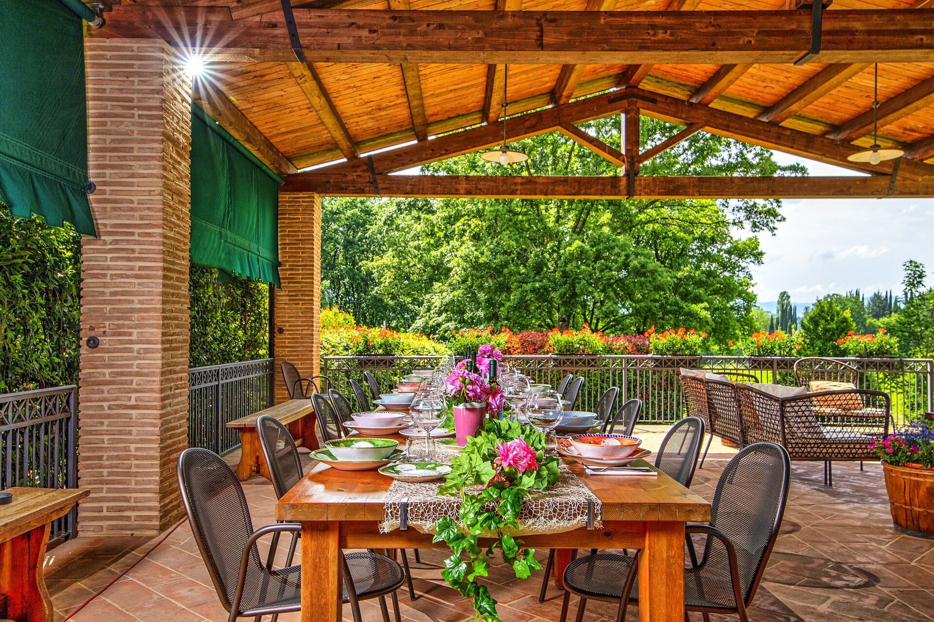 Caratteristica è anche la dependance che si trova di fronte alla piscina, dove troverete un'ampia sala da pranzo con cucina completamente attrezzata con forno a legna per la pizza, una terrazza coperta con barbecue, luogo ideale per preparare i pasti e mangiare tutti insieme all'aperto.