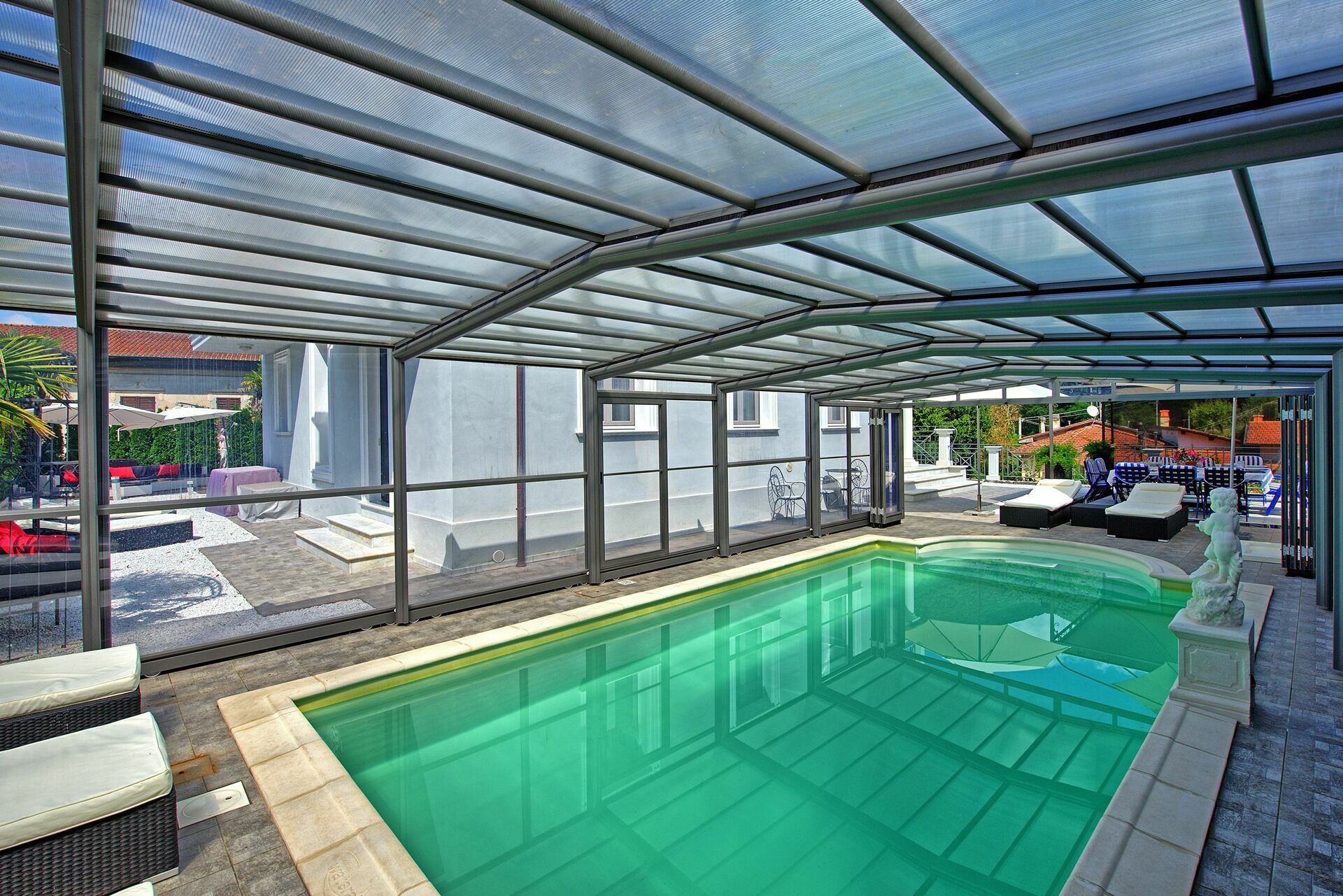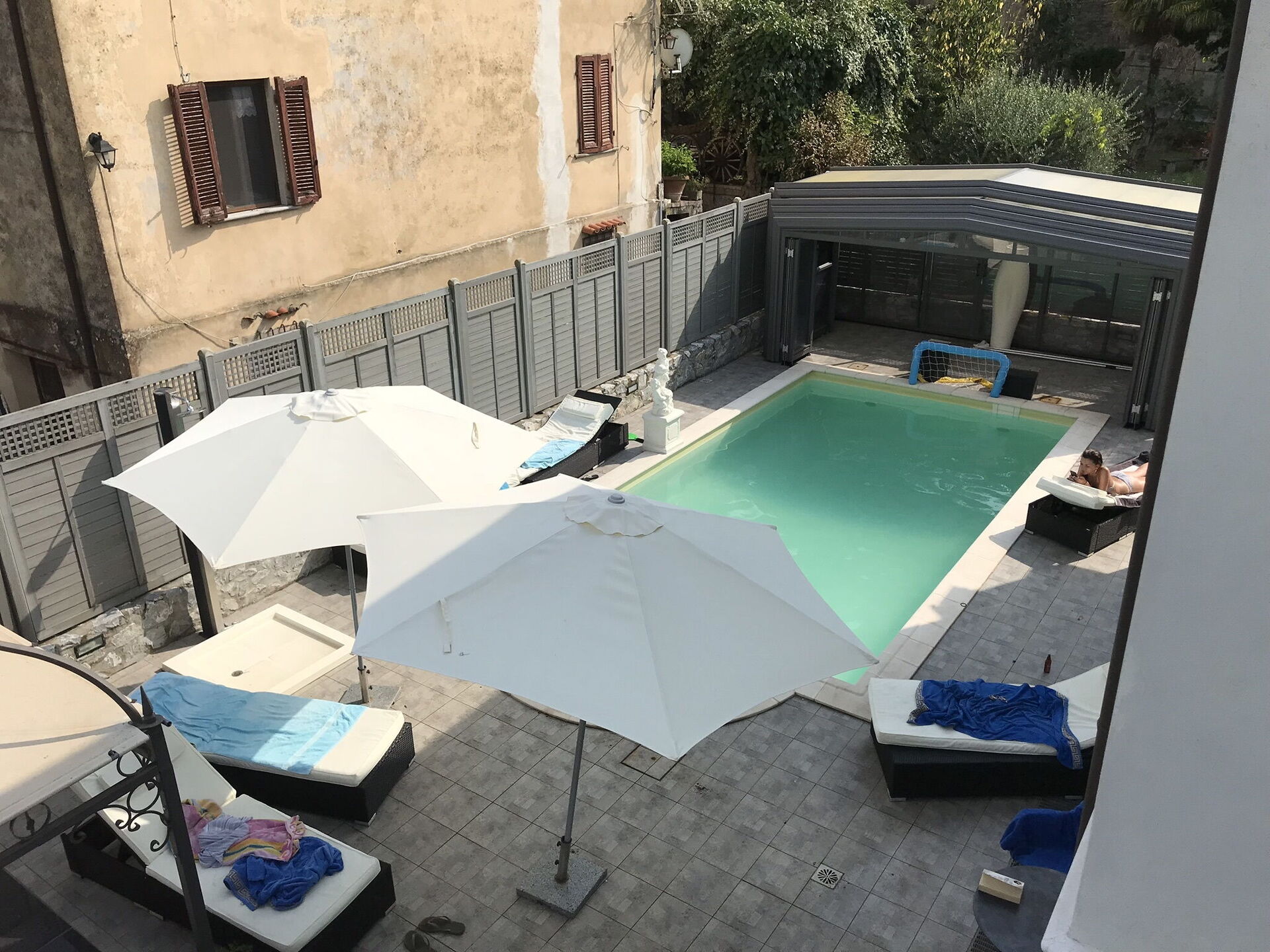La piscina è dotata per i periodi meno caldi di una chiusura telescopica per rendere il bagno piacevole anche a Maggio o a fine Settembre. Per chi invece volesse usare la piscina anche nei mesi più freddi sarà possibile riscaldare l’acqua e portarla fino a 25 gradi.