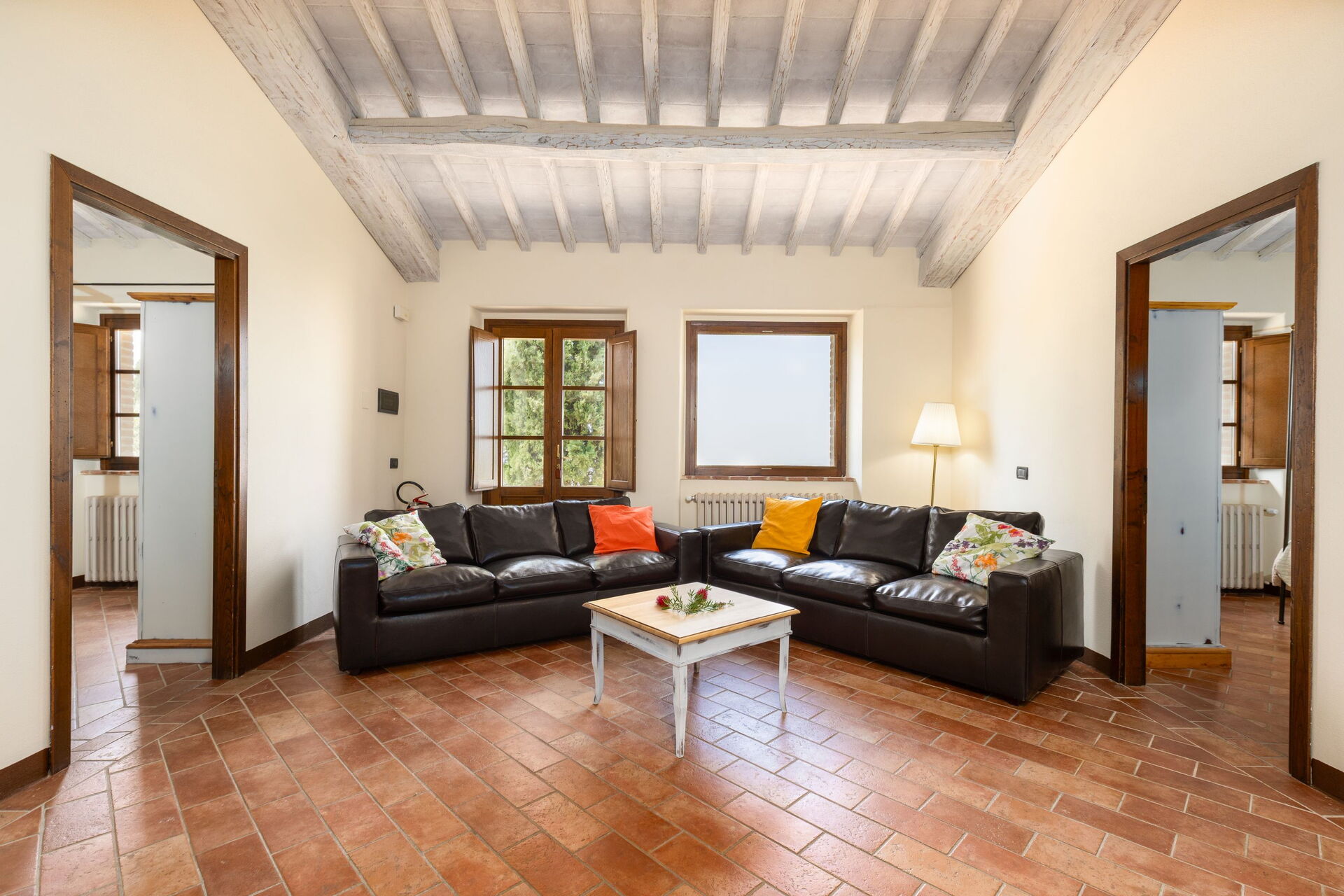 Questa bellissima villa in affitto è perfetta per una vacanza in compagnia di amici e familiari. Gli accoglienti ed ampi interni sono stati arredati con gusto, seguendo il tipico stile delle case di campagna in Toscana, combinando i caratteristici materiali come mattoni, legno e cotto per ricreare ambienti suggestivi in cui vivere un'autentica esperienza di vacanza in Toscana.