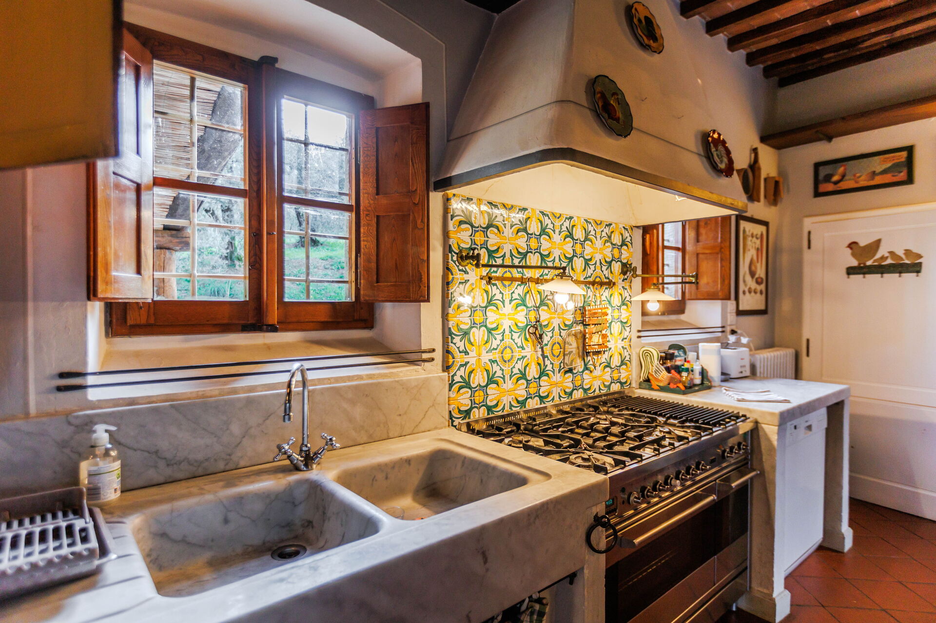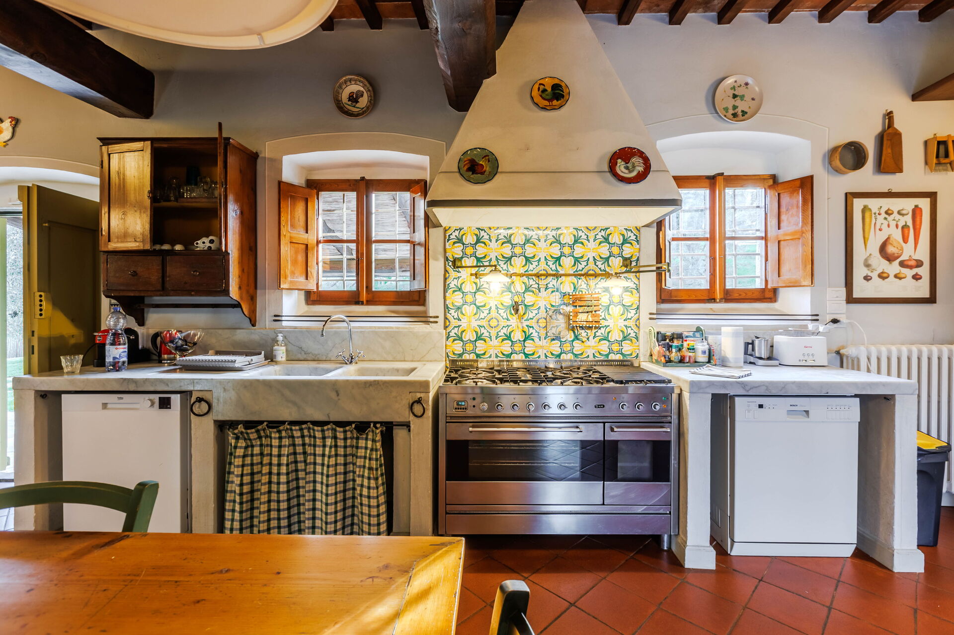 The villa itself exudes elegance and authenticity. The architecture is a perfect representation of traditional Tuscan design, with its terracotta roof, rustic stone walls, and charming wooden shutters. Inside, every corner exudes warmth and comfort. The rooms are spacious and tastefully decorated, effortlessly combining modern amenities with classic Italian charm. The attention to detail is evident, from the carefully chosen furnishings to the artwork that adorns the walls. I particularly enjoyed the fully equipped kitchen, which allowed us to indulge in cooking our own Tuscan feasts using fresh local ingredients.
