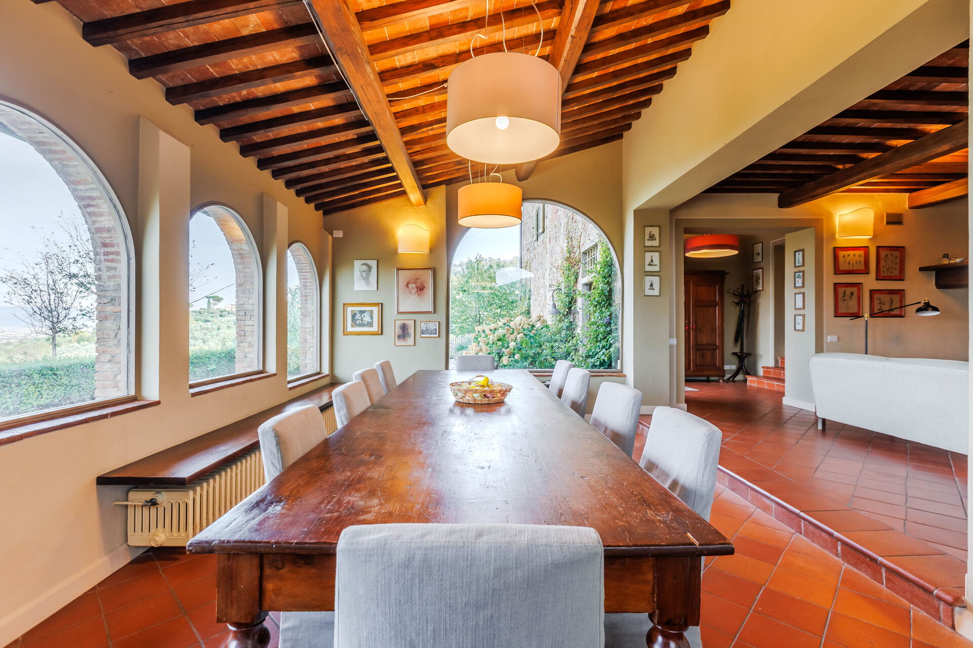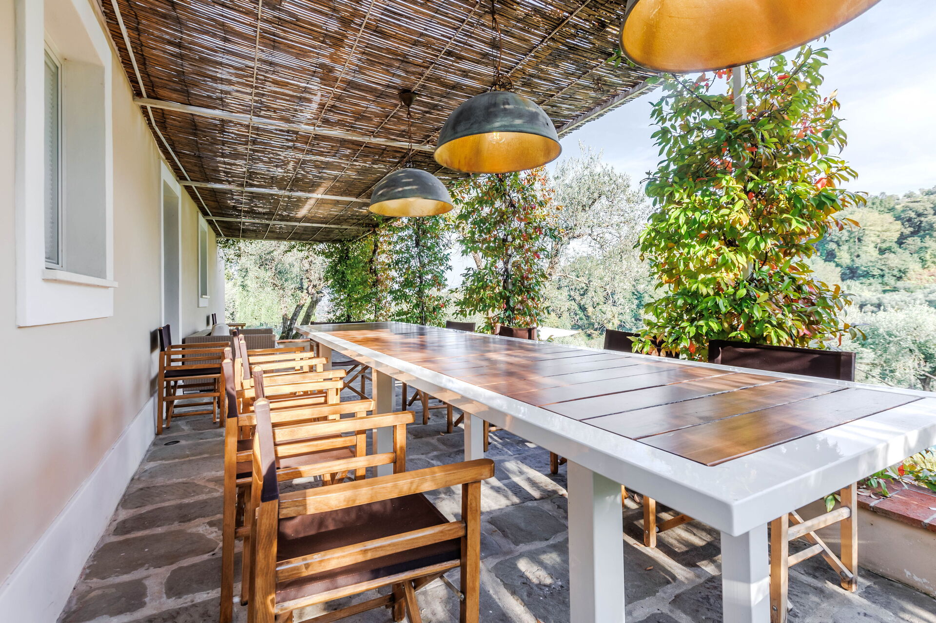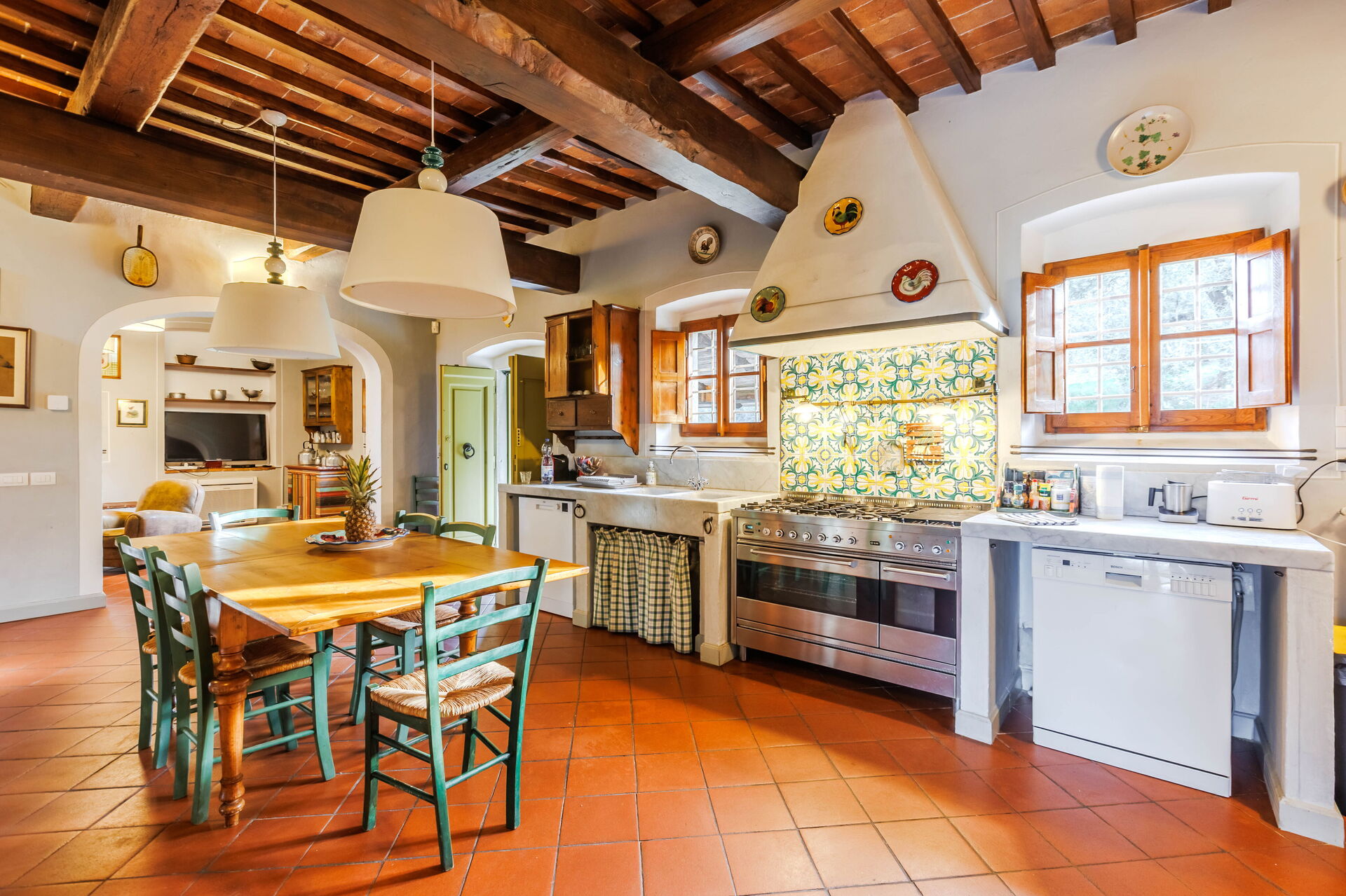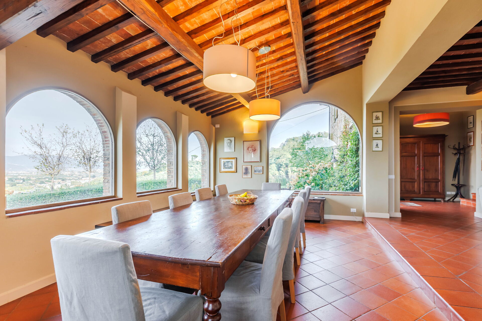 The outdoor loggia provided a culinary experience unlike any other. Surrounded by the villa's lush gardens and overlooking the picturesque Tuscan landscape, it was the perfect setting for al fresco dining. The loggia's cleanliness was as impeccable as its indoor counterpart, offering an open-air environment that was as pristine as it was inviting.