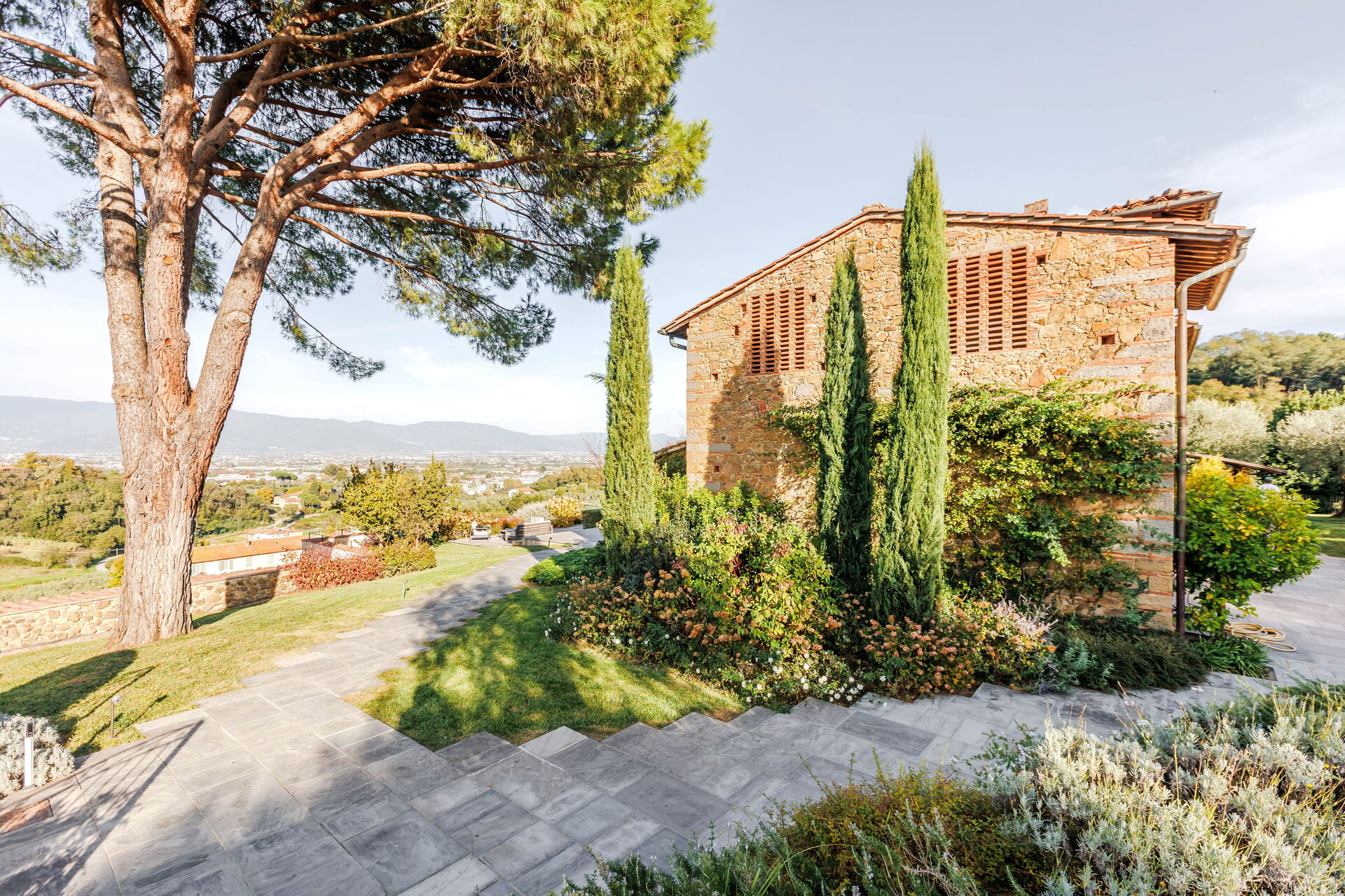 This home is a beautiful classic stone Tuscan villa.Perfectly appointed with comfortable furnishings and decor. The pool is surrounded by a very nice olive orchard. Very secluded, quiet and inviting. We loved hitting the pool after full days exploring. The home is perched on a hill with an incredible view of the valley. Surrounded by grape vines, olive orchards and a beautiful nursery below. Would not hesitate to return! Miss it already.